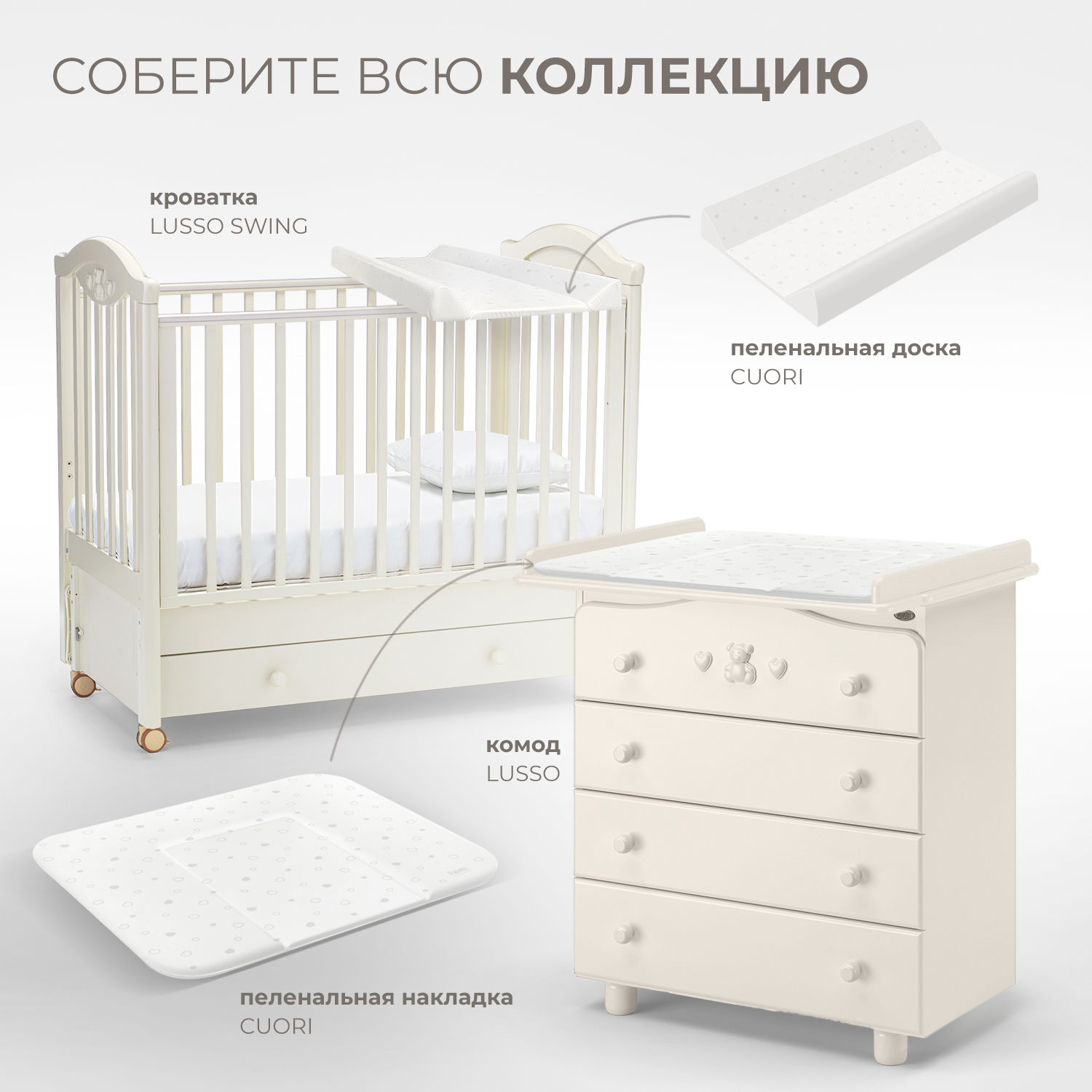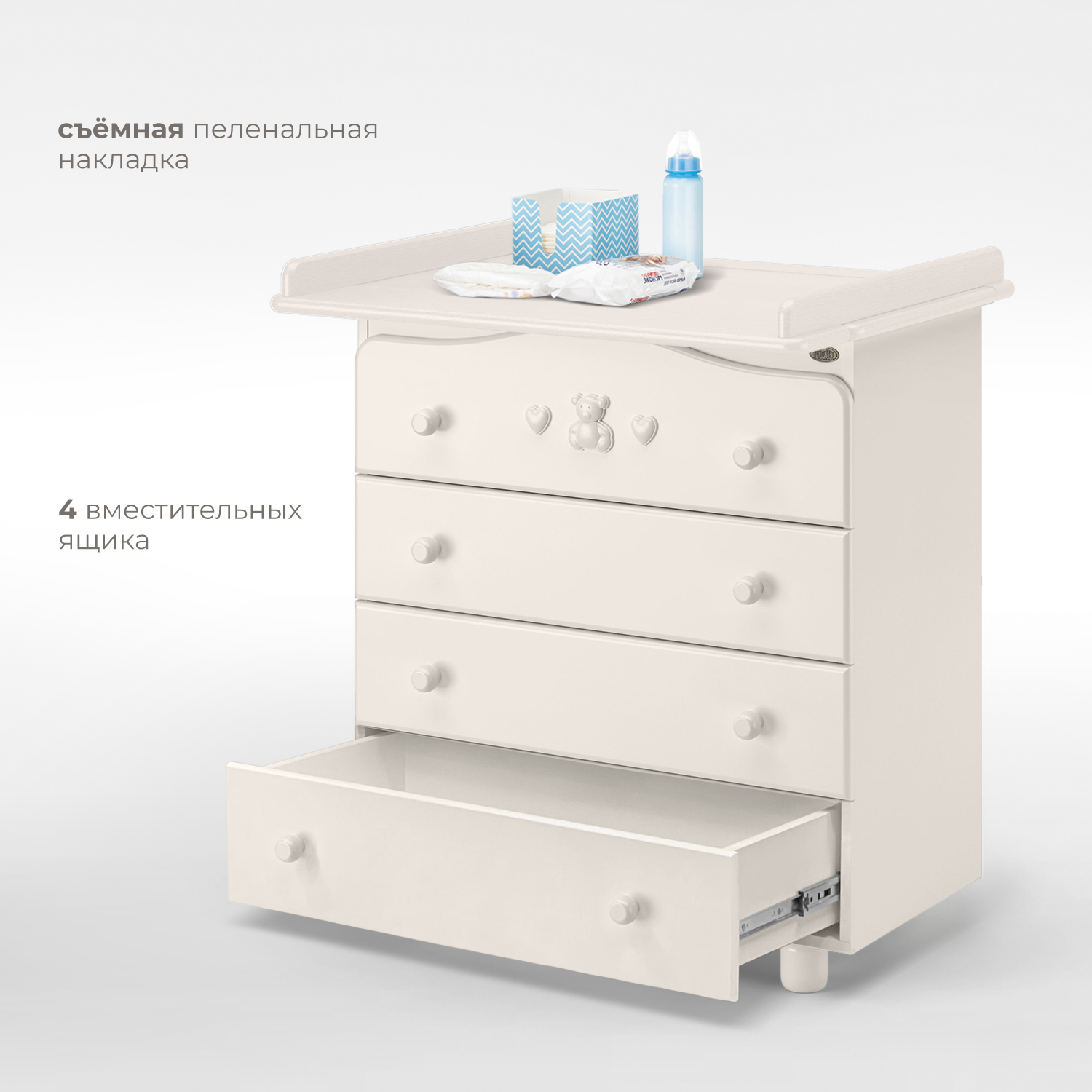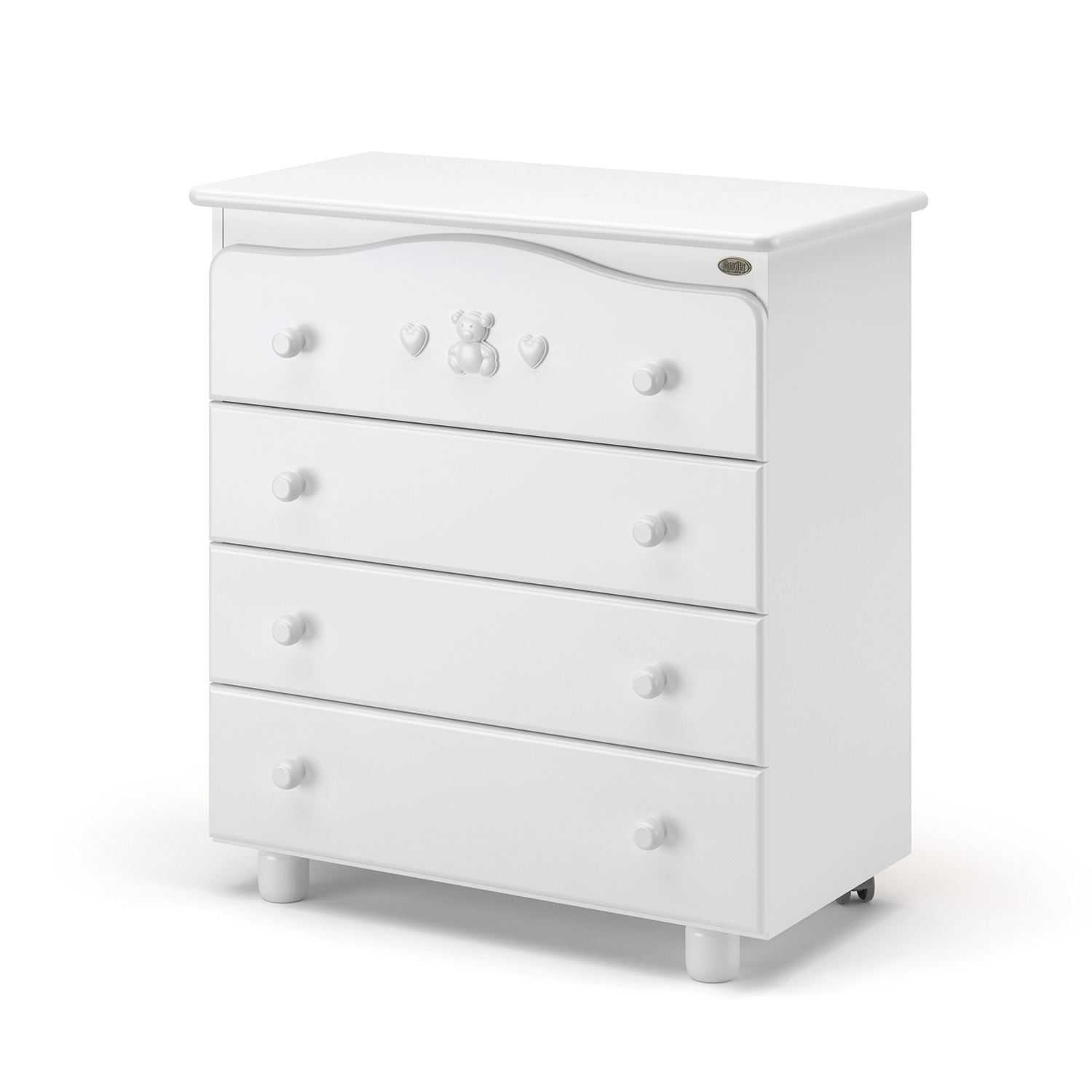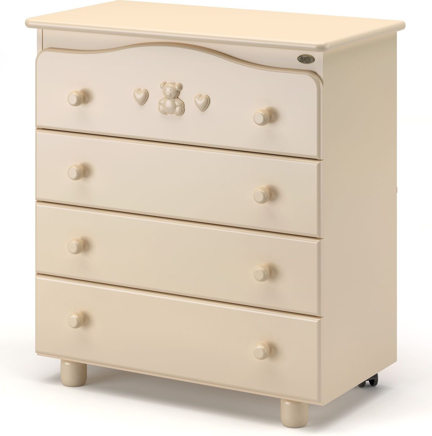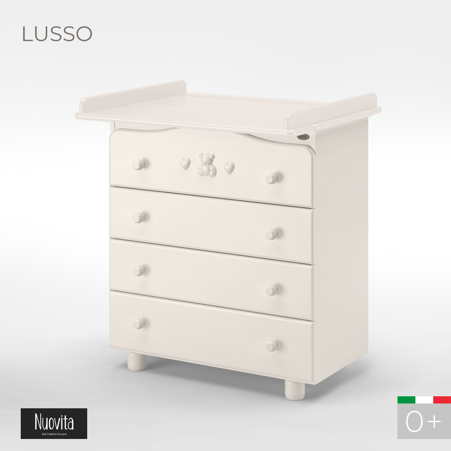 Приятные особенности :Удобный и надёжный детский комод Nuovita Lusso. Четыре вместительных ящика, два колеса для передвижения, легко съёмная пеленальная доска.