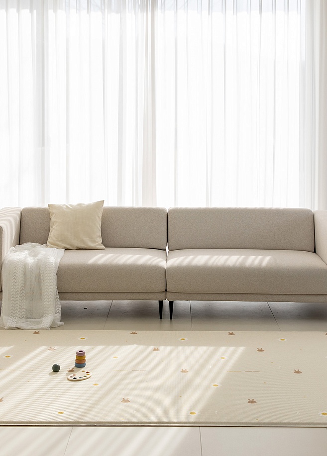 Приятные особенности: «Зайчики-ромашки» — это не просто принт, это про нежность, тишину и тёплые первые дни детства. Минималистичный, но тёплый рисунок создаёт ощущение спокойствия, чистоты и уюта. Такая расцветка идеально подойдёт и мальчику, и девочке, впишется в любой интерьер. Спокойные нейтральные расцветки ковриков завоевали такую популярность неспроста - они снижают уровень визуального шума, помогают сосредоточить внимание ребенка на книге и игре, улучшают концентрацию и дарят чувство покоя и защищенности. Детские игровые коврики Parklon Prime Living Edge– легкие односторонние рулонные коврики для первых лет жизни с увеличенной толщиной 1.5см для еще большей амортизации и безопасности. Края коврика сглажены, исключают возможность споткнуться и обеспечивают эстетичный вид.