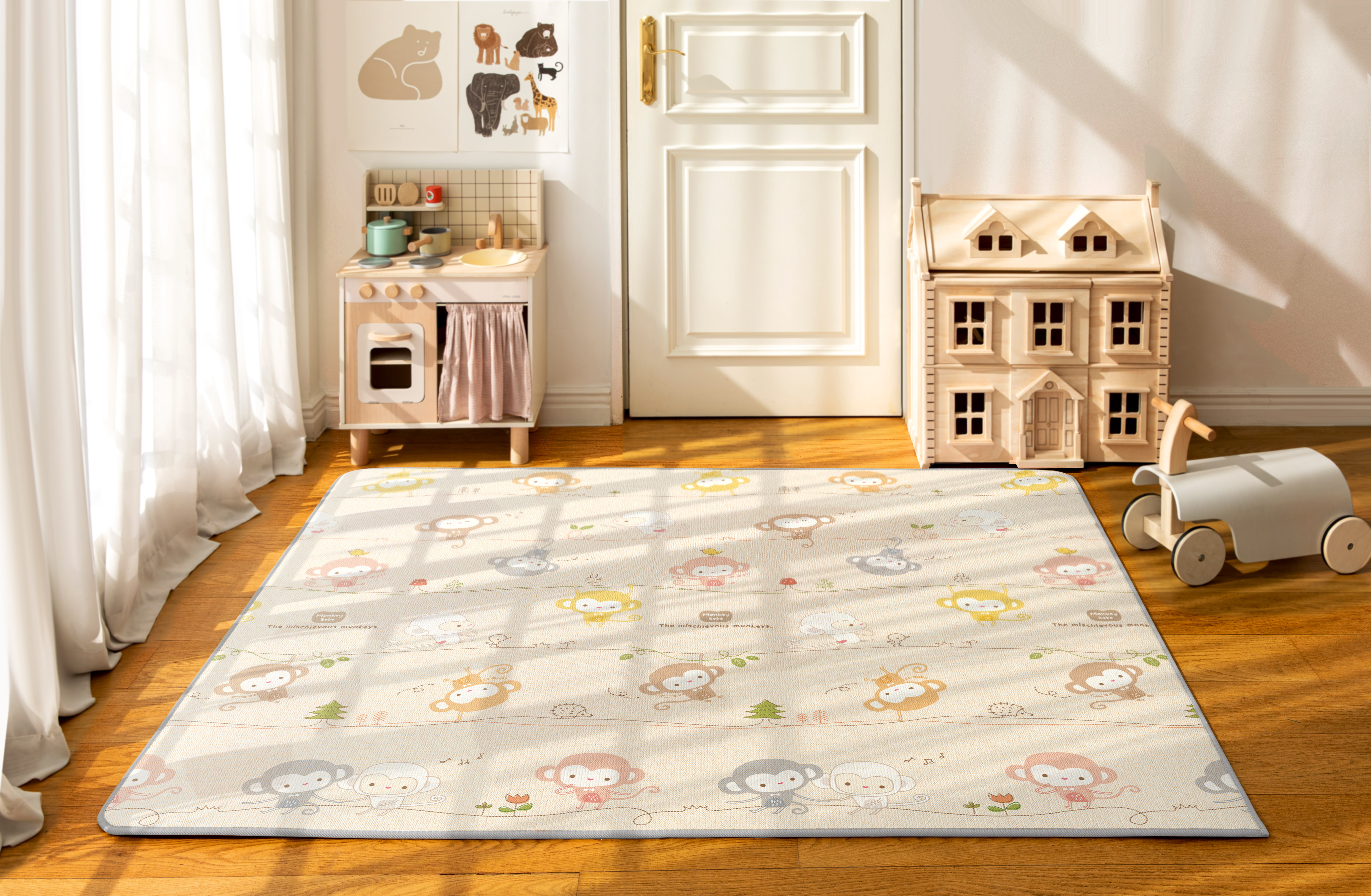Приятные особенности: Сторона с веселыми мартышками - для веселого настроения, для быстрого ползания и догоняшек на четвереньках. Спокойная сторона со слониками - для размеренных игр, занятий с пособиями и игрушками. Детские игровые коврики Parklon Prime Living – это яркие и легкие двусторонние рулонные коврики для первых лет жизни. Переворачивайте и создавайте новое настроение! Коврик состоит из двух слоев гипоаллергенного вспененного полиэтилена и пленочного полиэтиленового покрытия, по краю пришита тканевая кайма. С двух сторон коврика нанесено рифление разного размера для активации мелкой моторики малыша и воздухообмена между кожей и ковриком.
