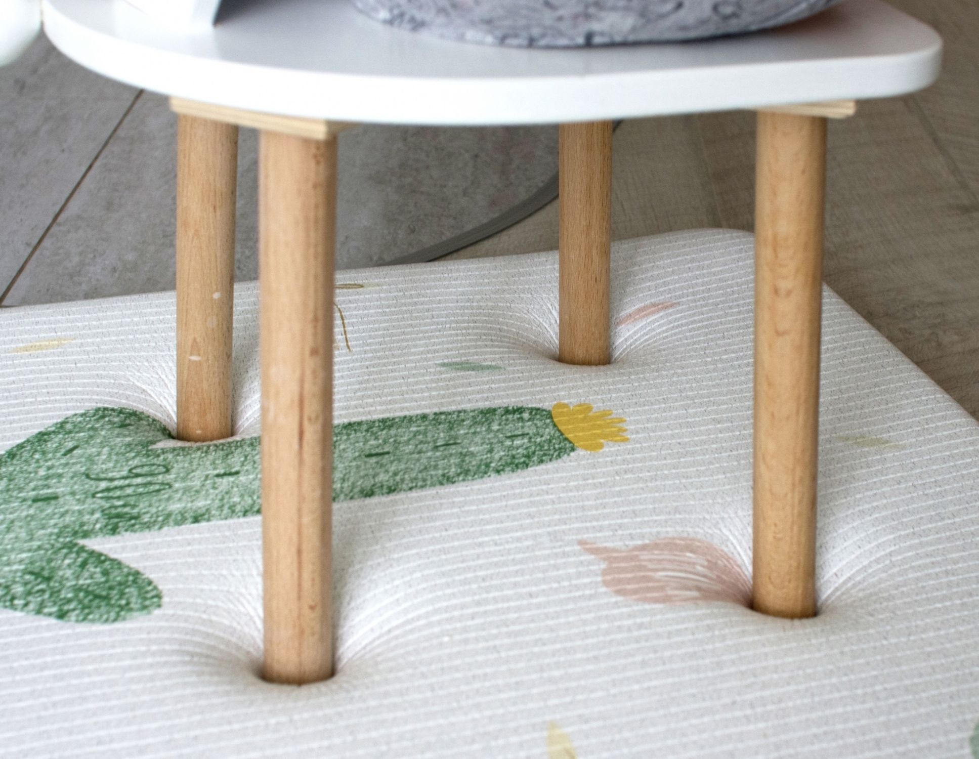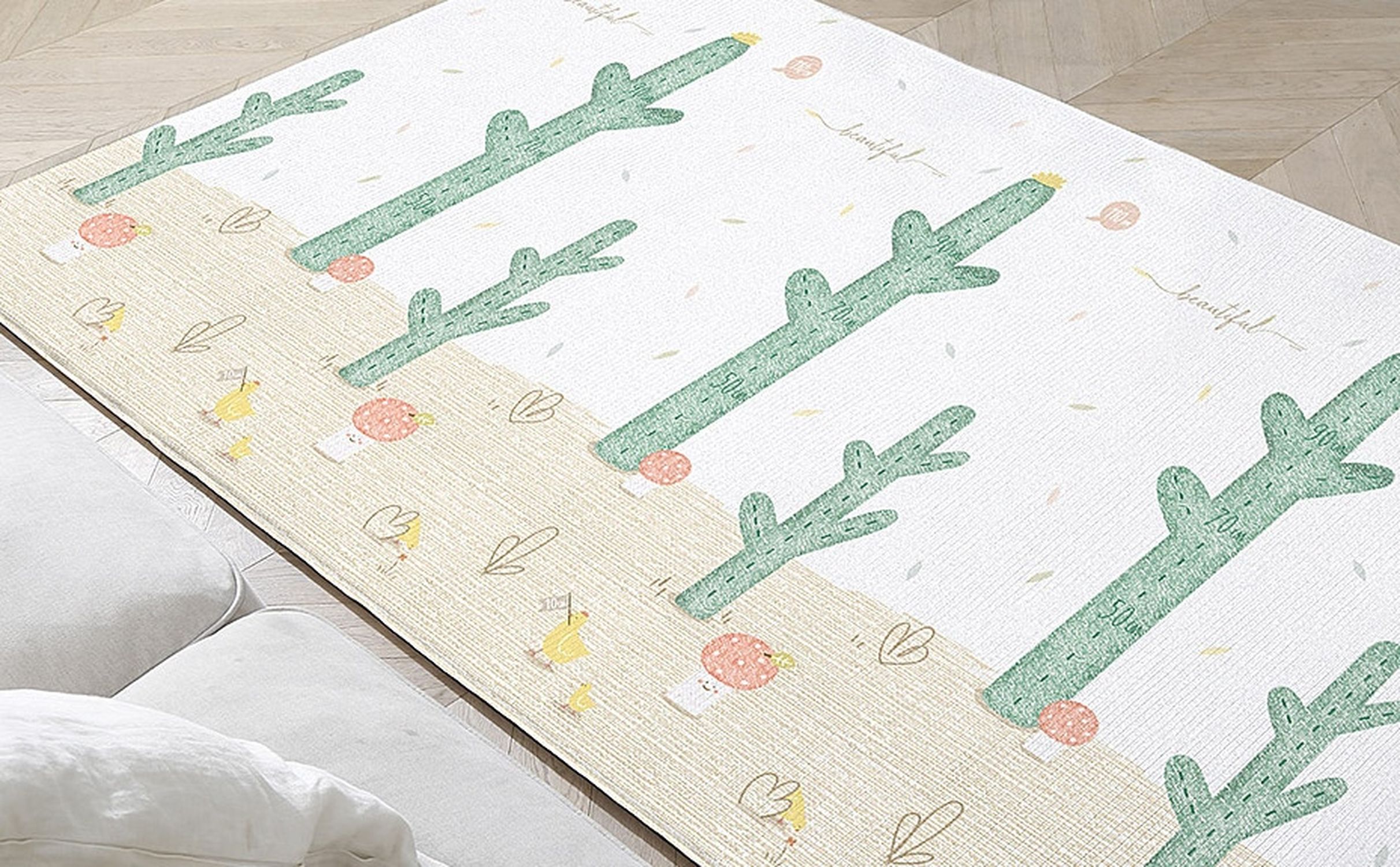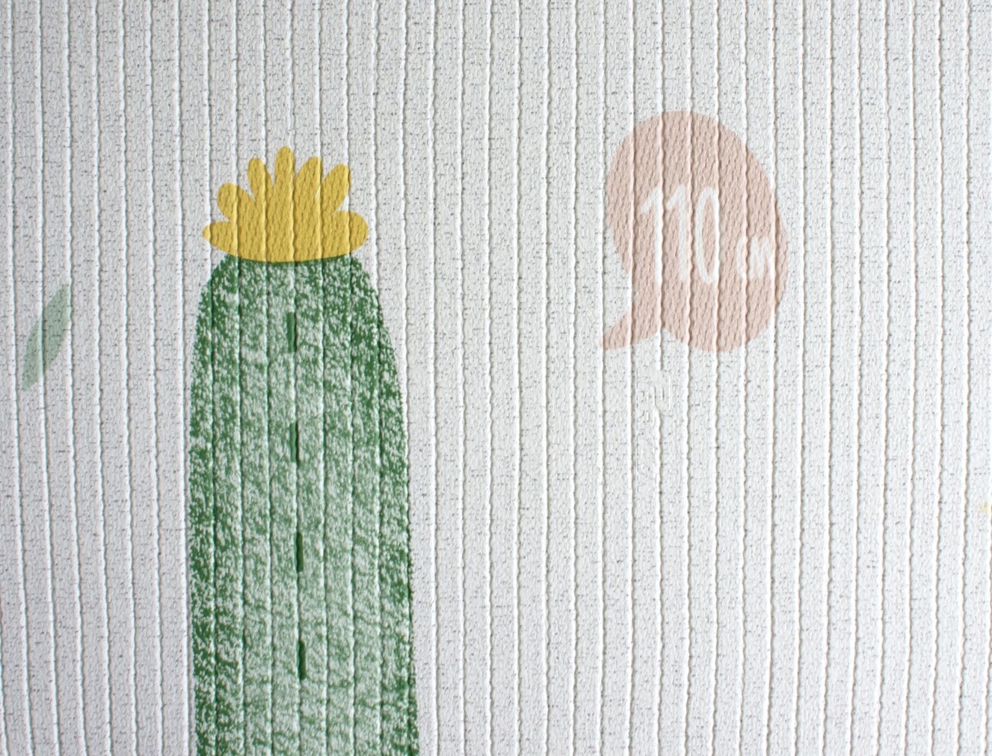 Приятные особенности:Коврик из ПВХ серии Bubble – это бескомпромиссное качество и новый уровень удобства. Универсальность коврика заключается в двусторонней разноплановой расцветке. С одной стороны хит детского дизайна 2019 – забавные кактусы, под которые вы легко сможете подобрать аксессуары и создать продуманную до мелочей волшебную атмосферу для ребенка. С другой стороны сдержанная клетка красивого глубокого серого цвета с тонкими белыми границами – идеальная для скандинавских мотивов и для “уравновешивания” очень ярких детских. На стороне с кактусами есть ростомер, который можно использовать как фон для чудесных памятных фотографий вашего малыша. Коврик толщиной четыре сантиметра обеспечивает не только приятные ощущения, уют и удовольствие, но и надежную защиту от ударов и ушибов как для совсем крох, которые только учатся сидеть или ходить, так и для детей младшего и среднего школьного возраста с их активными играми. Покрытие из ПВХ плотное, прочное, устойчиво к контакту с четвероногими друзьями. Рисунок не выгорает и не стирается. Коврик не впитывает пыль, грязь и влагу, уход за ним не требует применения химических моющих средств, что значительно облегчает процесс уборки и снижает риск появления аллергии у ребенка.