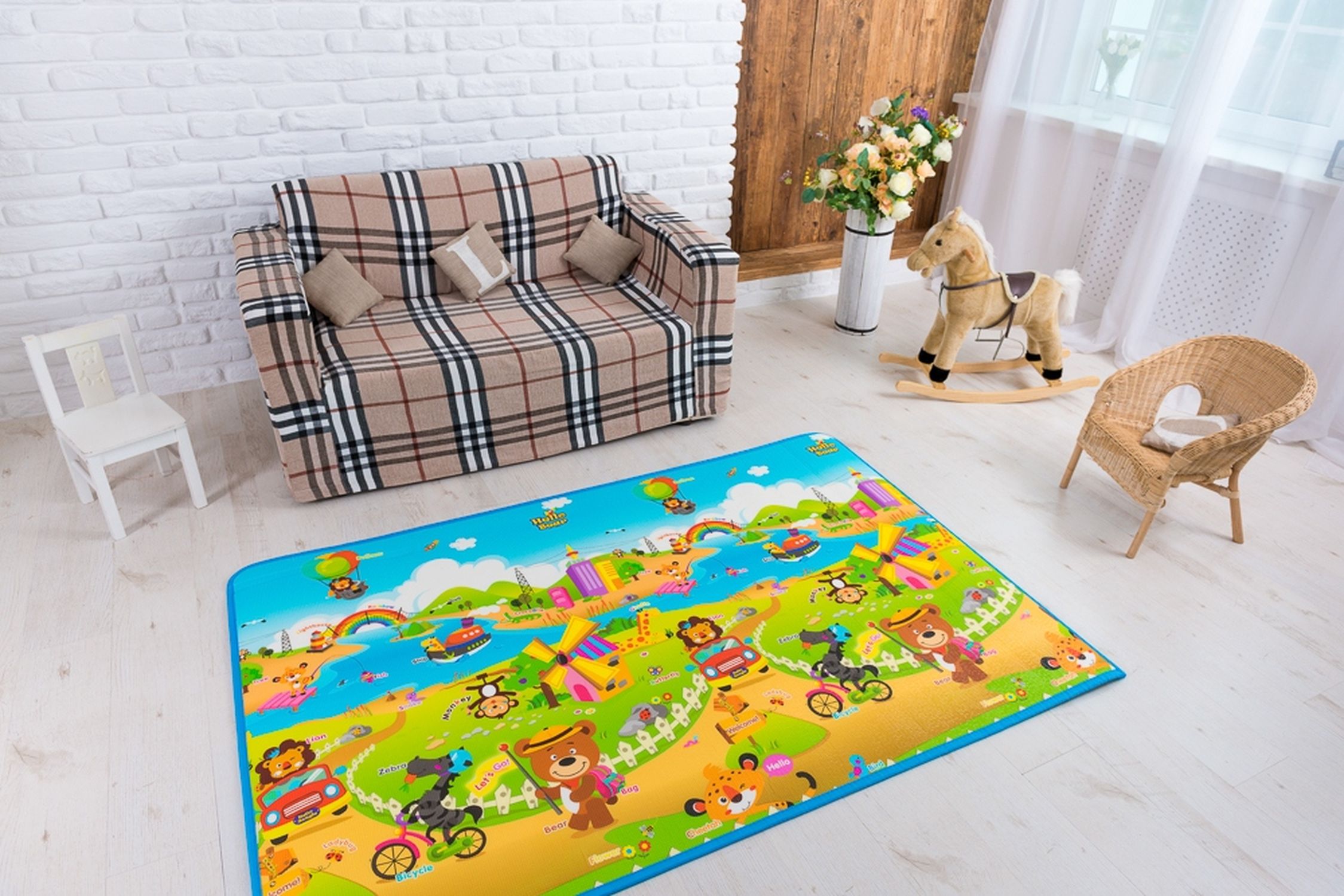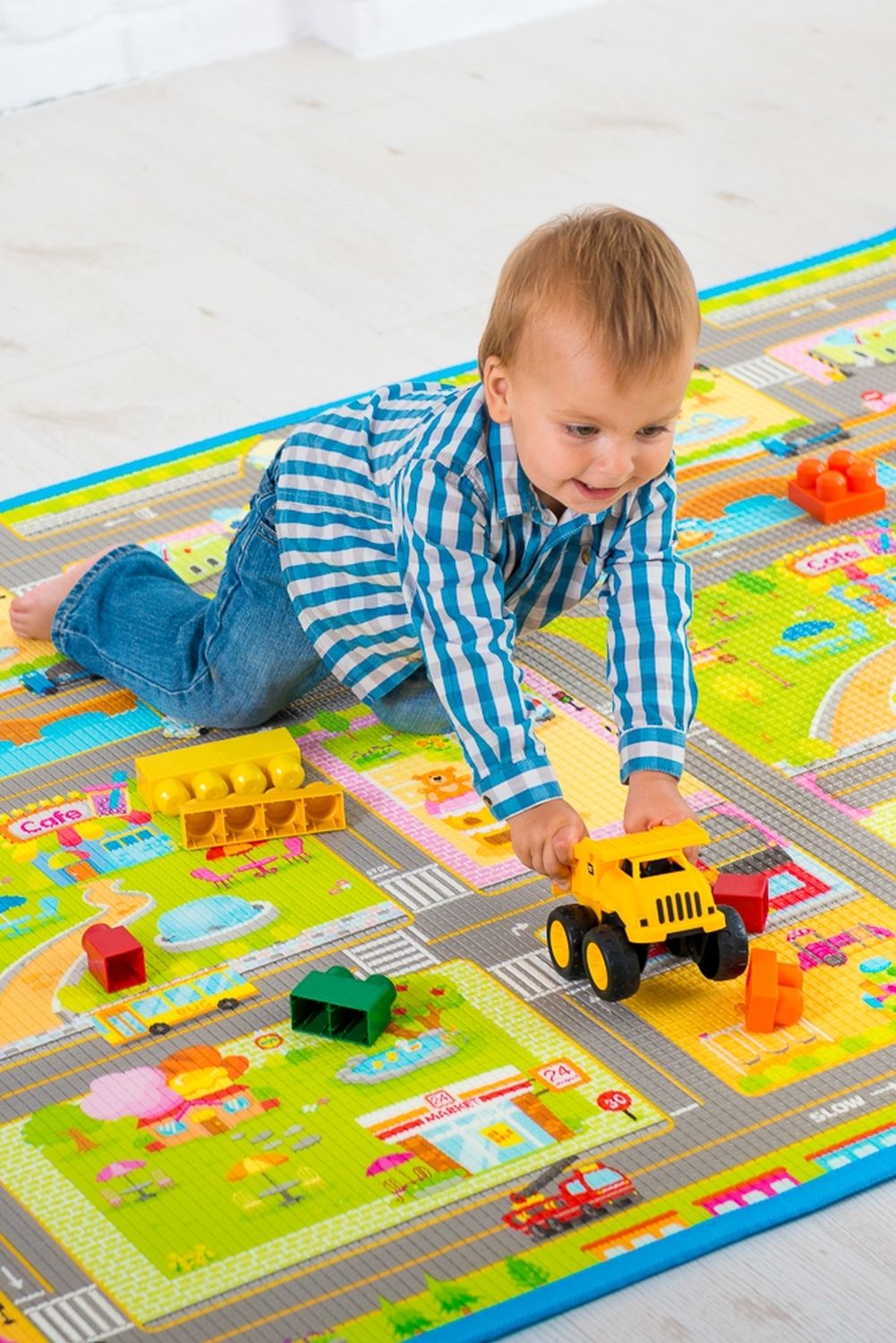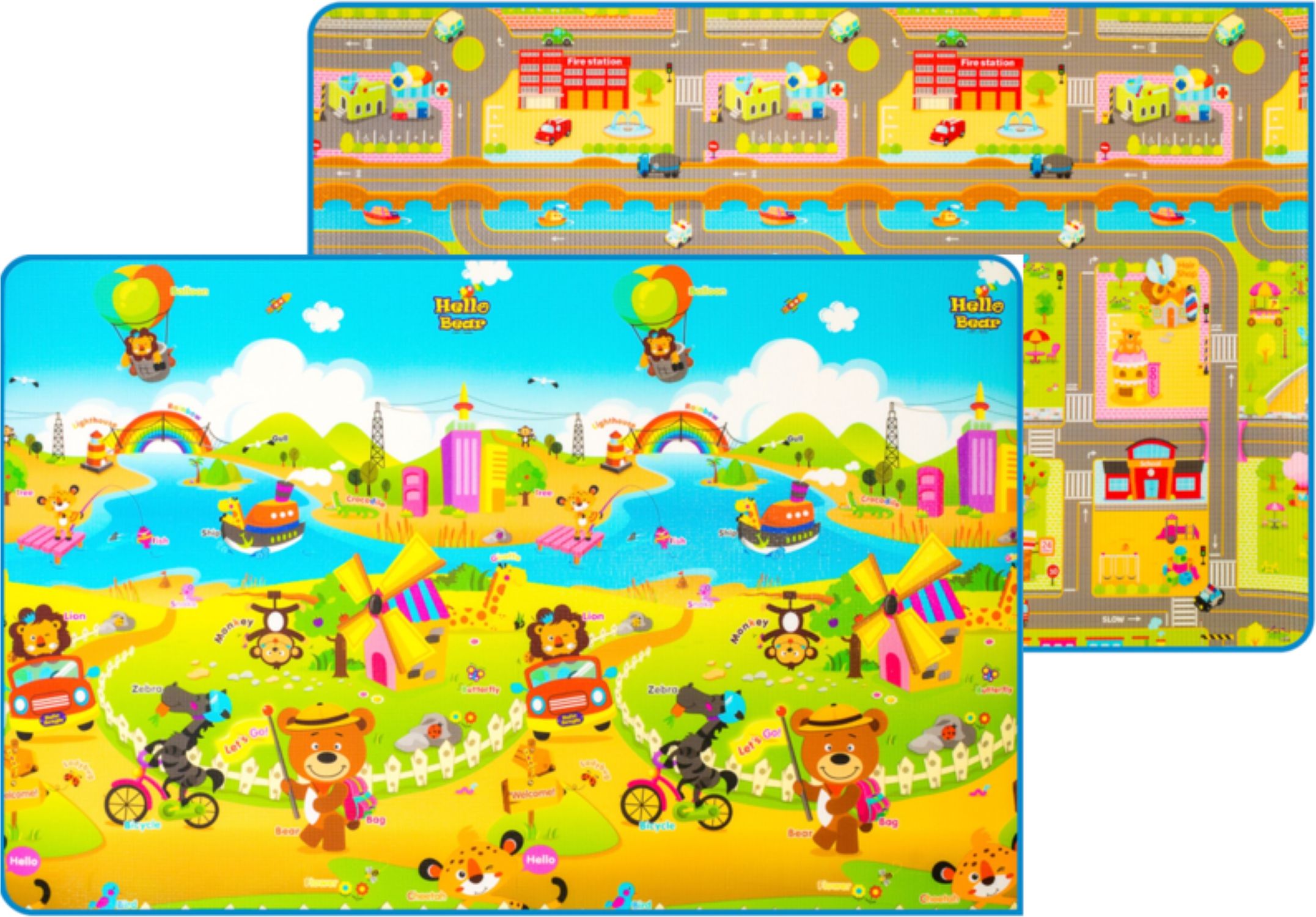Приятные особенности:Напольный коврик для детей с рисунками с двух сторон: «Дороги» и «Мишка на каникулах». Играйте в гонки и устраивайте прогулки игрушкам, а если надоест, переверните и рассматривайте с малышом яркие картинки, придумывайте истории про нарисованных животных. Этот коврик для детей выбирают за безопасность, легкость ухода. Он произведен из пищевого полиэтилена, мягкий, плотный, не пропускает холод, не скользит. Размер коврика для ползания: 200 х 180 см (ширина/длина). Толщина: 1 см.