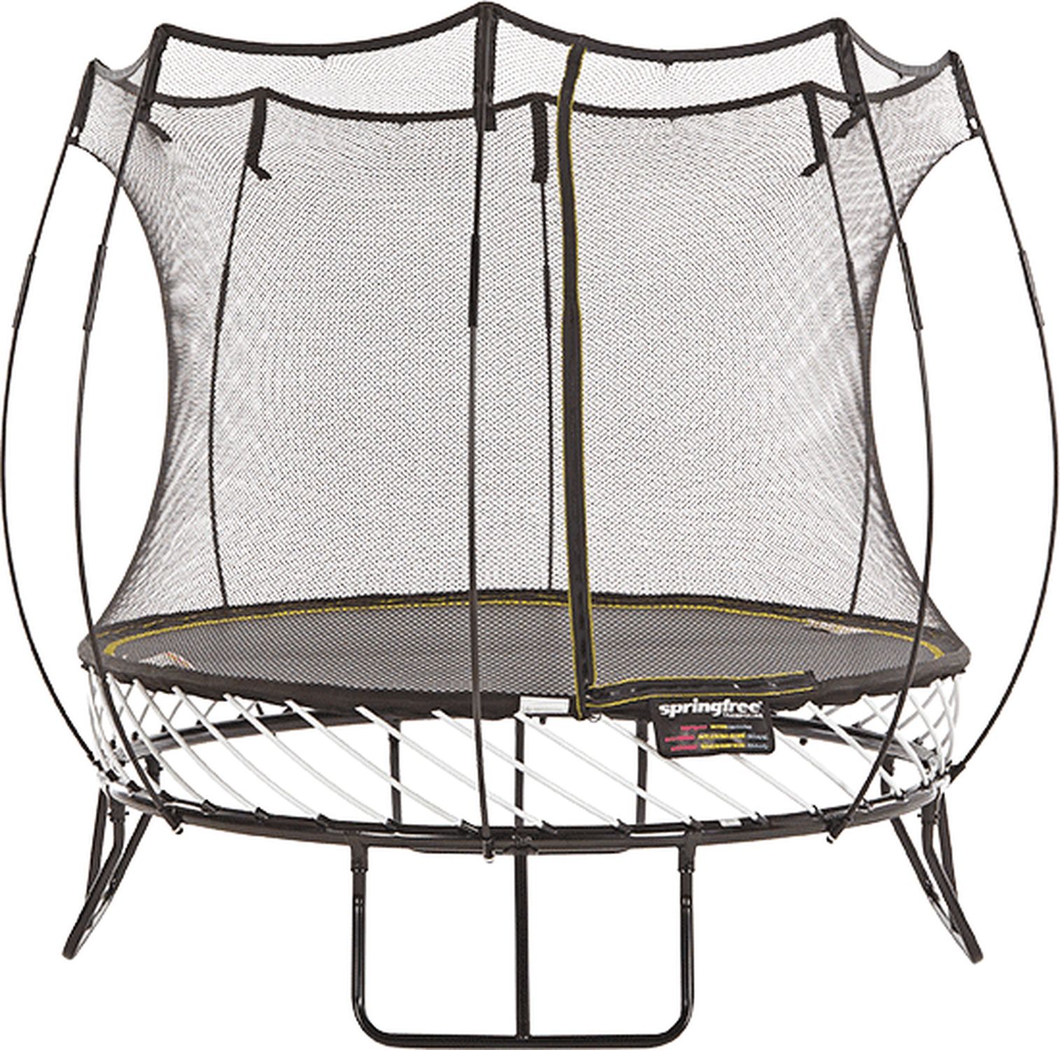 Сеть безопасности изготовлена также из высокопрочного стабилизированного полипропилена. Ткется по лицензии и эксклюзивно для Springfree Trampoline на основе тех же технологий, что и рыболовные сети — каждая ячейка сети самостоятельно зафиксирована и при повреждении одной ячейки дальнейшие не «расползаются». Размеры ячеек подобраны таким образом, чтобы пальчики даже самых маленьких детей не могли проникнуть и застрять в них. Сеть растягивается, эффективно улавливая прыгуна, а также обладает амортизирующими свойствами — возвращая ребенка в центр батута.