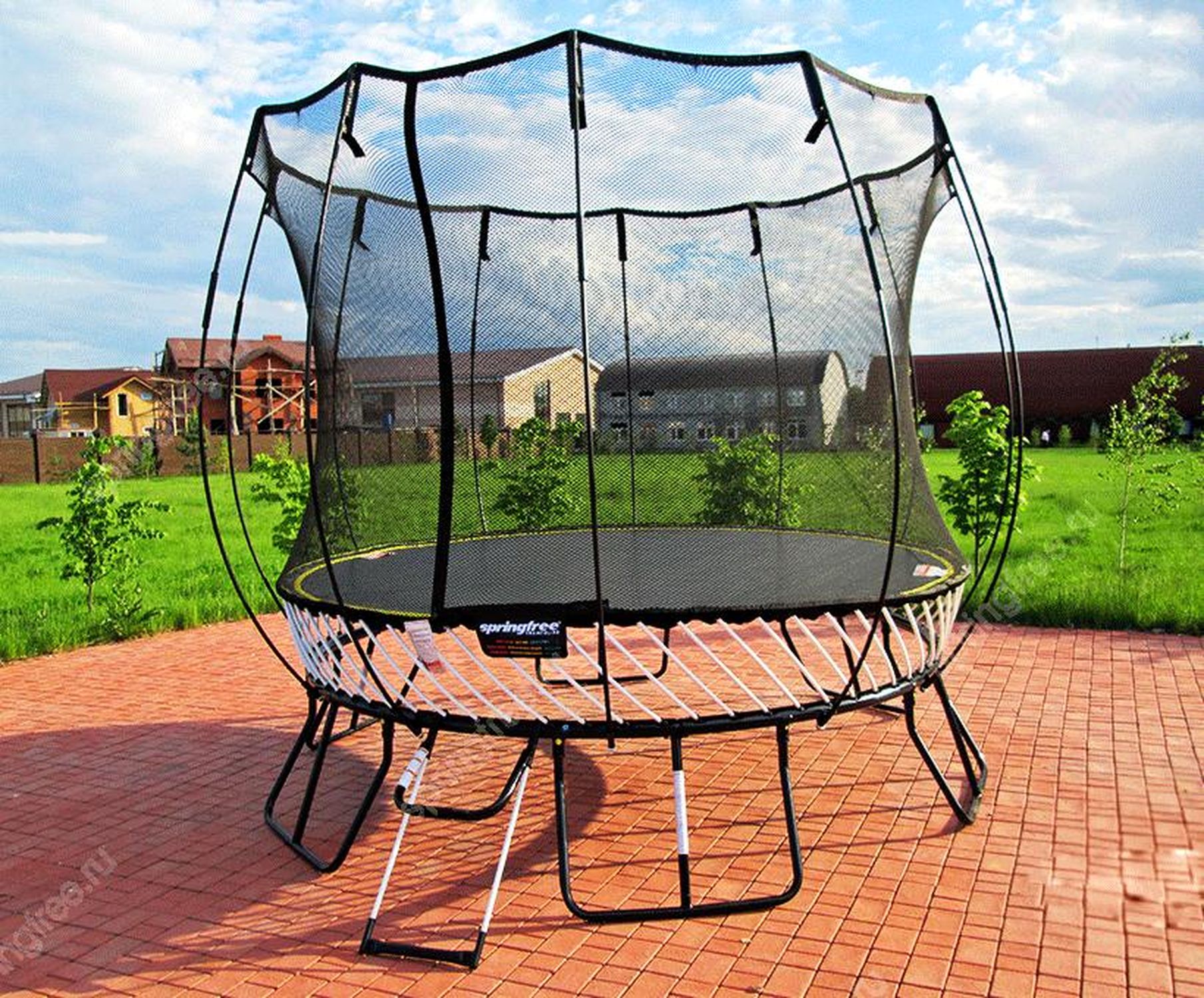 Мат для прыжков ткется по лицензии компании Springfree Trampoline и изготовлен из высокопрочного, стабилизированного полипропилена, который выдерживает вес до 500 кг, не теряя своих функциональных характеристик. Мат устойчив к UV излучению, к воздействию погодных условий и температурным перепадам. Полотно мата абсолютно не поглощает влагу и очень быстро высыхает после дождя.