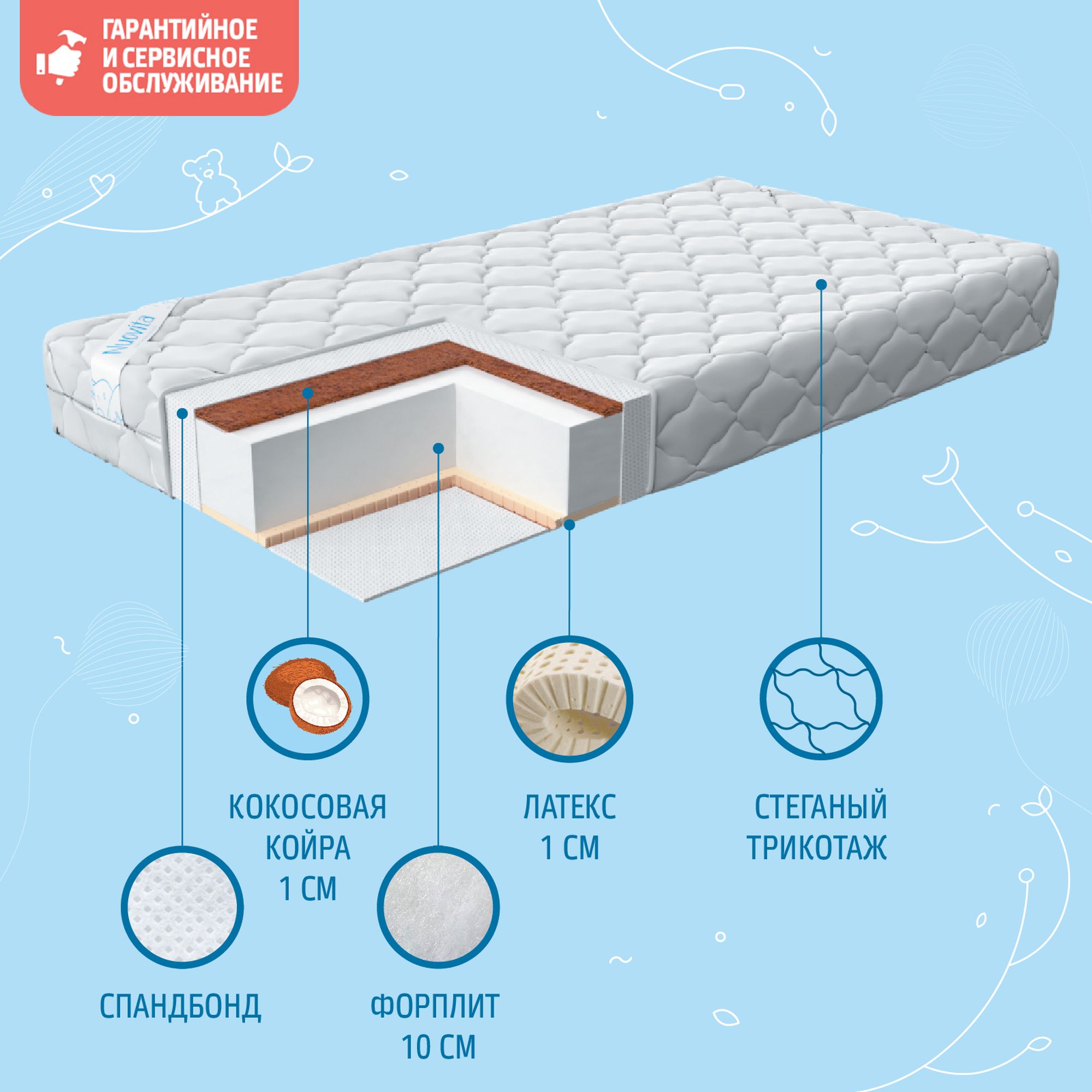Приятные особенности :Детский матрас Nuovita Morbido. Максимальная нагрузка на матрас 30 кг. Состав наполнителя: латекс 1 см + Forplit 10 см + кокос 1 см + спанбонд. Жесткость матраса "средняя". Чехол матраса съёмный, выполнен из стеганного трикотажного полотна.
