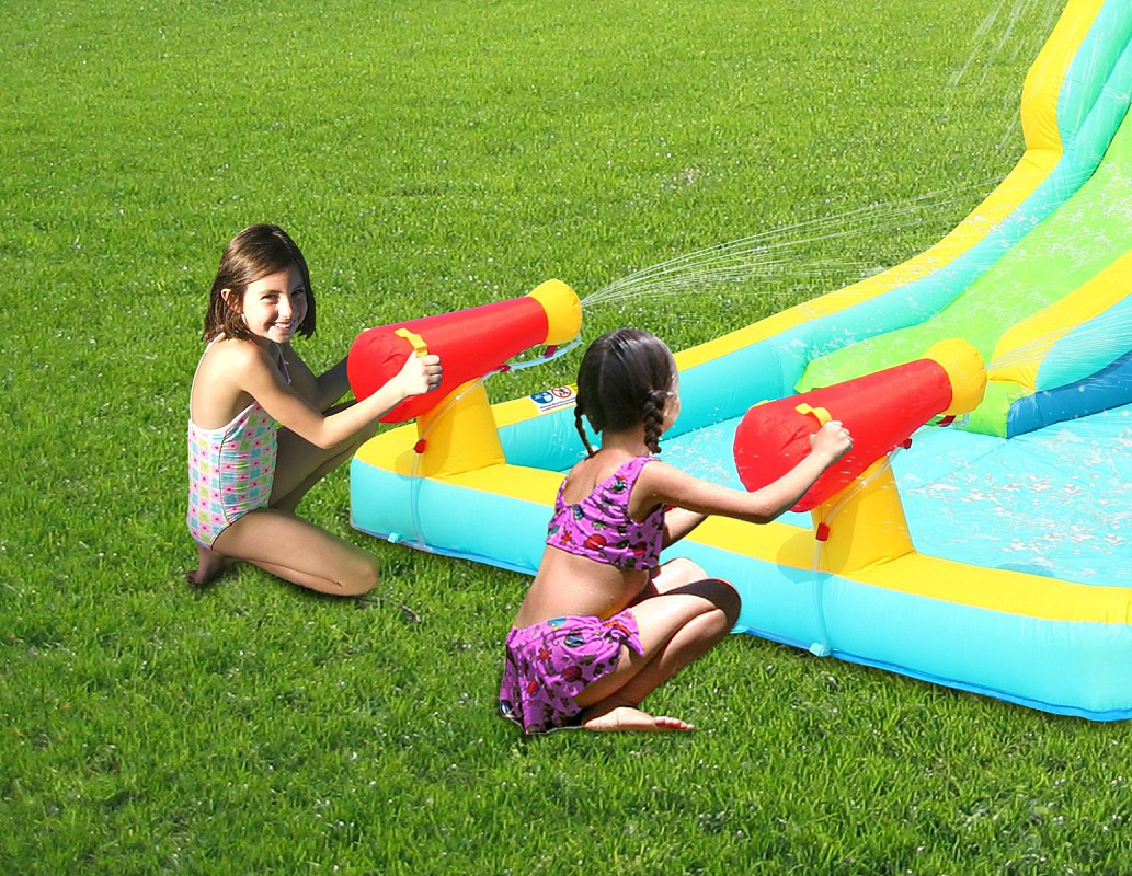 Приятные особенности: Водный надувной батут это целый аквапарк для вашего ребенка. Надувная горка и водная пушка не оставит никого равнодушным особенно в жару, когда так важно охладиться. Брызги радости и веселья накроют большой волной удовольствия ваших ребятишек. Так же этот батут можно использовать и без воды.