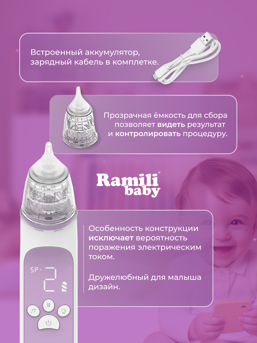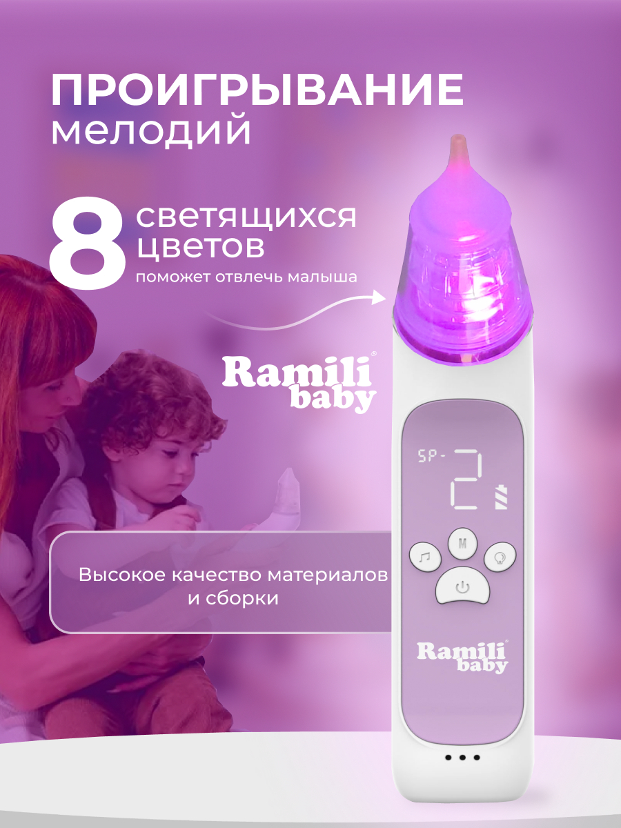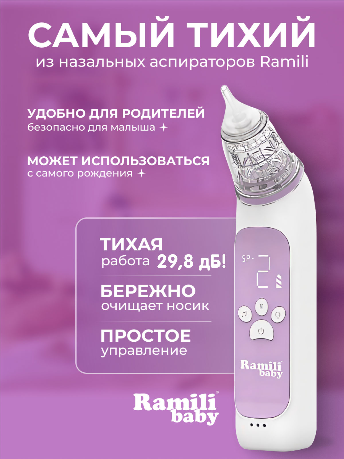 Приятные особенности:Детский назальный аспиратор Ramili Baby AN350 Medical – это один самых тихих аспираторов, что способствует его применению для очищения носиков младенцев. Уровень шума составляет всего лишь 29,8 дБ на первом уровне.Качество и эффективность назального аспиратора обусловлена тесным сотрудничеством производителя с педиатрами и профильными специалистами при разработке товаров для детей младшего возраста. Аспиратор эффективен не только при использовании дома или на даче, но и везде, где это удобно, например, во время прогулок или дальних поездок.При производстве аспиратора Ramili Baby AN350 Medical используются высококачественные безопасные материалы. Он изготовлен на современном оборудовании по передовым технологиям. Это долговечный назальный аспиратор, который прослужит вам значительно дольше того, как ваш малыш подрастет.