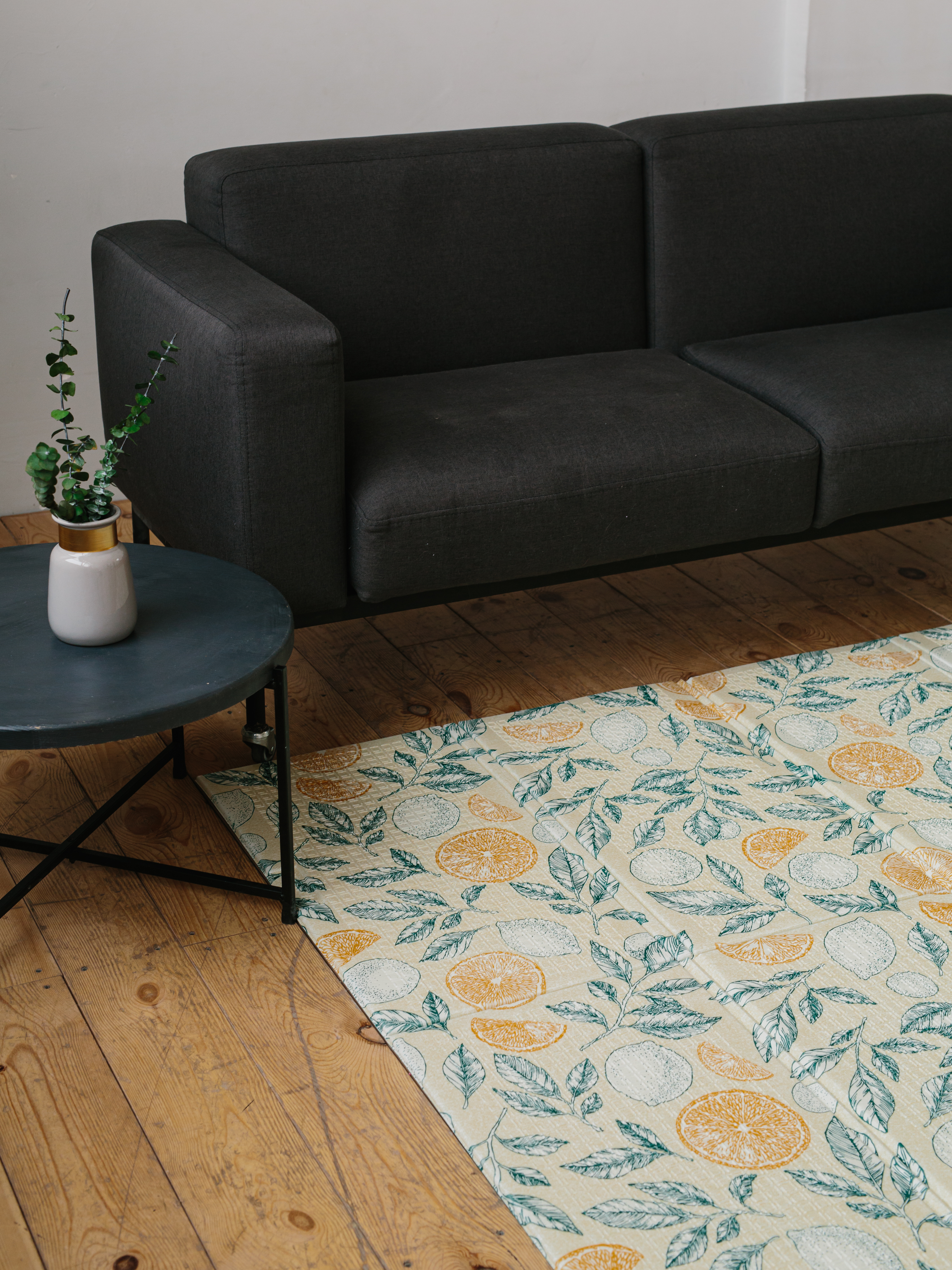Приятные особенности:Коврик с ярким и сочным жизнерадостным принтом лимонов добавит неповторимого колорита в детскую комнату и сделает пикник или путешествие с детьми эстетичнее и удобнее. Только для настоящих оптимистов! Детские портативные коврики серии Parklon Portable – это cамые популярные, легкие и простые в уходе складные коврики для ползания и пикников. Коврик состоит из двух слоев гипоаллергенного вспененного полиэтилена, надежно спаянных термокомпрессией, без использования клея. Верхнее покрытие коврика – прочная и долговечная пленка. На поверхности коврика есть рифление для активации мелкой моторики малыша и воздухообмена между кожей и ковриком. Нижняя сторона коврика матовая, немного шершавая, что снижает степень скольжения. Коврик имеет небольшой вес, компактно складывается, и имеет в комплекте удобную сумочку для хранения и перемещения.