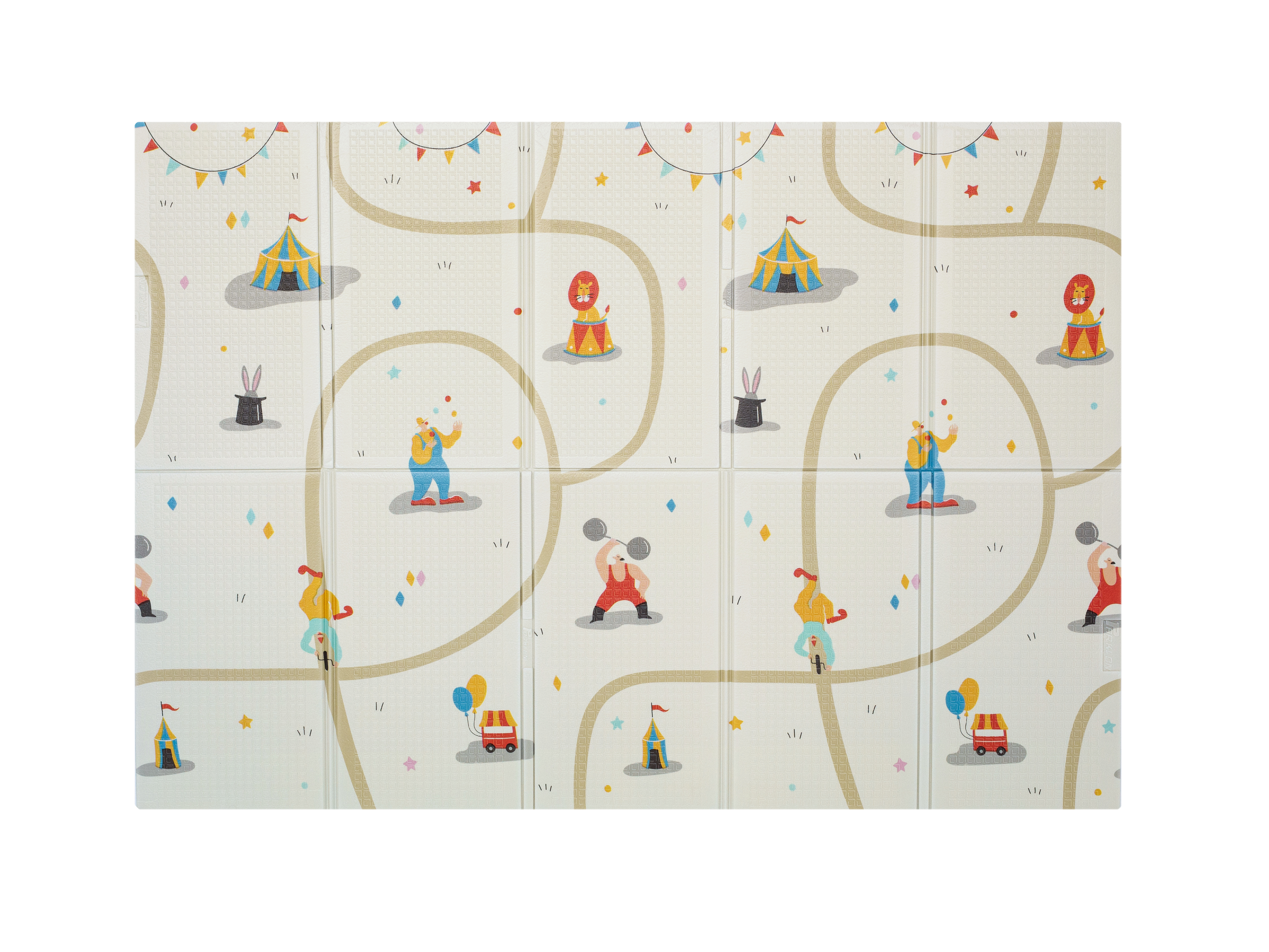 Приятные особенности:"Цирк приехал, а с ним ловкие жонглеры и дрессированные львы, фокусники-кудесники и бесстрашные эквилибристы. Всем любителям цирка посвящен новый принт портативного коврика Parklon Portable.Нежно-бежевый фон делает расцветку “Цирк” универсальной для любой комнаты в квартире, коврик подходит и для мальчиков, и для девочек.Детские портативные коврики серии Parklon Portable – это cамые популярные, легкие и простые в уходе складные коврики для ползания и пикников.Коврик состоит из двух слоев гипоаллергенного вспененного полиэтилена, надежно спаянных термокомпрессией, без использования клея. Верхнее покрытие коврика – прочная и долговечная пленка. На поверхности коврика есть рифление для активации мелкой моторики малыша и воздухообмена между кожей и ковриком.Нижняя сторона коврика матовая, немного шершавая, что снижает степень скольжения."
