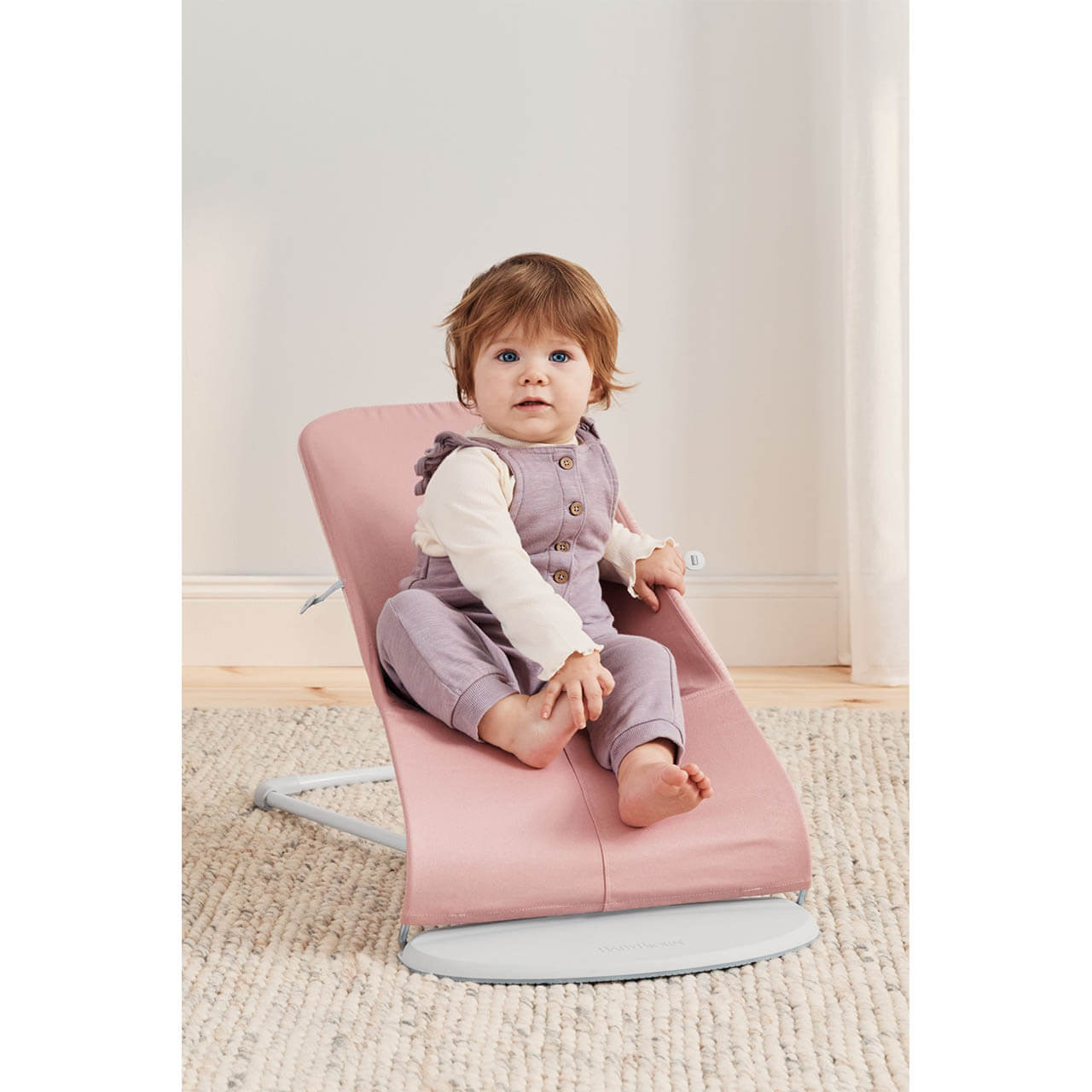 Приятные особенности : Кресла – шезлонги BABYBJORN серии Bliss – это обновленный дизайн классической модели. Данная серия отличается от классики цветом каркаса изделия и дизайном чехла шезлонга. Металлический каркас серого цвета придает изделию более утонченный внешний вид. Однотонные чехлы нежных, теплых оттенков подчеркивают скандинавский стиль. Новые цветовые решения вызывают ассоциации легкости, спокойствия и блаженства. Эргономичное сидение обеспечивает надежную поддержку головы, шеи и спины ребенка. Предусмотрено три положения: для игры, отдыха и сна. Легким движением можно поменять верхнее положение на нижнее, в котором малышу будет комфортнее заснуть. Анатомический правильный покрой чехла равномерно распределяет вес ребенка во время нахождения в шезлонге. Этот фактор очень важен для маленьких детей, чьи мышцы еще не развиты. Ребенок своими движениями сам приводит кресло – шезлонг в действие. Для работы шезлонга не требуются ни батареек, ни электричества. В дизайне изделия предусмотрен фиксатор для малыша, чтобы ребенок не выпал из шезлонга. Когда ребенок становится уже более самостоятельным чехол можно снять и перевернуть его другой стороной. Таким образом, шезлонг трансформируется в удобное кресло-качалку. Быстро и легко складывается для удобной транспортировки и хранения.