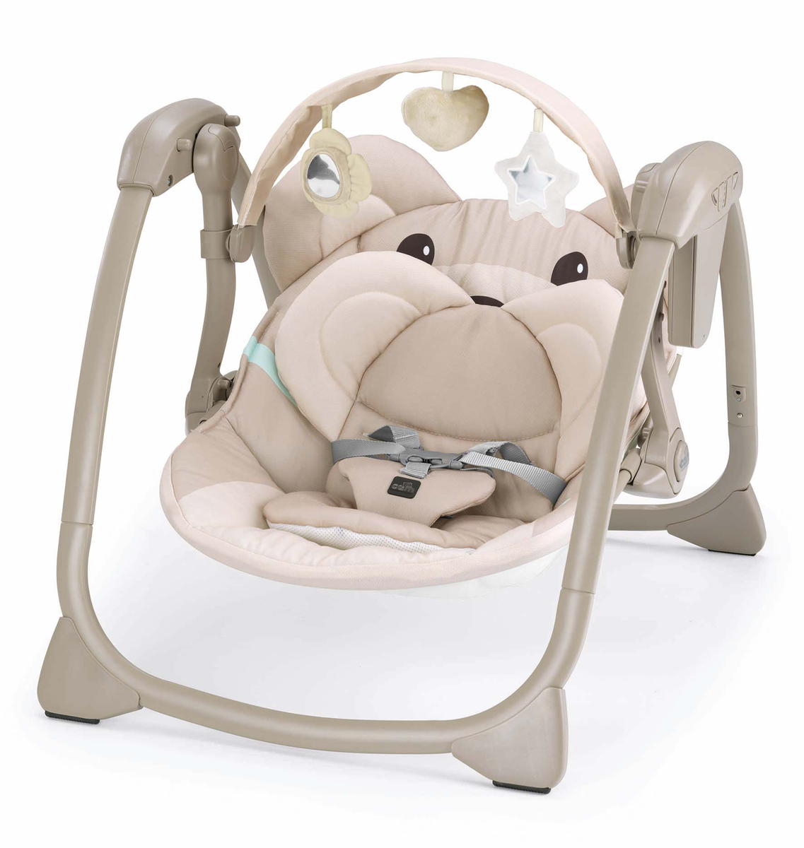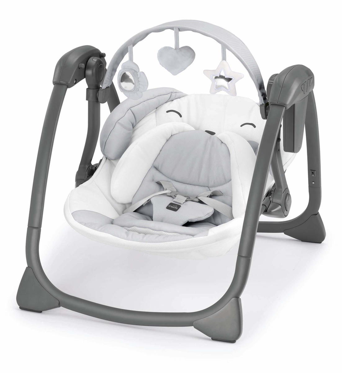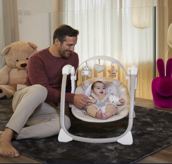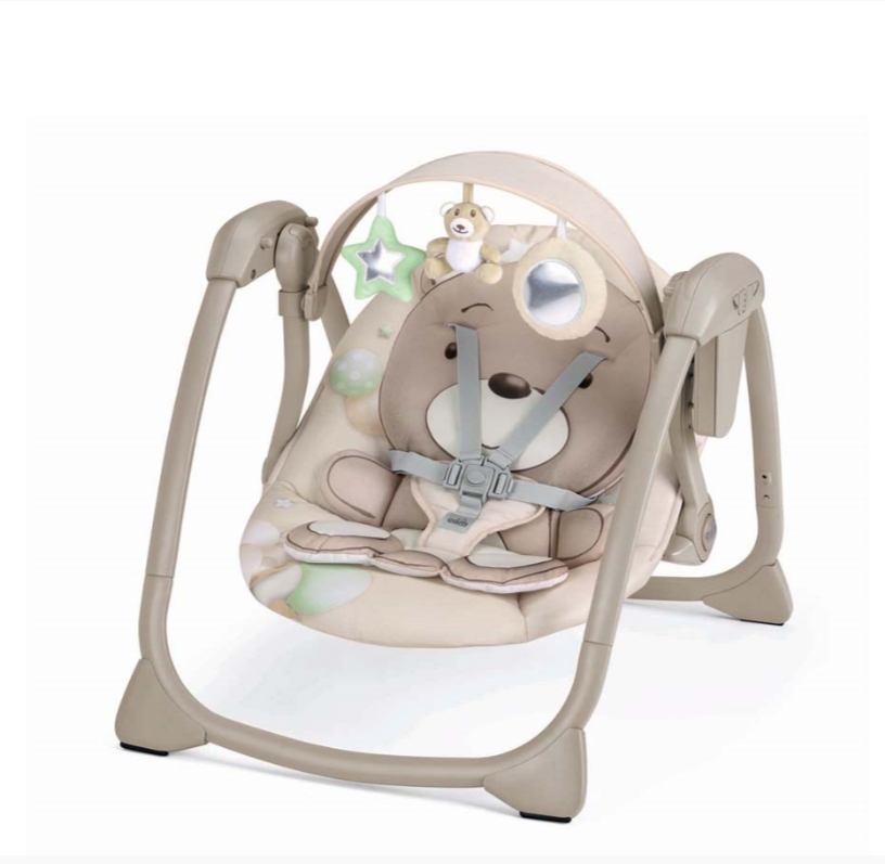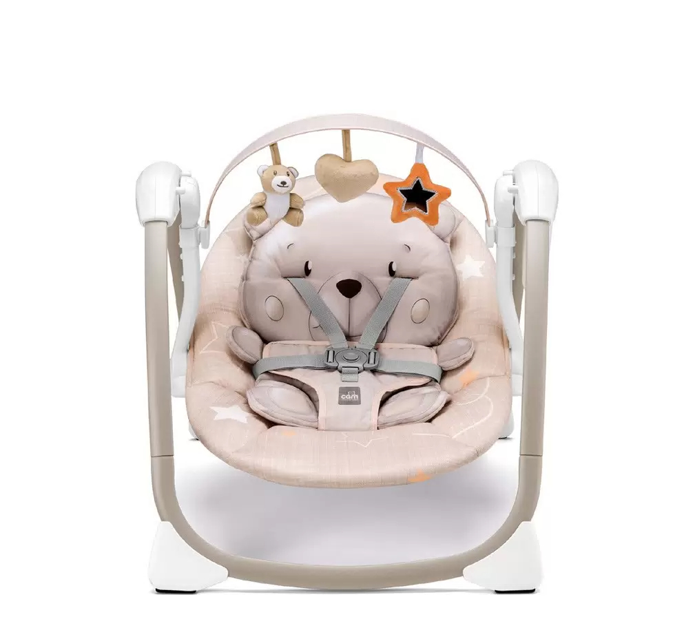 Приятные особенности: Шезлонг-качалкиCamMidi-стильное приспособление с развивающей дугой для укачивания ребенка с первых дней жизни примерно до полугода (до 9 кг по весу малыша). У качелей два положения наклона спинки. Чехол выполнен из мягкой, приятной ткани. Подголовник мягкий, в качелях использованы 5-точечные страховочные ремни. Есть регулируемый солнцезащитный козырек с тремя положениями высоты и съемными мягкими игрушками. В комплекте — пять регулируемых режимов скорости. Имеется таймер автоматического выключения. Всего в качелях 15 мелодий и 5 звуков природы. Качели оборудованы нескользящими резиновыми ножками. Работают от батареек и с трансформатором. Чехол съемный, стирается в режиме деликатной стирки. В сложенном виде компактные и не занимают много места.