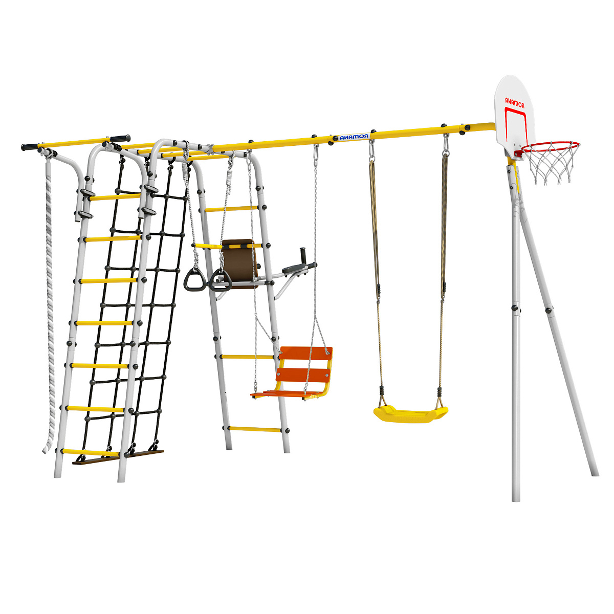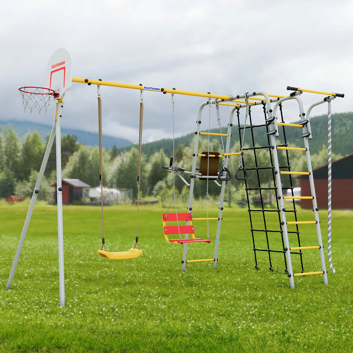 Приятные особенности:Детский комплекс ROMANA Акробат-2 NEW PRO включает в себя все спортивные снаряды, которые так любимы маленькими непоседами. Систему оборудования можно установить на дачном участке либо на отрытой придомовой площадке.Преимуществом оборудования является то, что им могут пользоваться одновременно двое или даже трое малышей. В комплекте предлагаются цепные качели, качели пластиковые, удобная сетка лаза и брусья со спинкой и кольцами.Все элементы комплекта выполнены из качественных материалов. Оборудованию не страшны неблагоприятные погодные условия. Изделие отлично переносит изнуряющее солнце, проливной дождь и ветер. Маленькие пользователи и их родители останутся довольны разнообразием лестниц, качеством качелей и надежностью брусьев. Оборудованием ROMANA Акробат-2 NEW PRO удобно пользоваться. Оно рассчитано на длительный срок эксплуатации.