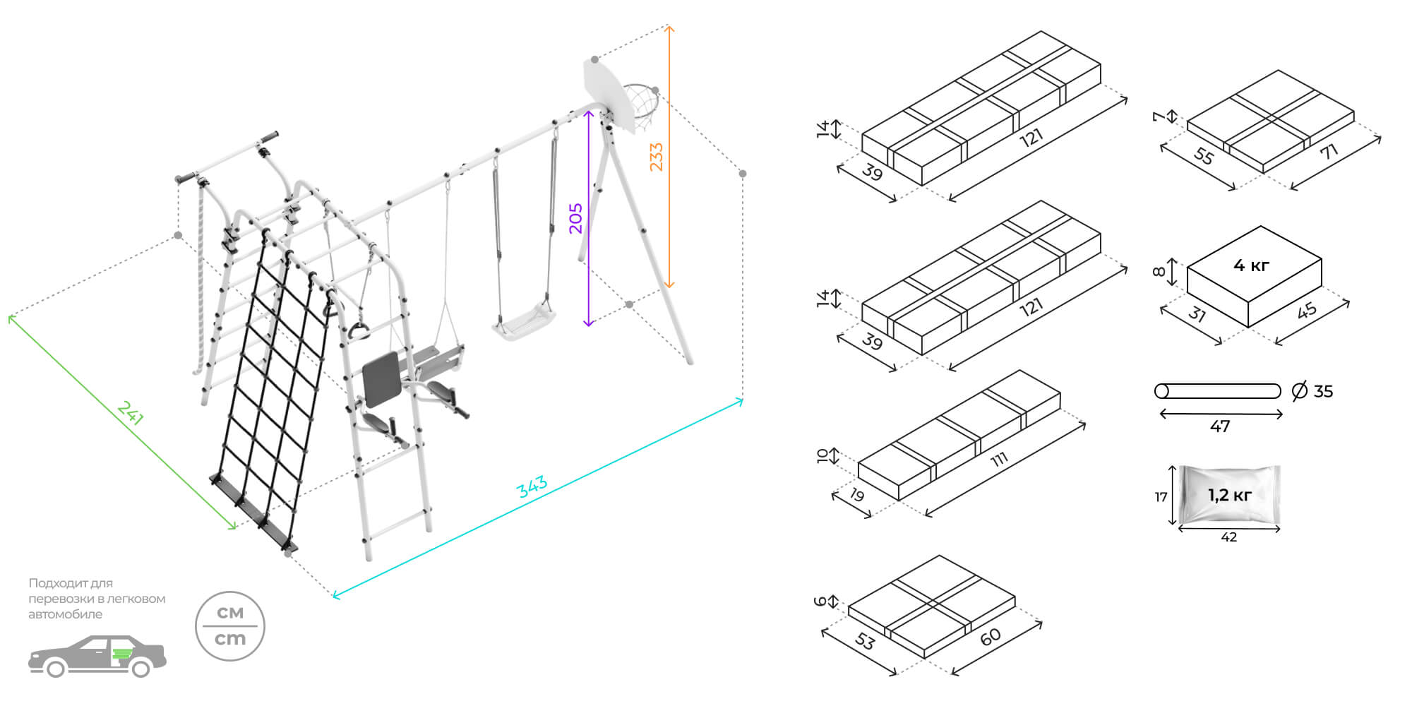 Размеры:343х241 х233 см