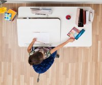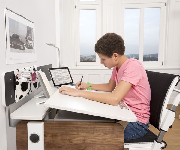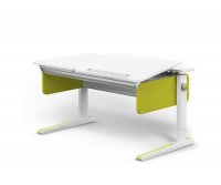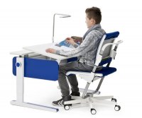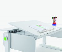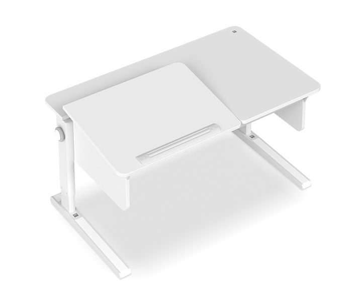 Приятные особенности:Стол Champion Left-Up - одна из самых популярных моделей столов Moll. На стационарной части столешницы ребенок сможет с удобством расположить книги, тетради, подставку для канцелярских принадлежностей или настольную лампу. Благодаря новому запатентованному механизму поднимаемая до 20 градусов часть столешницы регулируется по высоте плавно и легко. При этом необходимый угол остается прочно зафиксированным в нужном положении, что исключает риск возникновения у ребенка травм. Технологический зазор между регулируемой и стационарной частями поверхности отсутствует, обе стороны примыкают друг к другу вплотную при опущенной столешнице. В задней части стола Молл предусмотрен кабель-канал – в него можно спрятать провода от компьютерных устройств, с которыми работает ребенок.Стандартная комплектация стола moll Champion Left-Up QI включает пластиковую магнитную линейку, которая также является барьером для соскальзывания предметов при поднятой столешнице, бокс с декоративными цветными лентами и заглушками в 8 различных цветах и крючок для портфеля. Стол-трансформер укомплектован складной подставкой для книг – ее удобно брать с собой в школу.Отличительная особенность изделия – столешница, которая разделена на функциональные зоны. Ее регулируемая часть располагается с левой стороны. Такое размещение зон эргономично для детей правшей.