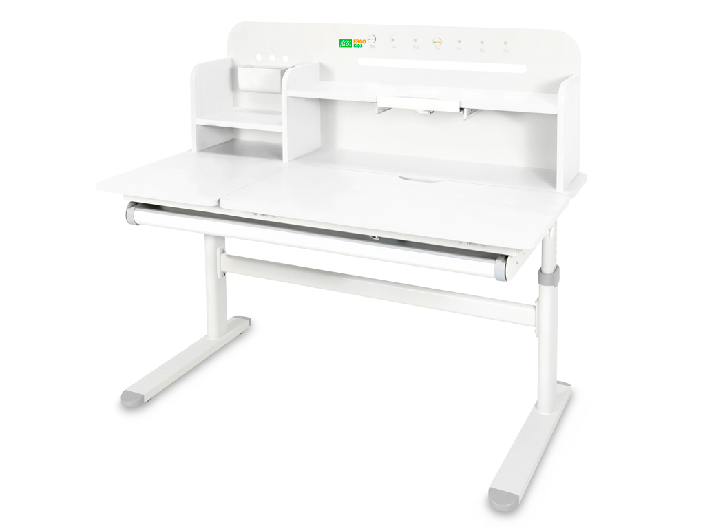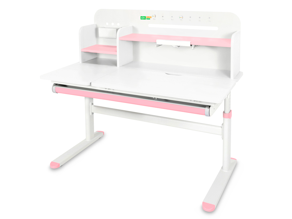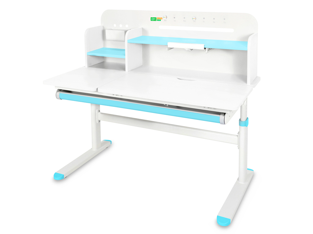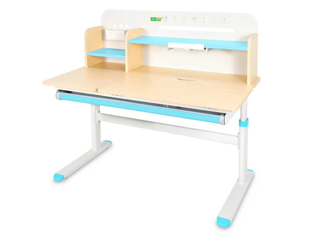 Приятные особенности:Детский стол-трансформер Ergokids Bravo Max (TH-360) – это ортопедическая мебель, которая заботится о здоровье и осанке вашего ребенка. Парта прослужит с детского сада до старшей школы, на протяжении всего периода обучения ребенка.На функциональной надстройке есть несколько полочек для размещения книг и монитора. Металлическую стенку стола можно использовать для размещения заметок. В подарок – регулируемая подставка под книгу, которая меняет угол наклона.Регулировка высоты столешницы 52-76 см. Высота стола регулируется с помощью механической ручки, что дает возможность легко настроить парту под рост ребенка. Стол с трансформирующейся столешницей, которая изменяет угол наклона до 50 градусов с помощью механизма газлифт. Вы можете установить оптимальный угол наклона столешницы для чтения, письма или рисования.Сбоку, у стола крепится крючок, на который ребенок может повесить портфель или спортивную форму.Конструкция стола крепкая и надежная благодаря металлическому каркасу. Растущая парта прослужит вам долго! Цветные защитные накладки на ножках и выдвигающемся органайзере добавят акцент в детский интерьер.Стол для школьника оснащен выдвижным органайзером во всю длину, расположенным под столешницей. Выдвигающийся на 20 см пенал-органайзер сделан из прочного, безопасного пластика и позволяет удобно хранить и использовать школьные принадлежности.