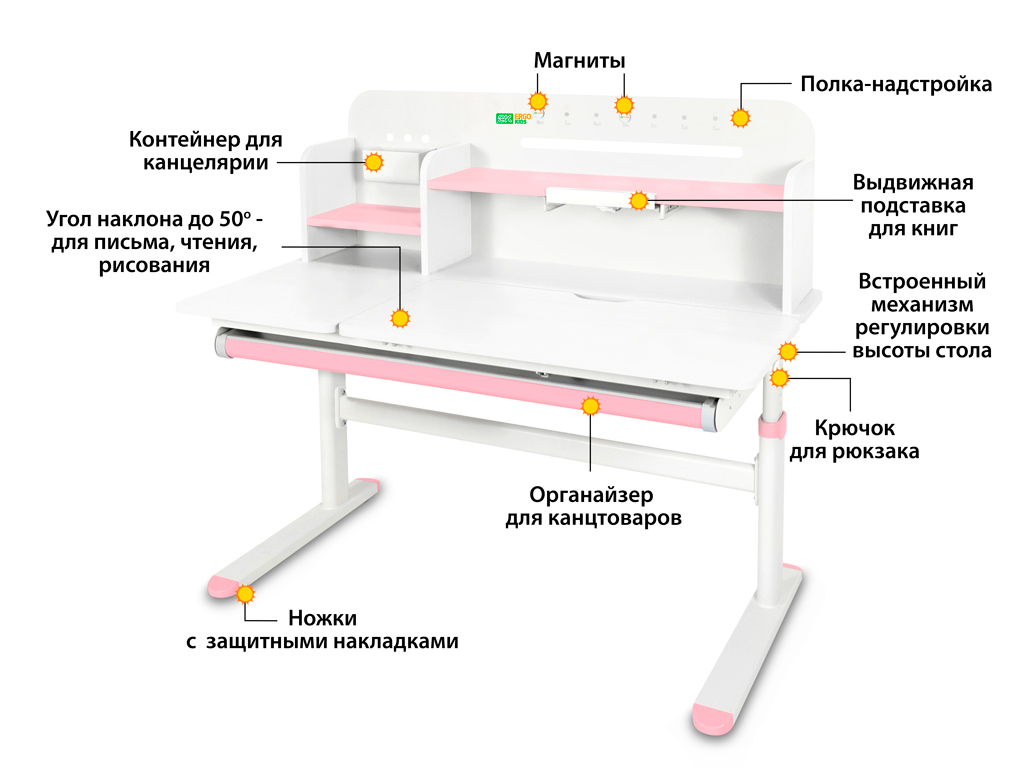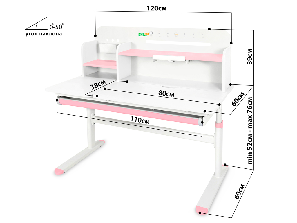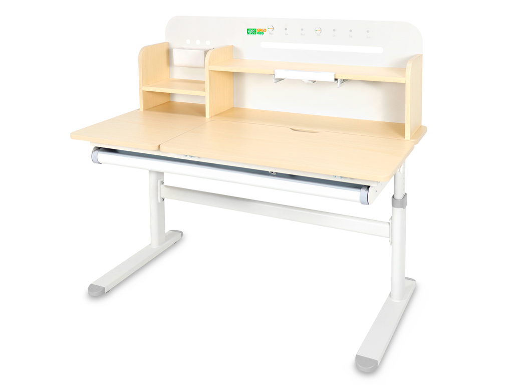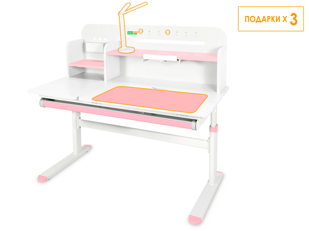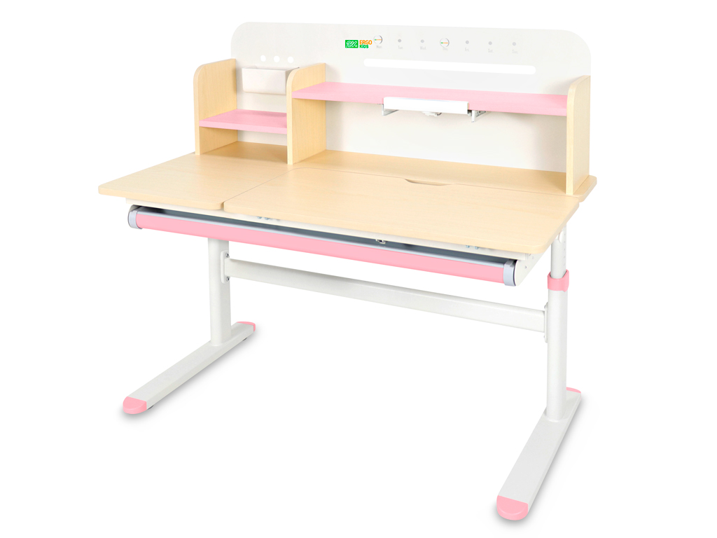 Приятные особенности:Детский стол-трансформер Ergokids Bravo Max (TH-360) – это ортопедическая мебель, которая заботится о здоровье и осанке вашего ребенка. Парта прослужит с детского сада до старшей школы, на протяжении всего периода обучения ребенка.На функциональной надстройке есть несколько полочек для размещения книг и монитора. Металлическую стенку стола можно использовать для размещения заметок. В подарок – регулируемая подставка под книгу, которая меняет угол наклона.Регулировка высоты столешницы 52-76 см. Высота стола регулируется с помощью механической ручки, что дает возможность легко настроить парту под рост ребенка. Стол с трансформирующейся столешницей, которая изменяет угол наклона до 50 градусов с помощью механизма газлифт. Вы можете установить оптимальный угол наклона столешницы для чтения, письма или рисования.Сбоку, у стола крепится крючок, на который ребенок может повесить портфель или спортивную форму.Конструкция стола крепкая и надежная благодаря металлическому каркасу. Растущая парта прослужит вам долго! Цветные защитные накладки на ножках и выдвигающемся органайзере добавят акцент в детский интерьер.Стол для школьника оснащен выдвижным органайзером во всю длину, расположенным под столешницей. Выдвигающийся на 20 см пенал-органайзер сделан из прочного, безопасного пластика и позволяет удобно хранить и использовать школьные принадлежности.