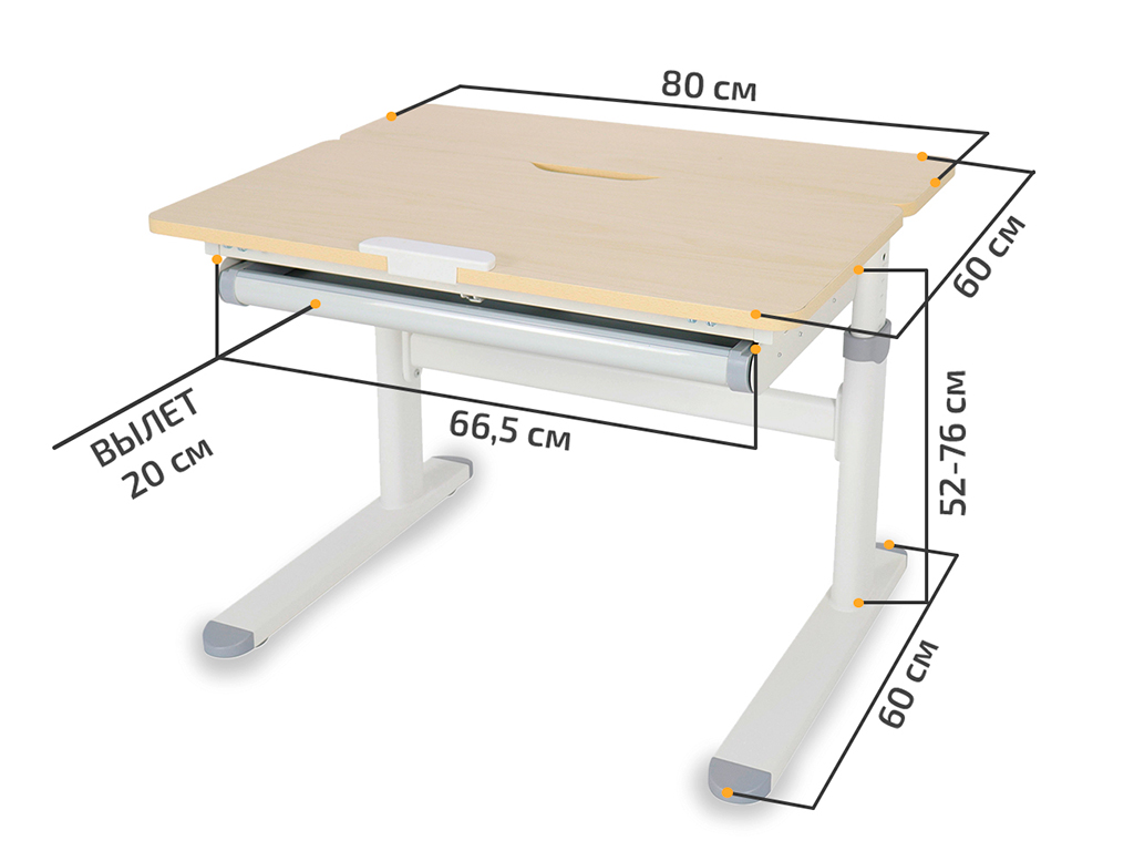 Размеры стола (Шх Г хВ): 8 0 x 60 x 52 - 76 см