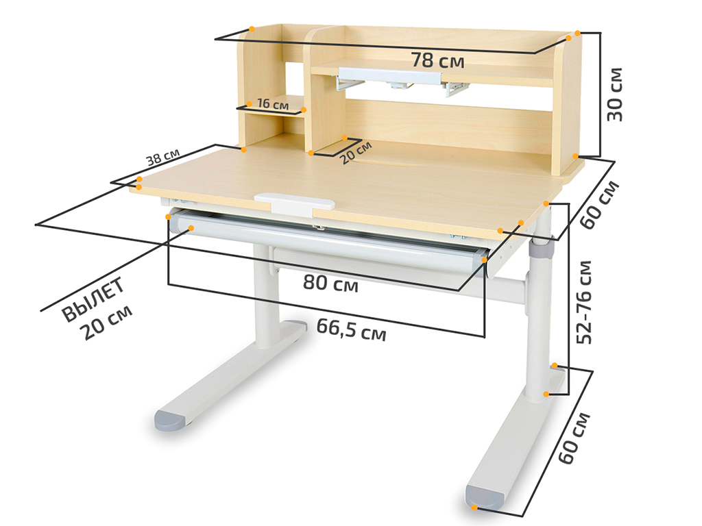 Размеры стола (Шх Г хВ): 80 x 60 x 52 - 76 см