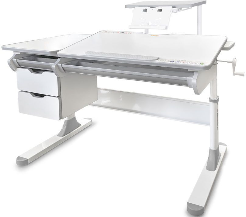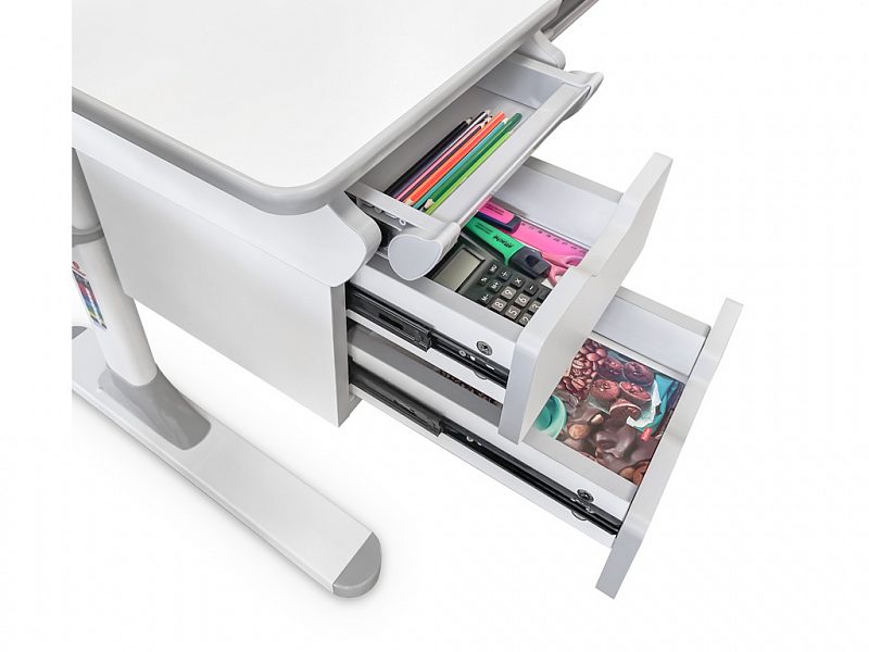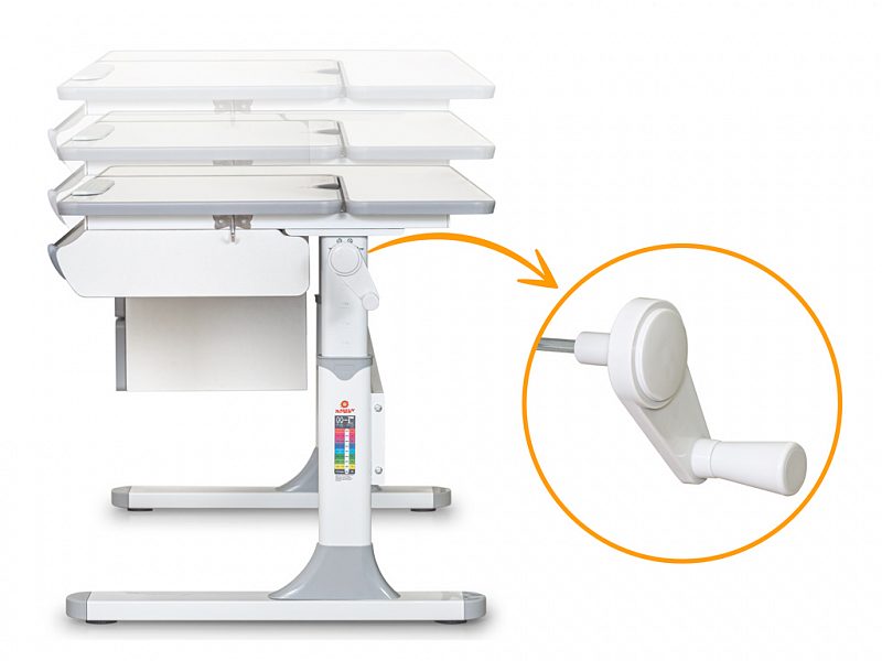 Приятные особенности:Детский стол Mealux Hamilton Multicolor Lite- о дной из важных особенностей данной модели является наличие сменных цветных накладок в подарок! Накладки меняются на ножках, пластиковом пенале и выдвижном органайзере. Lite версия стола представлена как без полки, так и с полкой BD-S 50. Полка позволит удобно разместить книгу или планшет на выдвижной металлической подставке для книги. С легкостью можно регулировать угол наклона подставки, а полка послужит для компактного размещения учебников, монитора и лампы.Под статичной частью столешницы размещены выдвижные ящики и пенал из прочных материалов для хранения канцелярских принадлежностей.Стол имеет большой выдвижной органайзерразмещенный под столешницей, который изготовлен из прочного, безопасного пластика.Высотастола регулируется с помощью червячного механизма ручкой, которую при сборке можно установить справа, либо слева.Высота стола регулируется с помощью червячного механизма ручкой, которую при сборке можно установить справа, либо слева.С помощью газлифта подвижная часть столешницы меняет угол наклона до 60 градусов. Столешницу с отрегулированным углом наклона можно использовать для письма, чтения и рисования.Наличие съемного прорезиненного барьера на столешнице предотвращает скатывание предметов во время выполнения домашнего задания.