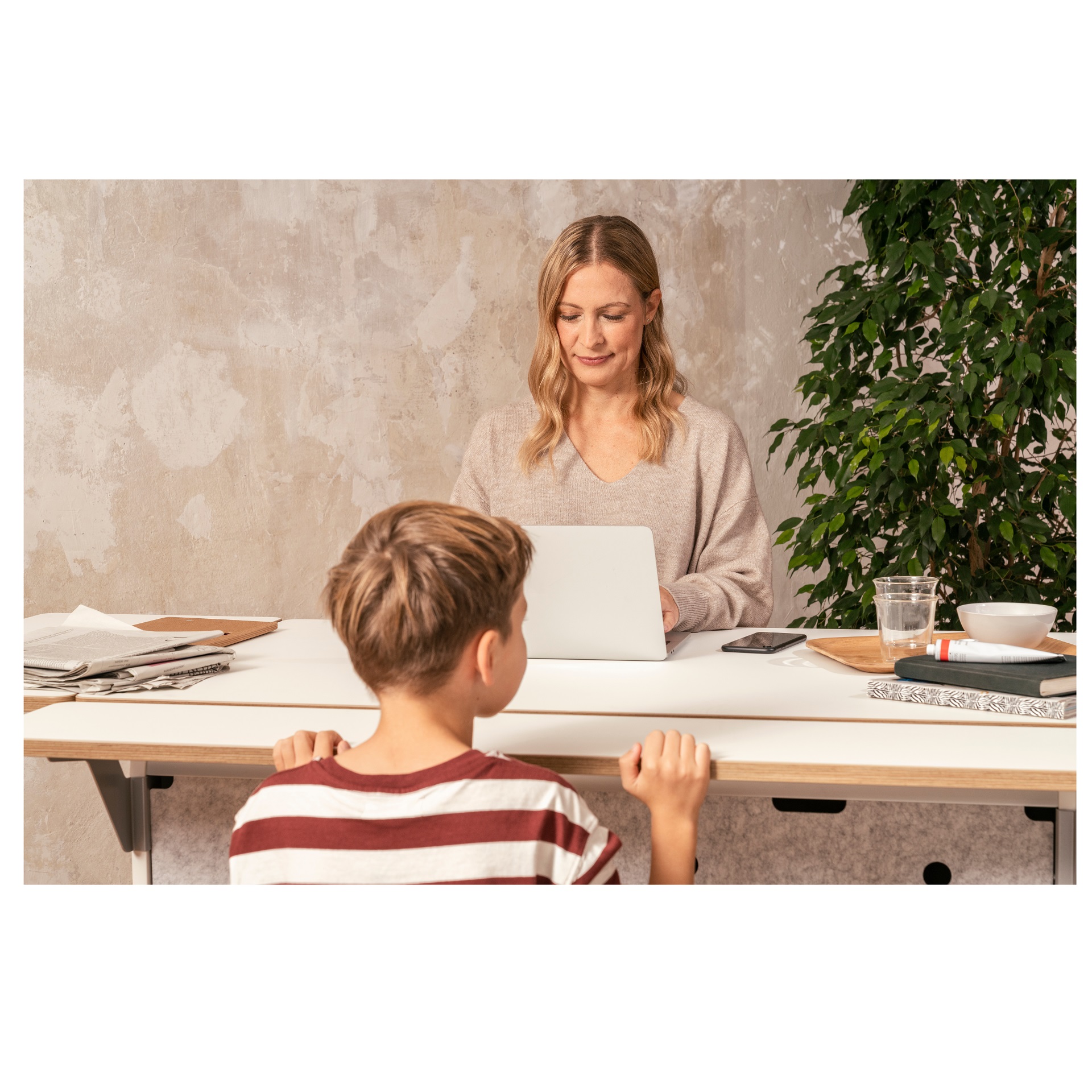 Приятные особенности:Детский стол Moll T2 M-Fс высотной регулировкой для работы сидя или стоя, столешницей Soft Touch и набором опций. В отличие от T1, этот стол имеет версию с изменением наклона центральной части столешницы.Есть возможность укомплектовать стол дополнительными опциями, среди которых – выдвижной ящик с крышкой, адаптер высоты (+5 или +10 см), крышка для кабель-канала, а также задняя и боковая полки.Пружинный механизм стола T2 регулируетсяв зависимости от нагрузки на столешницу инейтрализует вес до 38 кг.При изменении высоты столешница буквальнопарит в воздухе, даже если на ней расположеныпринадлежности для работы.