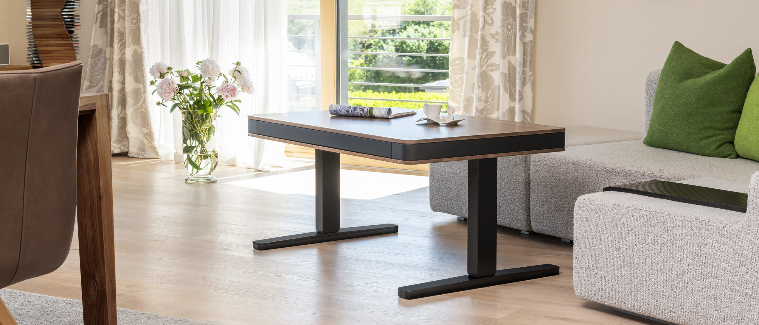 • Высота регулируется при помощи электропривода с мягким ходом