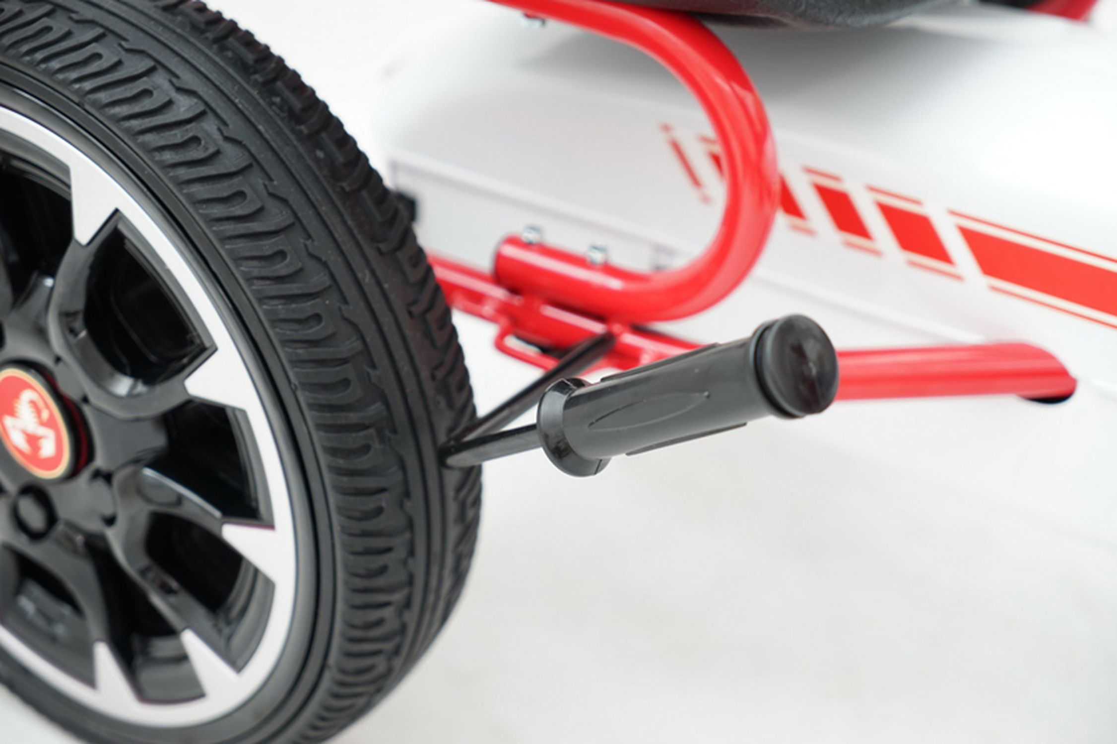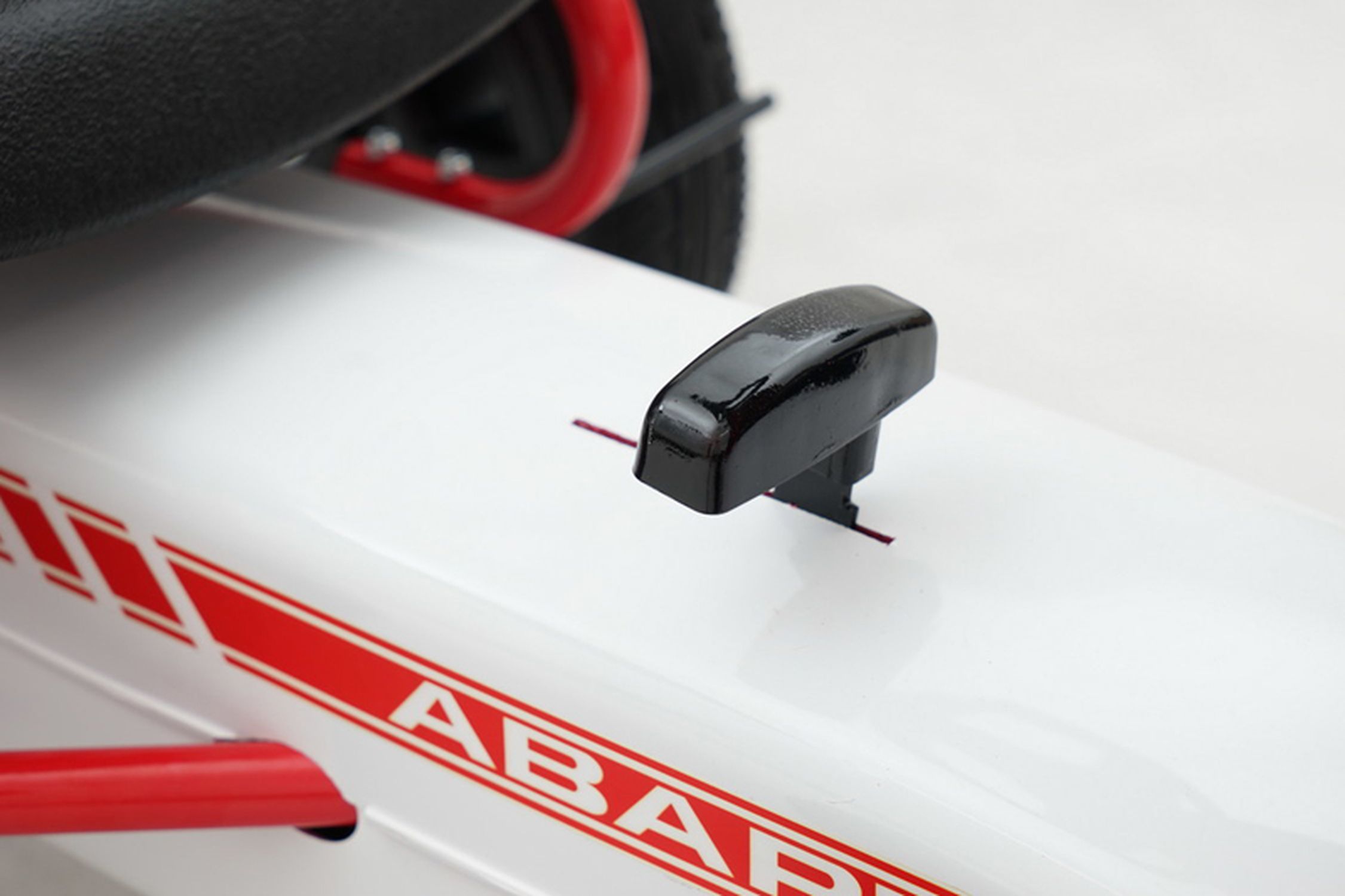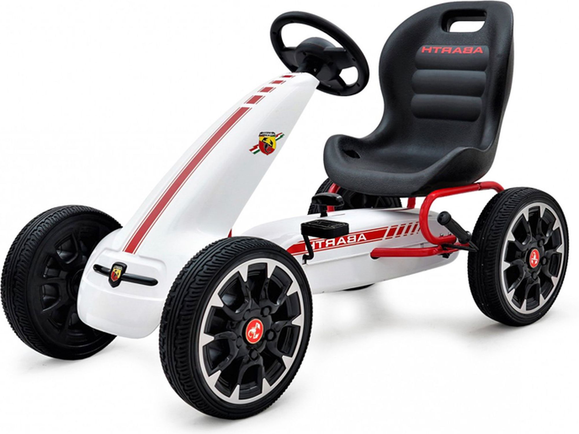 Приятные особенности: Лицензионный веломобиль Abarth PB9388A представляет собой педальный картинг с цепной передачей. Имеет прочную металлическую конструкцию, которая легко выдержит вес ребенка, а благодаря большим и широким колесам из вспененной резины веломобиль отлично справится с большинством препятствий, которые могут встретиться на пути. На этом веломобиле можно кататься по тротуару, в парке, по грунтовой дороге. Удобное эргономическое сидение регулируется под рост ребёнка. Для безопасного катания у веломобиля предусмотрен надежный ручной тормоз.