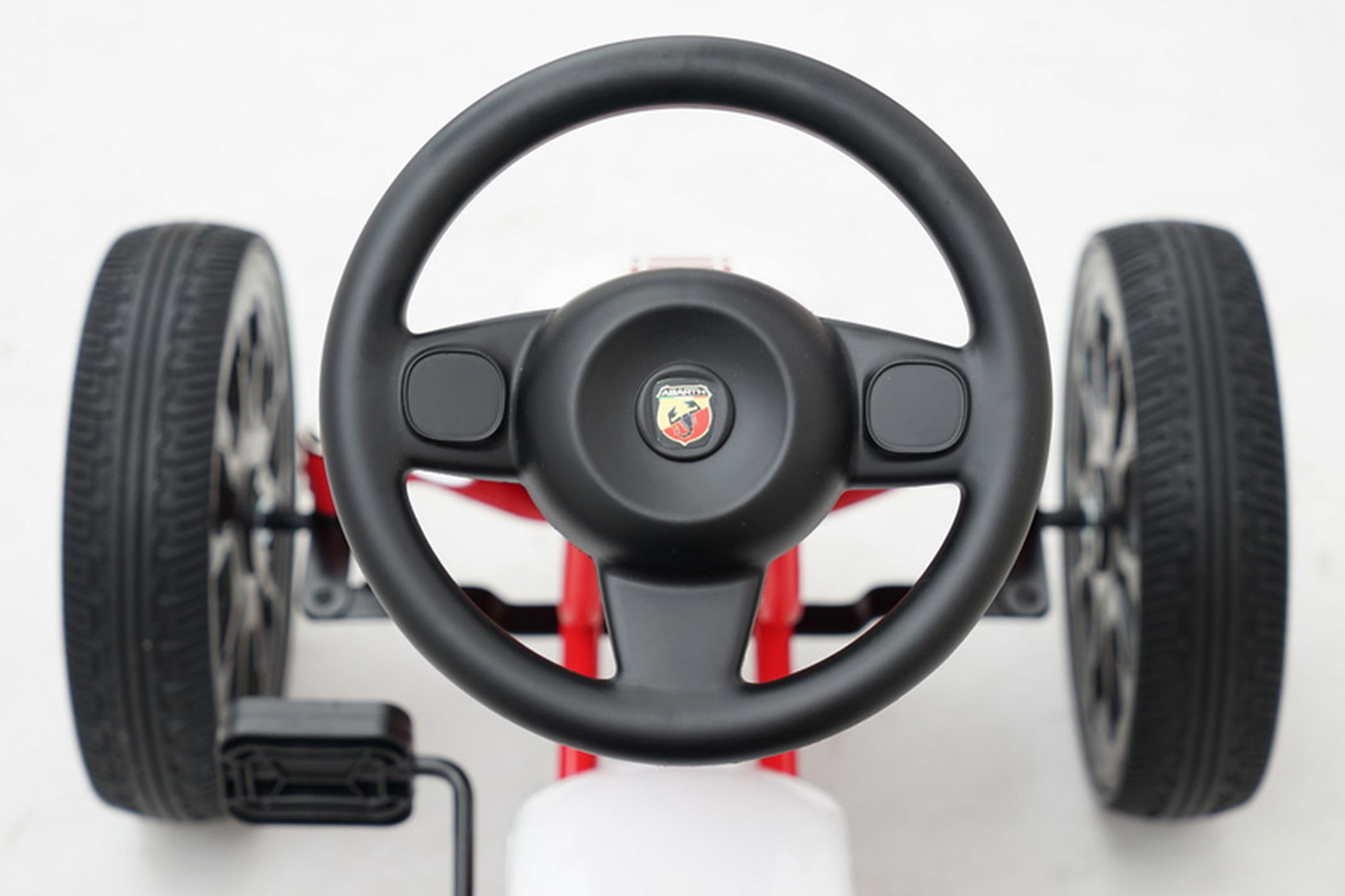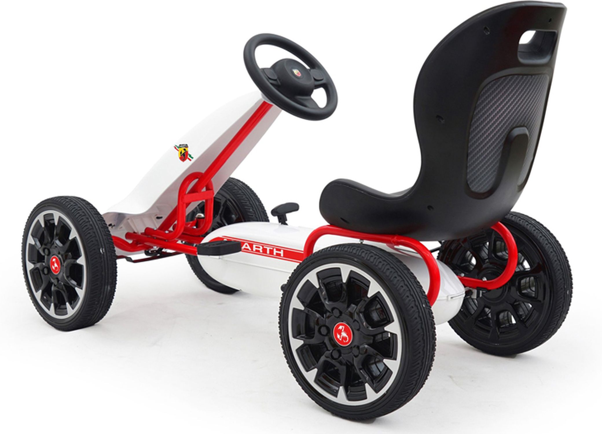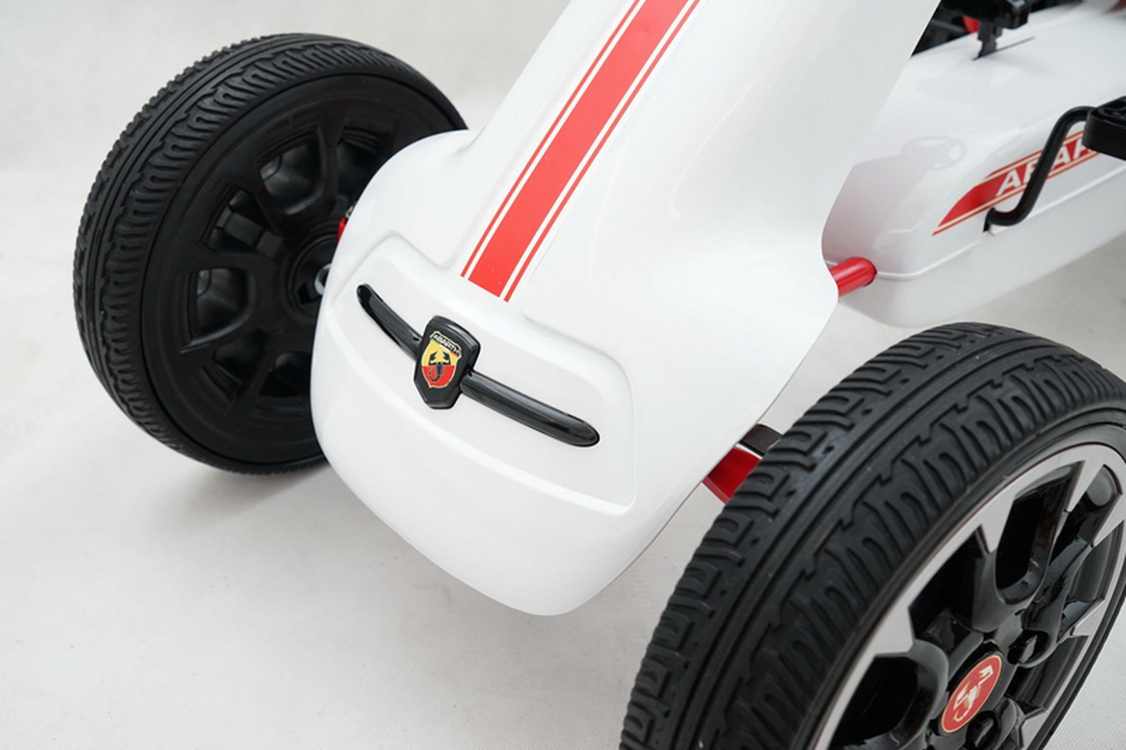 Приятные особенности: Лицензионный веломобиль Abarth PB9388A представляет собой педальный картинг с цепной передачей. Имеет прочную металлическую конструкцию, которая легко выдержит вес ребенка, а благодаря большим и широким колесам из вспененной резины веломобиль отлично справится с большинством препятствий, которые могут встретиться на пути. На этом веломобиле можно кататься по тротуару, в парке, по грунтовой дороге. Удобное эргономическое сидение регулируется под рост ребёнка. Для безопасного катания у веломобиля предусмотрен надежный ручной тормоз.