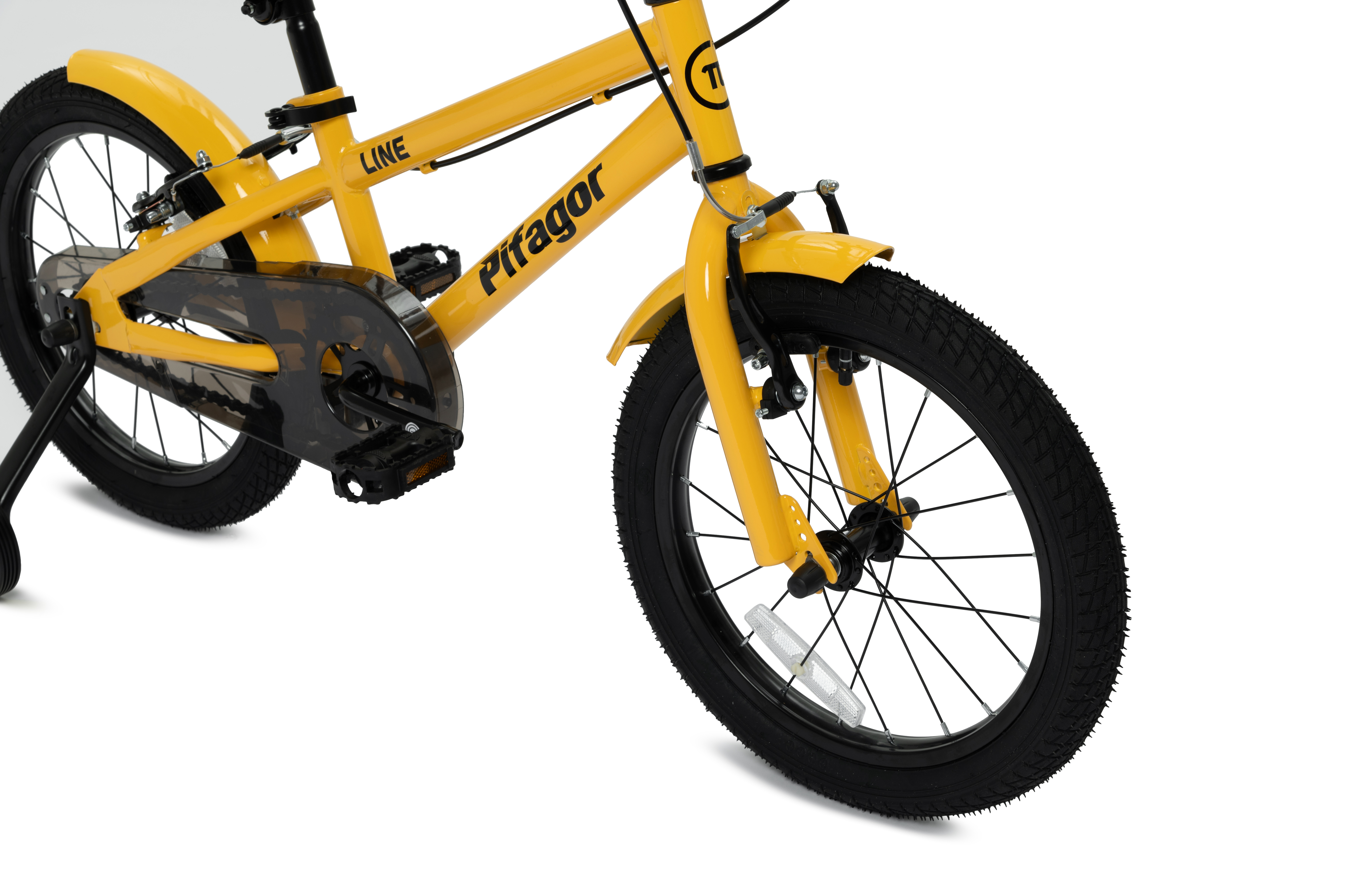Приятные особенности:Детский велосипед Pifagor Line на 16-х колесах – яркий, легкий и безопасный велосипед для ребенка на рост от 105 до 120 см. Прочная и детально продуманная конструкция, удобный руль, все необходимые регулировки для комфортной настройки велосипеда под любого ребенка. Полноразмерная защита цепи защитит любопытного райдера от небезопасных экспериментов с вращающейся звездой, цепью и пальцами. Заменив задний ножной тормоз на ручной V-brake и установив облегченную втулку на заднее колесо обновленного велосипеда Pifagor Line, мы сделали его более удобным для ребенка. Теперь легче крутить педали, что добавляет удобство и безопасность в поездках. Широкие покрышки обеспечивают лучшую амортизацию.Заменили пластиковые тренировочные колеса на колесах с резиновой накладкой, что значительно снижает шум при движении велосипеда и повышает комфорт при катании. Установили удлиненные грипсы на руле велосипеда, чтобы увеличить комфорт и улучшить сцепление рук с рулем во время езды.Теперь используем Water transfer printing - это метод нанесения изображений или текста на поверхность рамы велосипеда. Преимуществами данной технологии являются износостойкость и долговечность изображения. Благодаря использованию водных красок, изображение не выцветает и не стирается при воздействии влаги, грязи и других внешних факторов. Это позволяет сохранить привлекательный вид Pifagor Line 16 на длительное время без необходимости периодического обновления изображения.