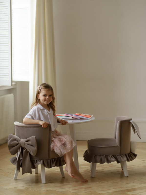 Приятные особенности: Стул Amari модель Бант в антивандальном велюре цвет кофе с молоком. Эргономика стула рассчитана на ребенка до 8 лет, но благодаря широкому полноразмерному сидению на стуле комфортно сидеть даже взрослому человеку. Высота сидения стула от пола до сидения 32 см рассчитана под высоту стола 50-55 см. Каркас стула массив бука, покраска светлое дерево. Обивка мебельный моющийся велюр.