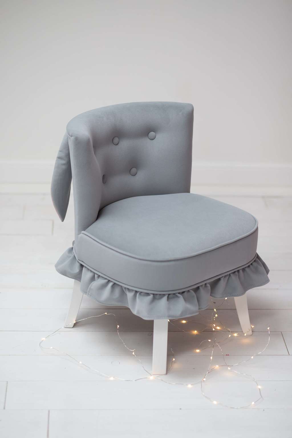 Приятные особенности:Детский стул Amari модель Ослик Иа выполнен в мебельном велюре, который отличается особенно легким уходом. Эргономика стула рассчитана на ребенка ростом от 5 лет, под высоту стола от 50-60 см. Каркас массив бука, покраска белое масло.Высота 580 мм, высота сидения 320 мм, ширина 460 мм, общая глубина 480 мм.