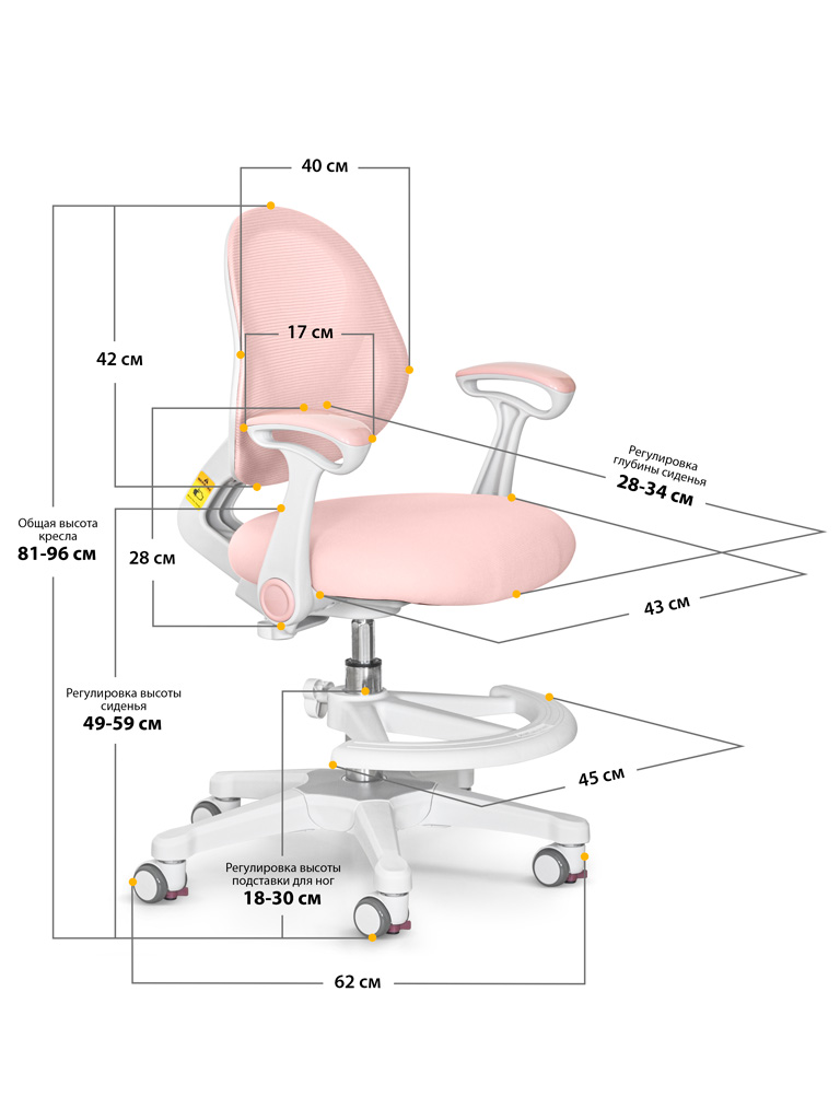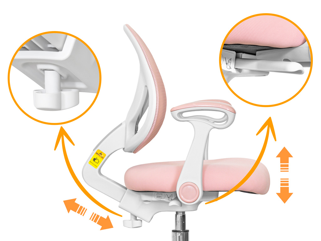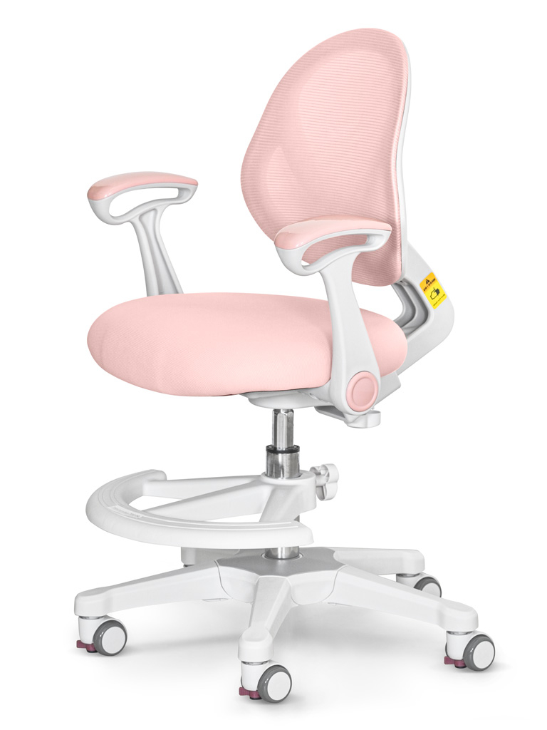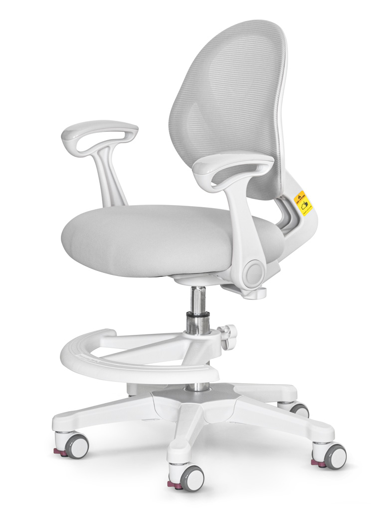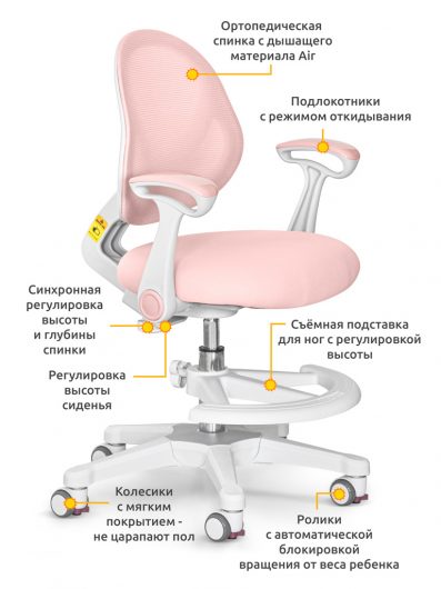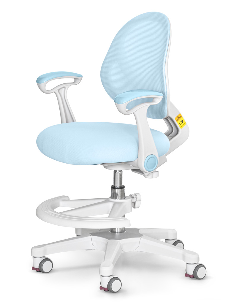 Приятные особенности:Детское кресло ErgoKids Mio Air (Y-400 (arm))-серия кресел «Эйр» отличается «дышащей» обивкой, которая способствует правильной теплорегуляции, что особенно важно в жаркий период года. Съемную обивку можно стирать, а в подарок производитель уже включил в комплект второй сменный чехол. Спинка с изгибом лучше прилегает к позвоночнику и способствует формированию здоровой осанки. Высота сидения регулируется за счет газлифта, который отвечает за его подъем и фиксацию. Отдельно можно настроить глубину сидения и высоту спинки. Обратите внимание: данные параметры изменяются синхронно. Откидные подлокотники обеспечивают хорошую опору локтям. Чаще подлокотники используют дети старшего школьного возраста. Дугообразная опора для ног регулируется по высоте, а также ее можно поворачивать вокруг оси на 360⁰. Жесткая опора для ног важна для правильной посадки. Без опоры у ребенка ухудшается кровообращение. Колесики с нейлоновым покрытием не оставляют следов на напольном покрытии. Колеси оснащены автостопорами, механизм блокировки срабатывает, как только ребенок садится на кресло. При необходимости его можно деактивировать.