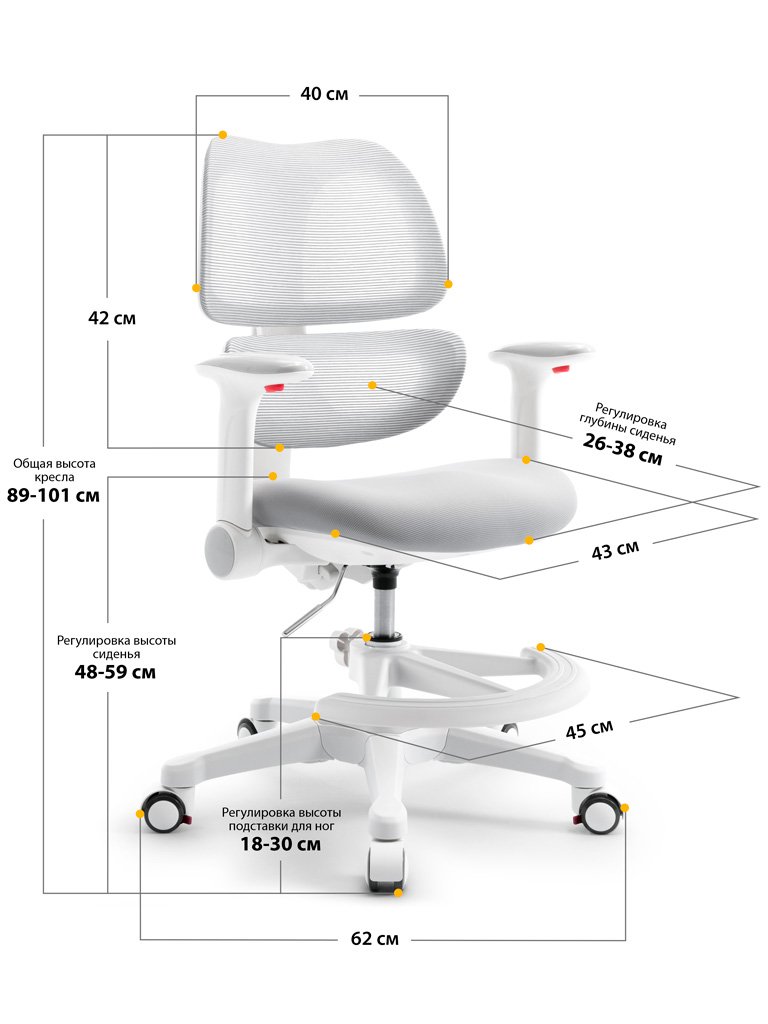 Приятные особенности:Детское кресло Mealux Dream Air имеет о ртопедическую спинку из дышащего материала Air, которая разделена на две части, что позволяет лучше поддерживать поясницу во время занятий и правильно распределить нагрузку спины.У кресла синхронная регулировка высоты спинки и глубины сидения, которая регулируется винтом. Плавную регулировку высоты кресла обеспечивает качественный газлифт. Возможность регулирования и наличие подставки позволяет использовать кресло со стандартными нерегулируемыми столами.Регулируемая подставка для ног из прочного и безопасного пластика снимается за ненадобностьюКолесики с мягким покрытием плавно скользят по поверхности пола. Передвижение кресла автоматически блокируется при нагрузке от 25 кг. Блокировку колес можно отключить специальными стопорами.Приятным бонусом является наличие регулируемых откидных подлокотников.