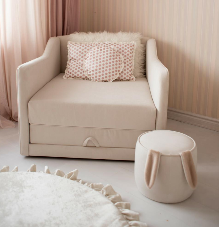 Приятные особенности: Кресло раскладное в кровать Amari в светлом антивандальном велюре Teddy 001. Удобное широкое кресло с возможностью превращения в спальное место 90*200 см. Особенностью модели является качественная деревянная основа с выдвижной частью из дерева. Экологичность каркаса в сочетании с качественной фурнитурой. Округлые и безопасные формы создают особый уют и удовольствие от использования. Рассчитано и на вес взрослого человека