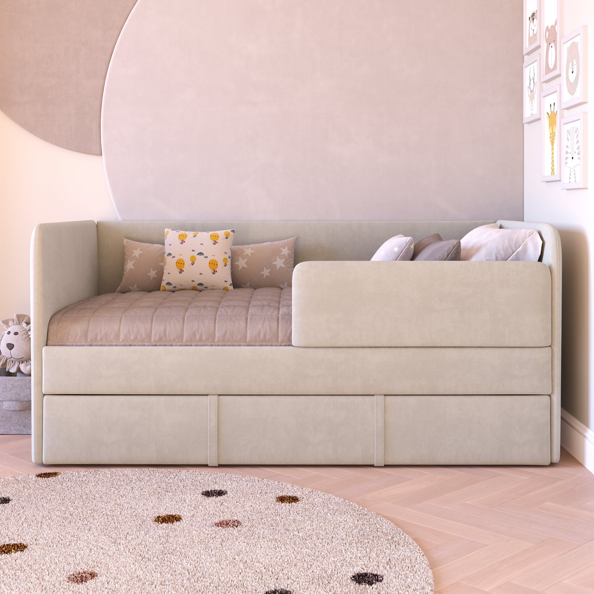 Приятные особенности: Детский диван-кровать Наоми станет отличным решением для современной детской комнаты. Минимализм, стиль, качество исполнения - решающие пункты в пользу данного изделия! Наоми отлично подходит как ребенку, так и подростку, а благодаря разным расцветкам: и мальчику, и девочке! Данная модель кроватки имеет ящик выкатного типа для хранения постельных принадлежностей или игрушек ребенка, который можно использовать как выкатное спальное место.