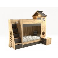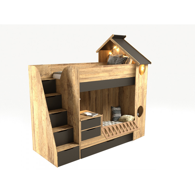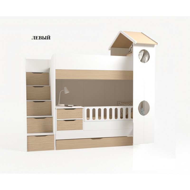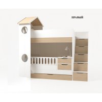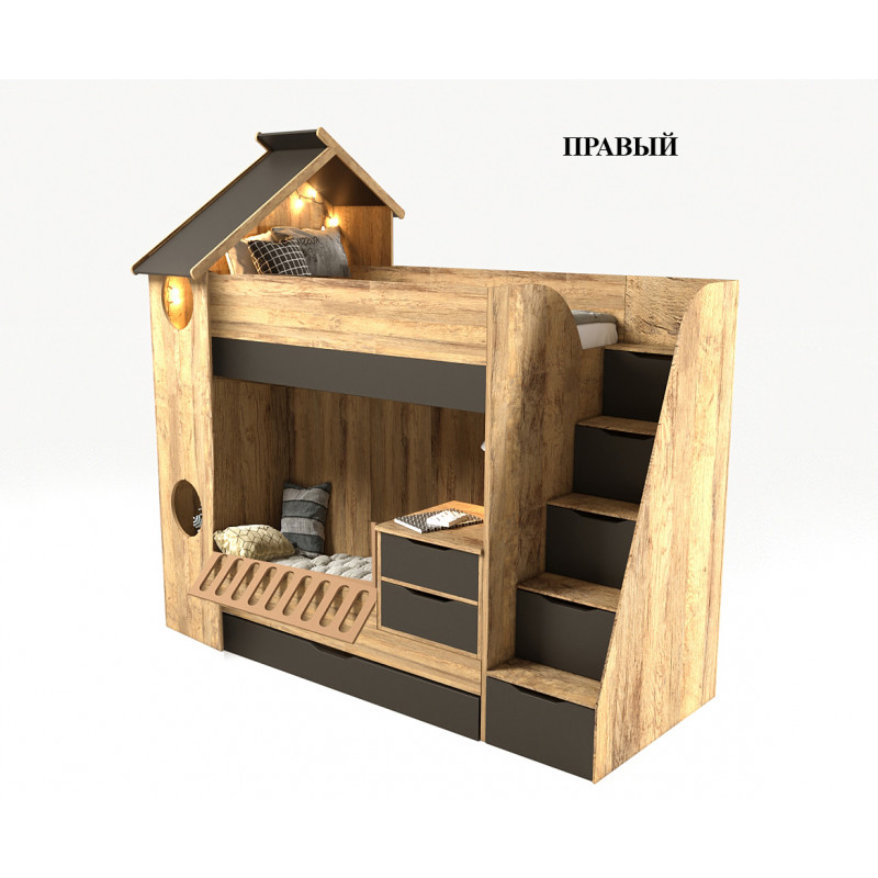 Приятные особенности:Кровать двухъярусная трансформер ДОМИК в комплекте с ограничителем для нижнего яруса (ограничитель может опускаться и сниматься полностью) и тумбой с двумя ящиками, которая может сниматься с кровати и использоваться как самостоятельный модуль. Так же в комплекте имеется прикроватная тумба с одним ящиком. Размер нижнего спального места 90х137 (без тумбы полноценный размер 90х190), а верхнего 90х190 (рекомендуемая высота матраса 14 - 20 см). Лесенка с пятью выдвижными ящиками. Выдвижной ящик под кроватью.Дополнительно можно укомплектовать кровать нижнего яруса мягкой спинкой, прямой или угловой (в области изголовья).Детская мебель "ДОМИК" выполнена в коричневом цвете и цвет графит из ЛДСП EGGER. Кромка немецкая DOLLKEN закрыта со всех сторон каждой детали. Песли дверей с доводчиками. Ящики модулей с доводчиками скрытого монтажа. Фасады мебели покрыты меламиновым покрытием.