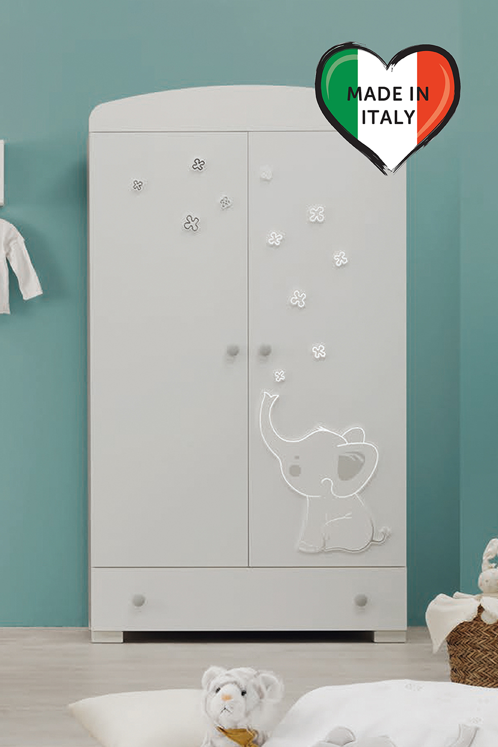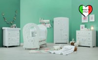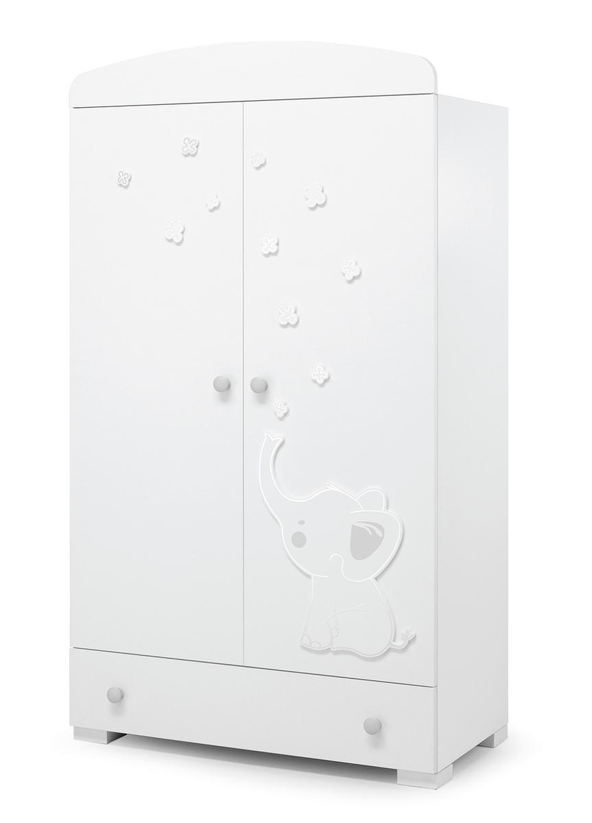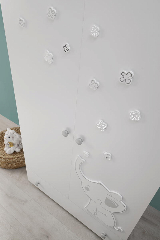 Приятные особенности: Шкаф двухстворчатый Erbesi Elly с нижним выдвижным ящиком для обуви или сезонных вещей. Шкаф украшен оригинальными аппликациями коллекции. Внутреннее пространство шкафа состоит из отделения для верхней одежды с металлической вешалкой для одежды. Как все элементы коллекции шкаф украшен аппликациями в виде больших бантов. Высокие ножки шкафа создают пространство благодаря которому можно проводить влажную уборку.