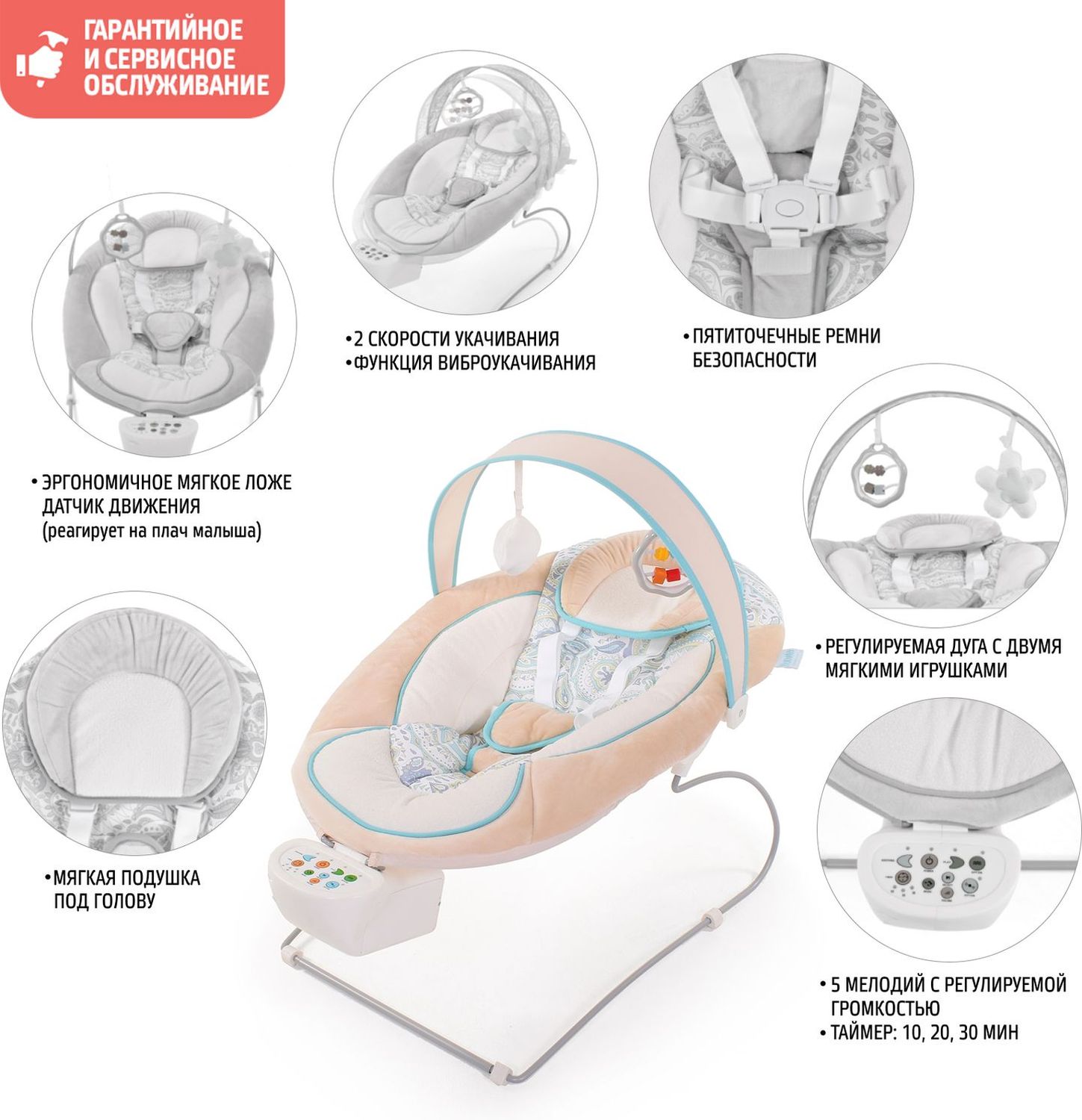 Приятные особенности :Nuovita Cullare - современные электрокачели-шезлонг модного дизайна, которые станут для мамы настоящим помощником. 2 режима качания, виброрежим и встроенные мелодии увлекут и успокоят малыша.