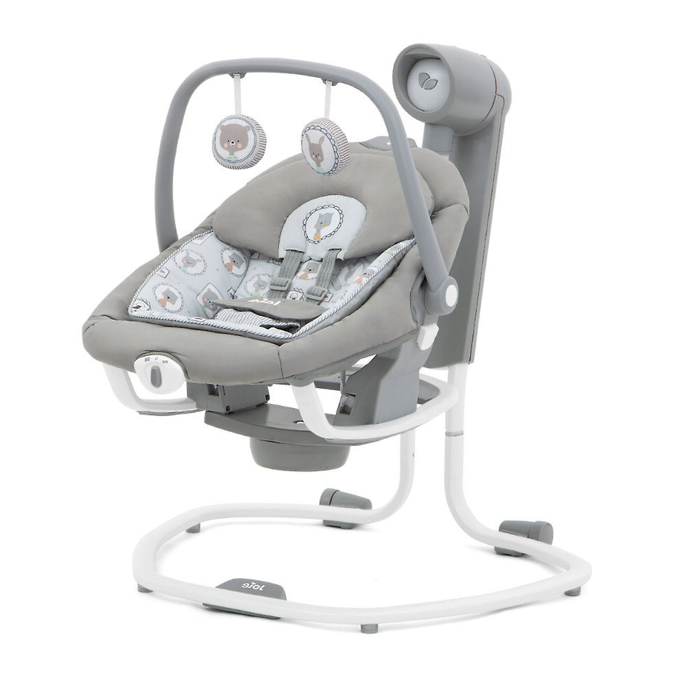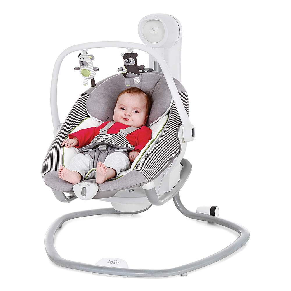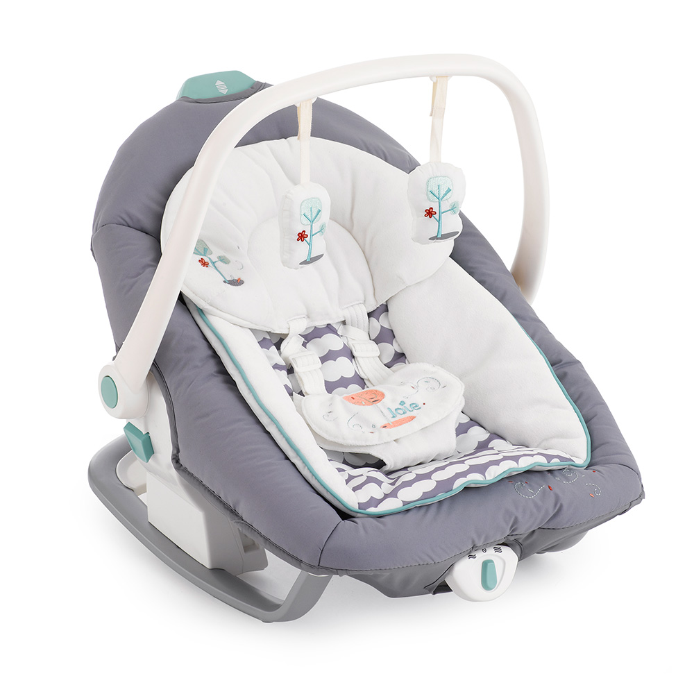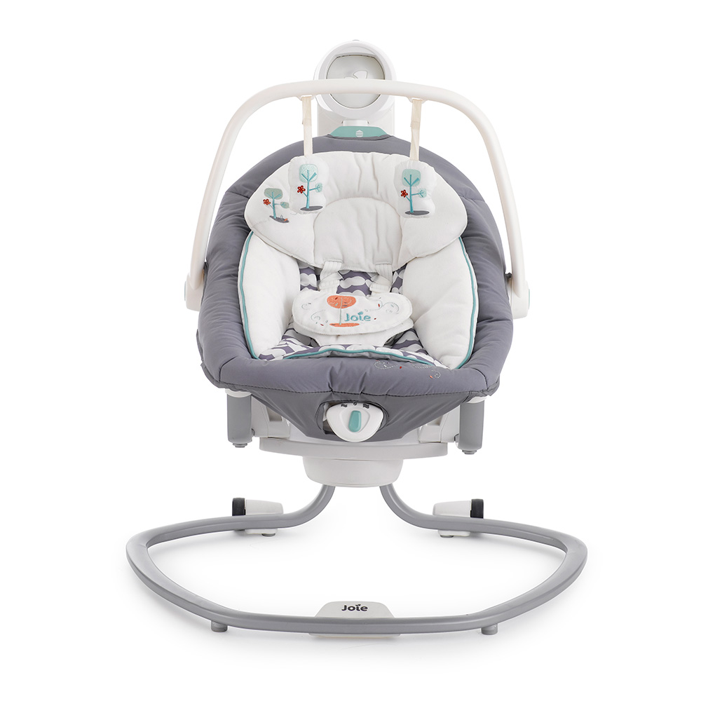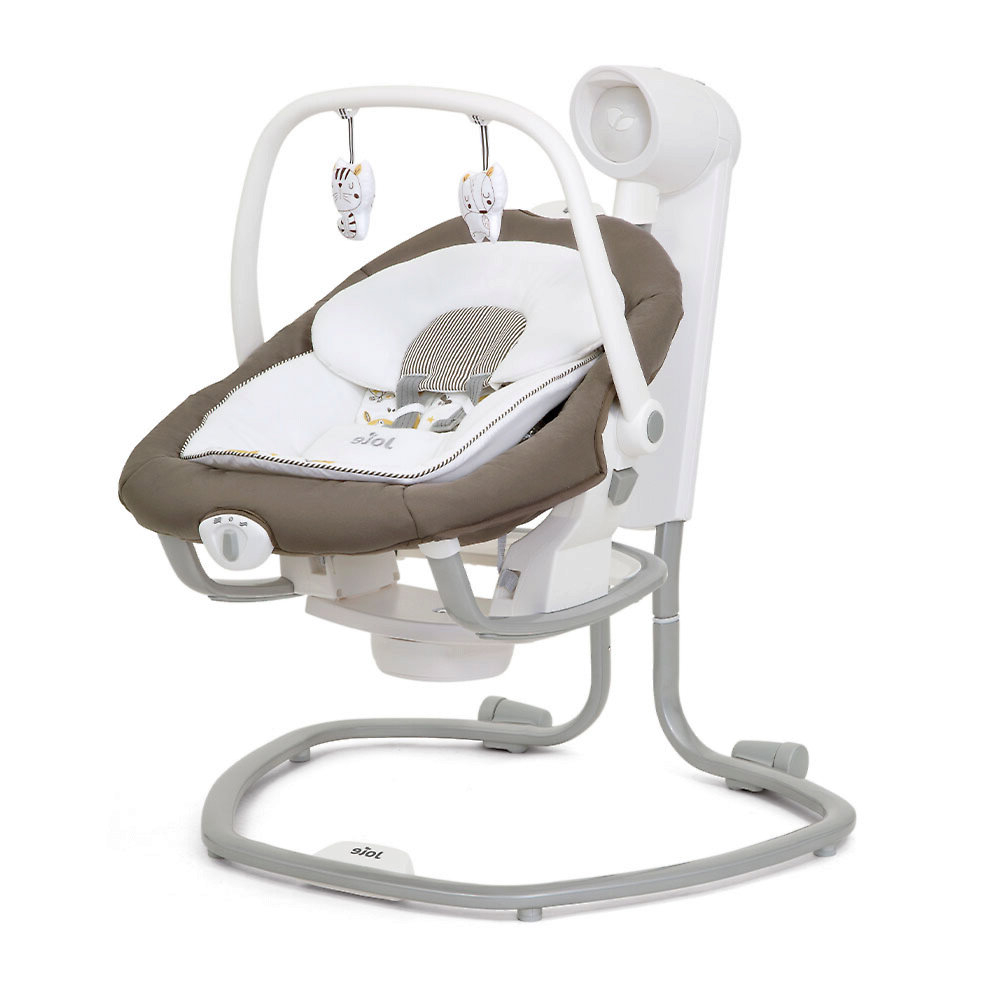Приятные особенности:Электронные качели-шезлонг Joie Serina 2 в 1 - мягкий и уютный шезлонг имеет анатомическую форму, что очень важно для правильного развития спинки. Чтобы кроха не выпал, ворочаясь во сне или играя, предусмотрены пятиточечные ремни безопасности. Сиденье имеет форму ракушки с закругленными краями, чтобы ребенок не поранился. Вы можете регулировать наклон в 3 различных положениях, включая горизонтальное для сна.Сиденье Joie Serina 2 в 1 устанавливается как боком, так и спиной к основе, от чего зависит траектория его движения (справа налево, или вперед-назад). Для детишек разного возраста предусмотрено 6 скоростей раскачивания и 2 скорости вибрации (для работы вибромодуля нужна батарейка).Для развлечения малыша, а также для развития его визуальных, тактильных и слуховых способностей, над люлькой крепится вращающаяся дуга с игрушками и есть функция музыкального сопровождения (5 колыбельных мелодий и 5 природных композиций).Металлический каркас Joie Serina 2 в 1 легкий и устойчивый. Чтобы качели было удобно перемещать по квартире, есть встроенная ручка и два маленьких колесика в основании.