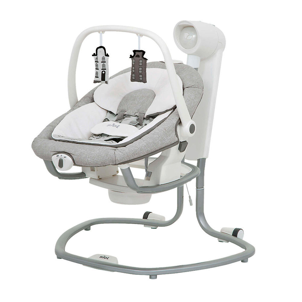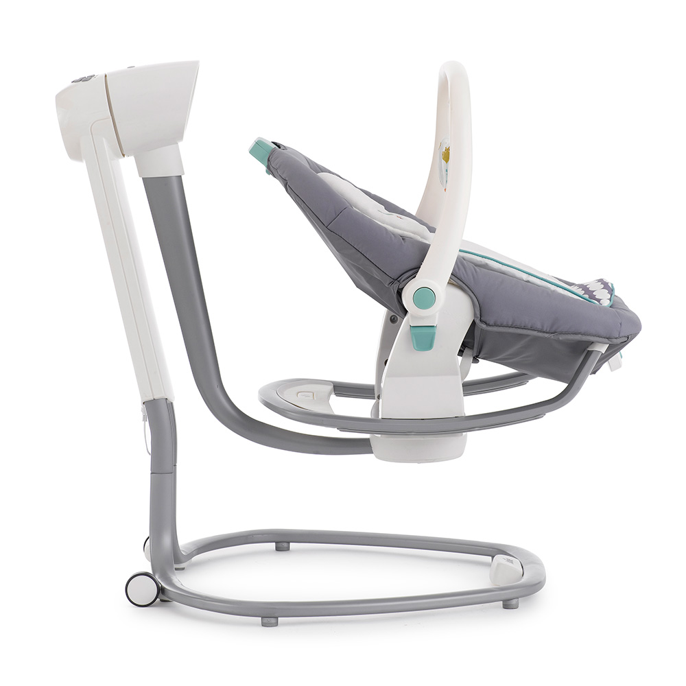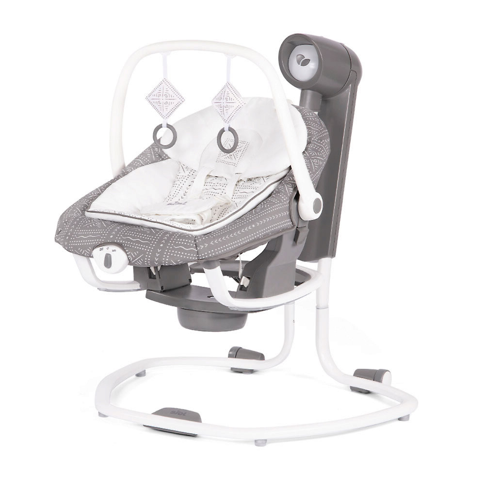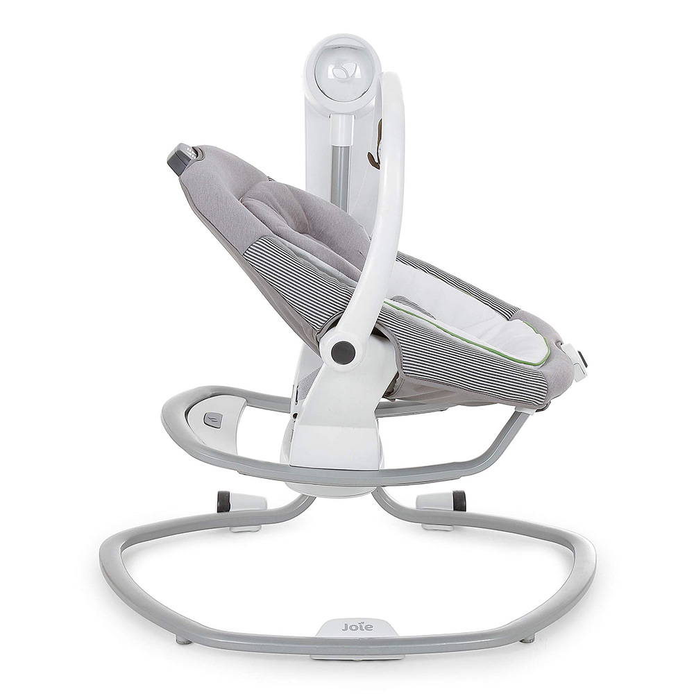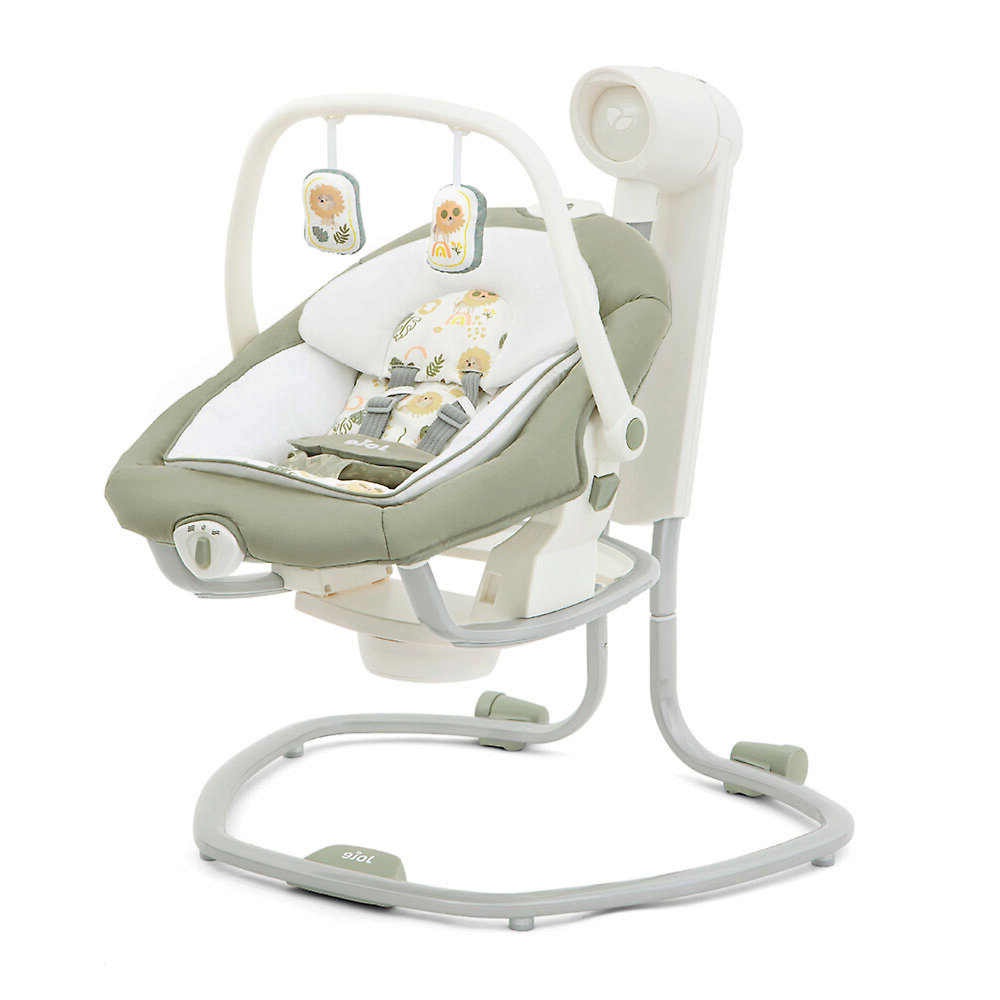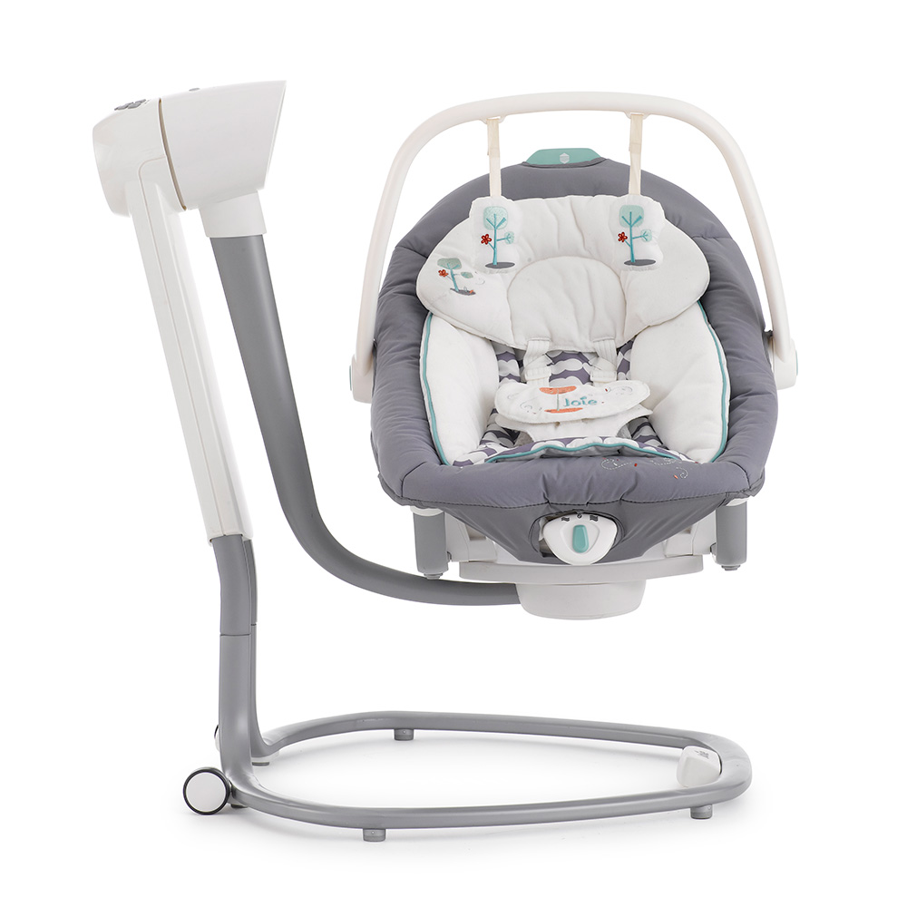 Приятные особенности:Электронные качели-шезлонг Joie Serina 2 в 1 - мягкий и уютный шезлонг имеет анатомическую форму, что очень важно для правильного развития спинки. Чтобы кроха не выпал, ворочаясь во сне или играя, предусмотрены пятиточечные ремни безопасности. Сиденье имеет форму ракушки с закругленными краями, чтобы ребенок не поранился. Вы можете регулировать наклон в 3 различных положениях, включая горизонтальное для сна.Сиденье Joie Serina 2 в 1 устанавливается как боком, так и спиной к основе, от чего зависит траектория его движения (справа налево, или вперед-назад). Для детишек разного возраста предусмотрено 6 скоростей раскачивания и 2 скорости вибрации (для работы вибромодуля нужна батарейка).Для развлечения малыша, а также для развития его визуальных, тактильных и слуховых способностей, над люлькой крепится вращающаяся дуга с игрушками и есть функция музыкального сопровождения (5 колыбельных мелодий и 5 природных композиций).Металлический каркас Joie Serina 2 в 1 легкий и устойчивый. Чтобы качели было удобно перемещать по квартире, есть встроенная ручка и два маленьких колесика в основании.