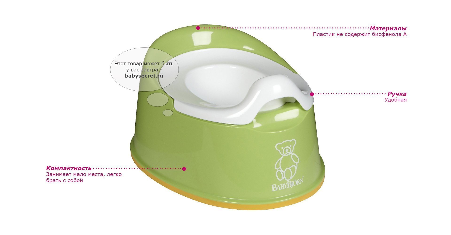 Приятные особенности горшка BabyBjornSmart Potty: c помощью горшка вашему ребенку будет легче оставить за плечами горы подгузников. Горшок надежно и устойчиво стоит на полу. Внутренняя вставка в горшок облегчает процесс очистки горшка после его использования, а защита от брызг предотвращает разбрызгивание. Богатая цветовая гамма и высококачественный пластик (используются только экологически чистые материалы) никого не оставят равнодушными.