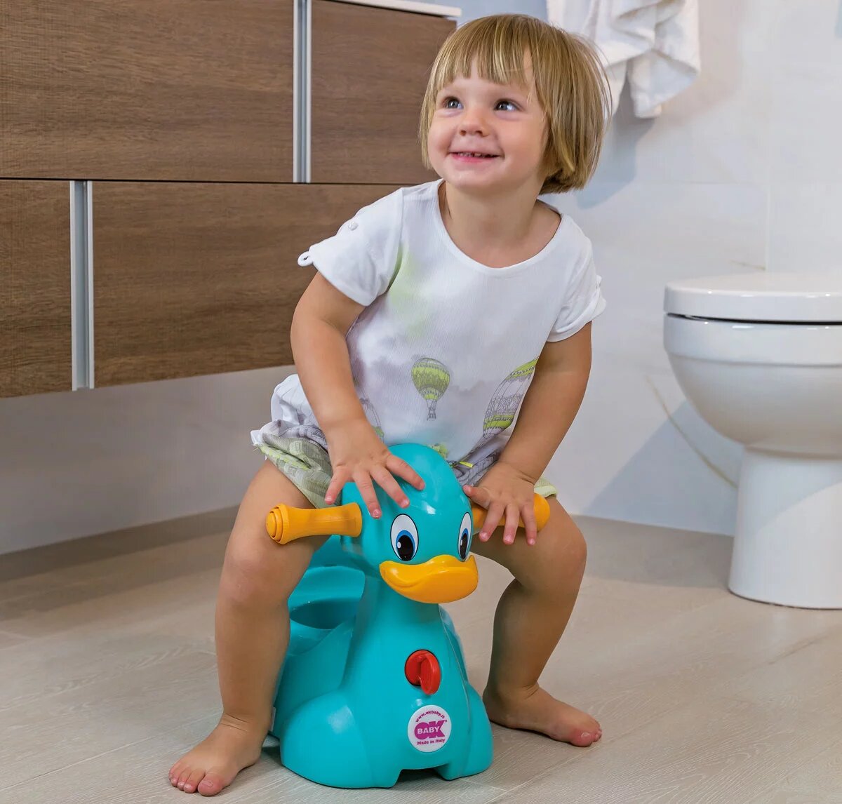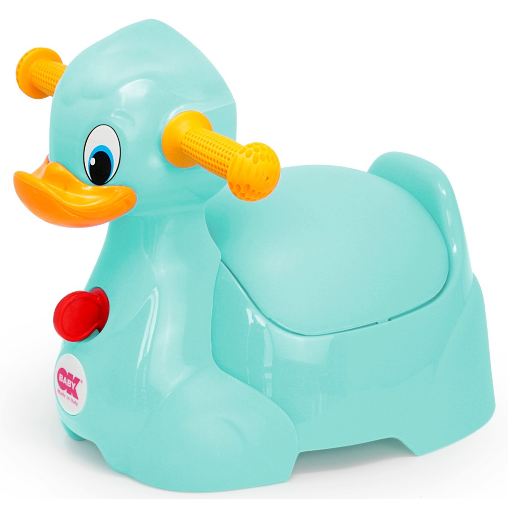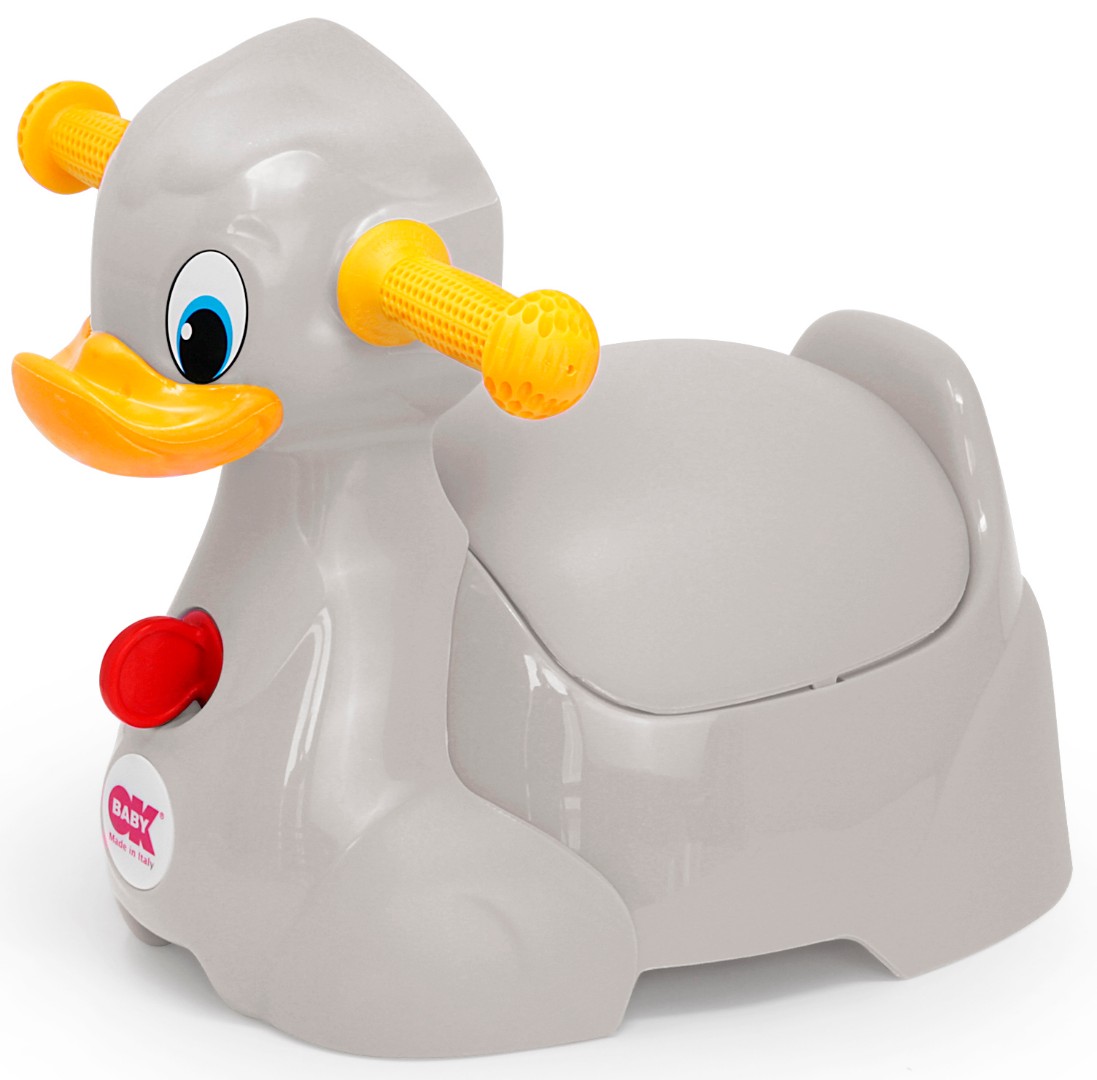 Приятные особенности горшка Ok Baby Quack:горшочек «Quack» оборудован ручкам для безопасности ребенка, держась за которые он также сохраняет правильную осанку. При нажатие на клюв звучит веселый «кряк»
