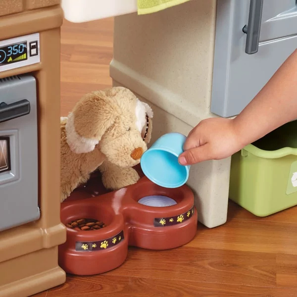 Приятные особенности:Возраст 2+ лет. Эта кухня Step2 представляет собой идеальный баланс между традиционными и современными кухонными элементами! Полупрозрачные дверцы шкафа, холодильник из «нержавейки» и микроволновая печь идеально подходят для хранения игровой еды и аксессуаров. Реалистичные звуки электронного телефона и кипящей плиты доставляют удовольствие от интерактивной игры. Глубокая раковина в деревенском стиле предлагает детям развлечься, пока дети воображают, что моют посуду. Мусорная корзина, многоразовая сумка для продуктов и центр ухода за домашними животными (не входит в комплект). В комплект входит набор аксессуаров из 41 предмета (цвета аксессуаров и игровой еды могут отличаться)