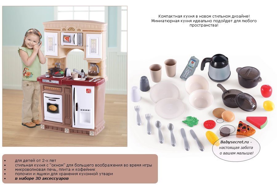Приятные особенности игровой кухни Srep 2 "Свежесть": это компактная кухня в новом стильном дизайне! Миниатюрная кухня идеально подойдет для любого пространства!
