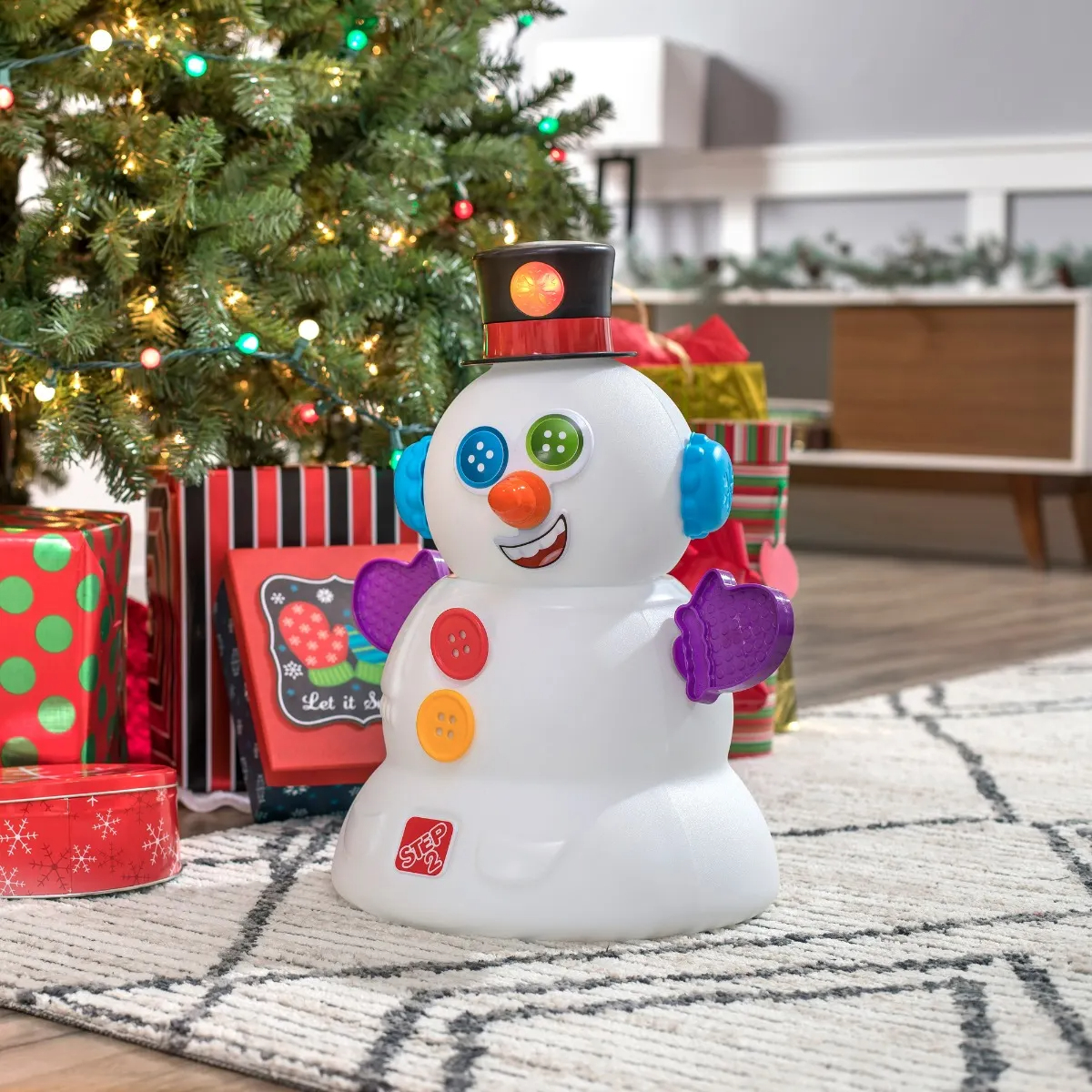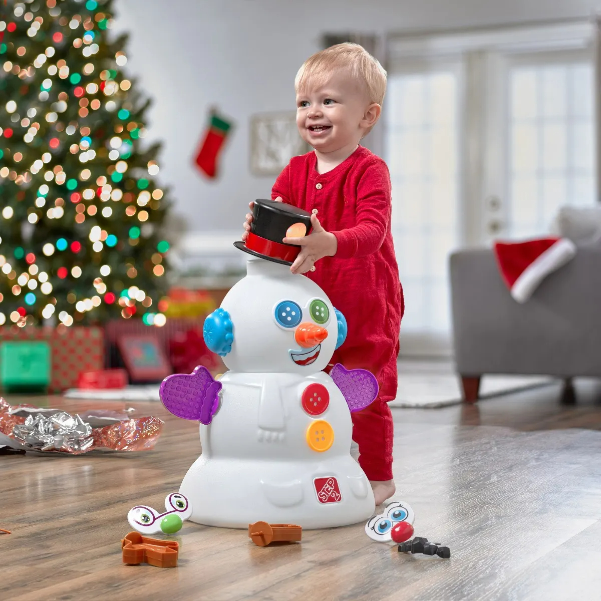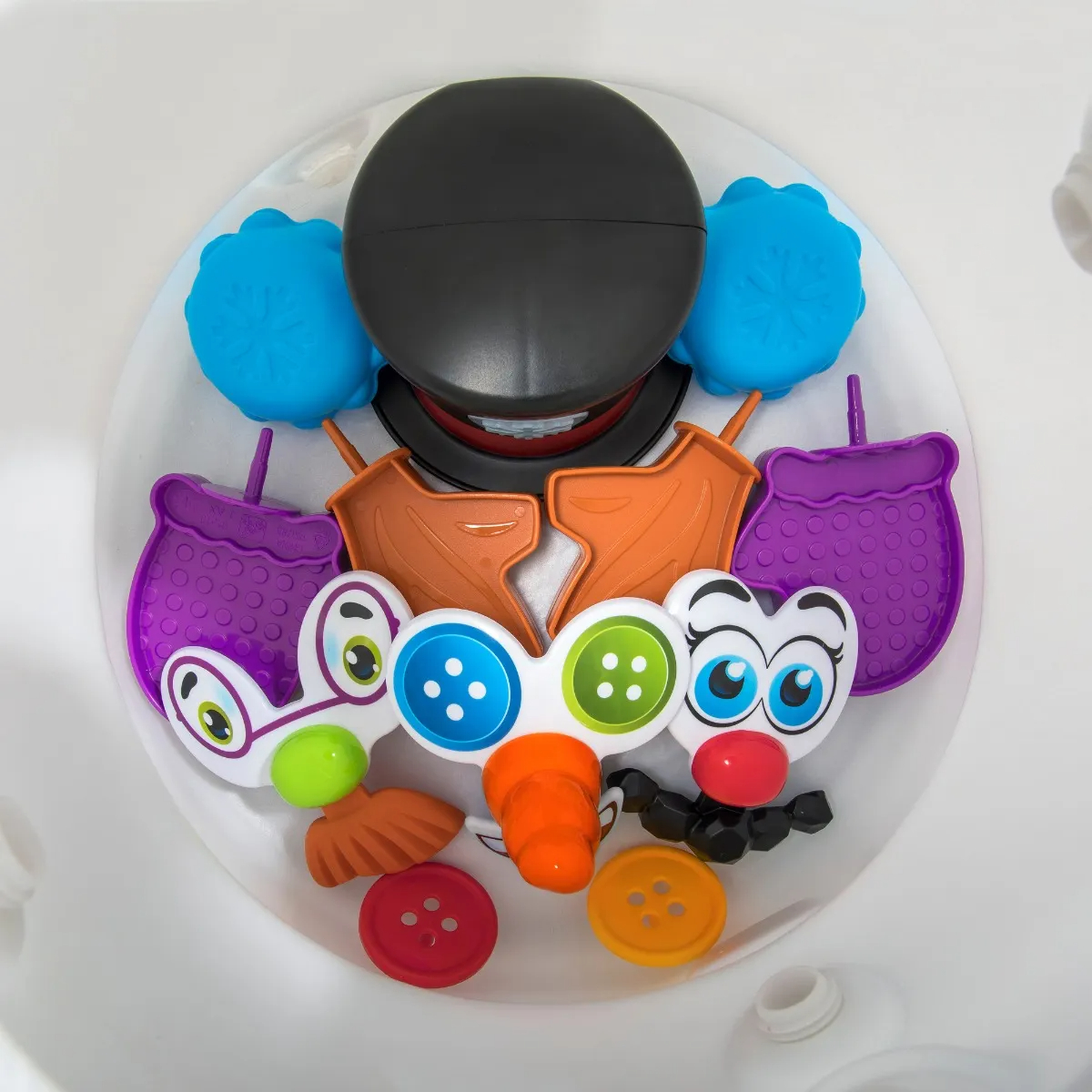 Приятные особенности:Возраст от 1,5+. Игрушка-снеговик позволит малышам наслаждаться снеговиком круглый год. Конструкция «поставь и играй» помогает улучшить мелкую моторику.Комбинируйте набор аксессуаров из 15 предметов, чтобы создавать забавные рожицы! Шапка Снеговика воспроизводит праздничные мелодии и светится, создавая праздничное дополнение к игре (требуются 3 батарейки типа «ААА», не входят в комплект). Когда игра закончится, храните все детали внутри тела снеговика. В коробке: снеговик, голова, шапка, набор аксессуаров из 15 предметов. Сборка не требуется!
