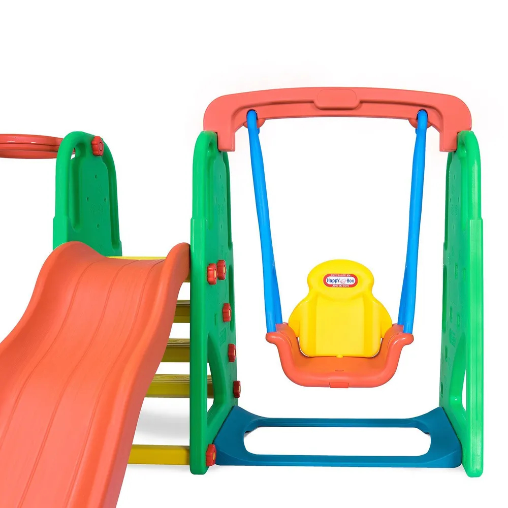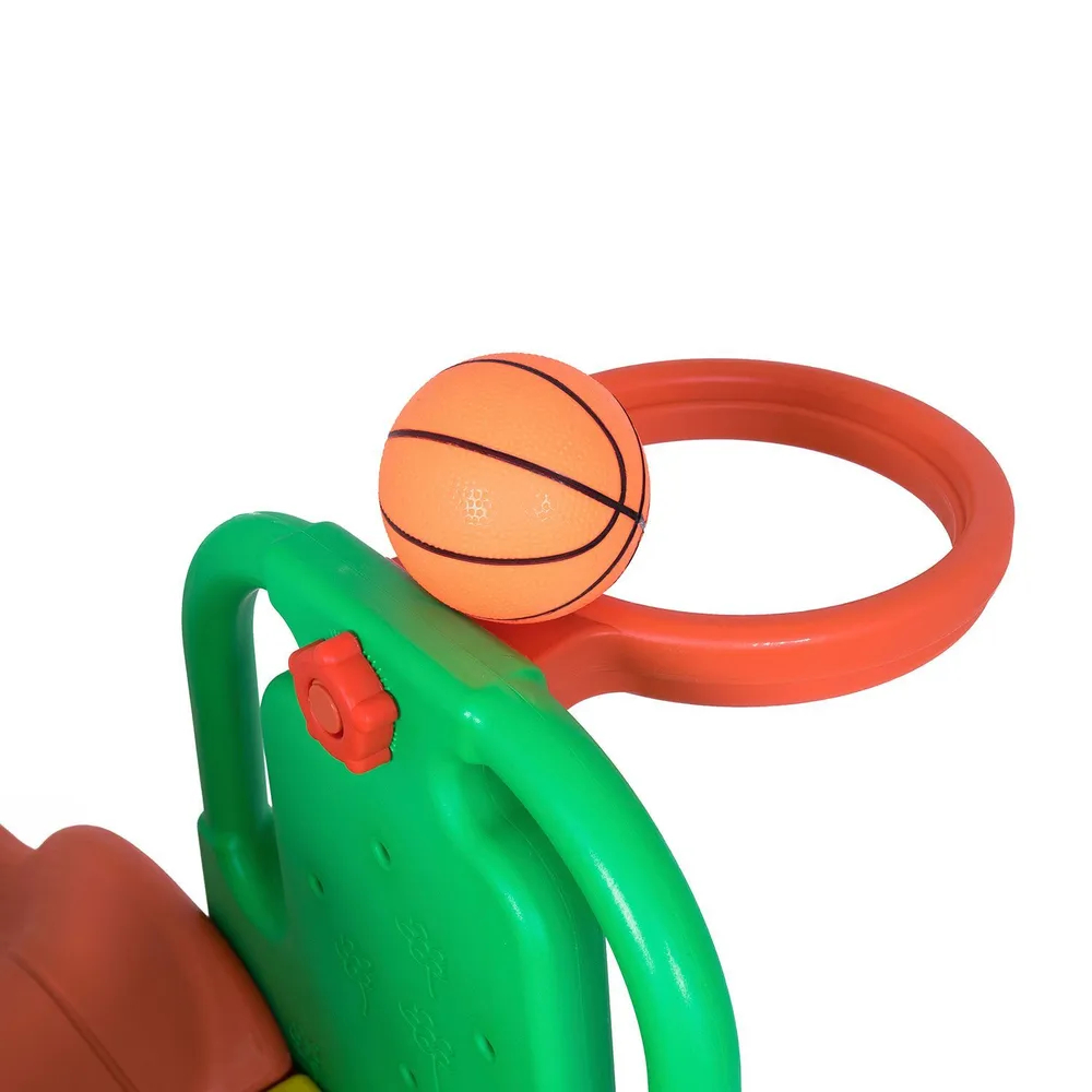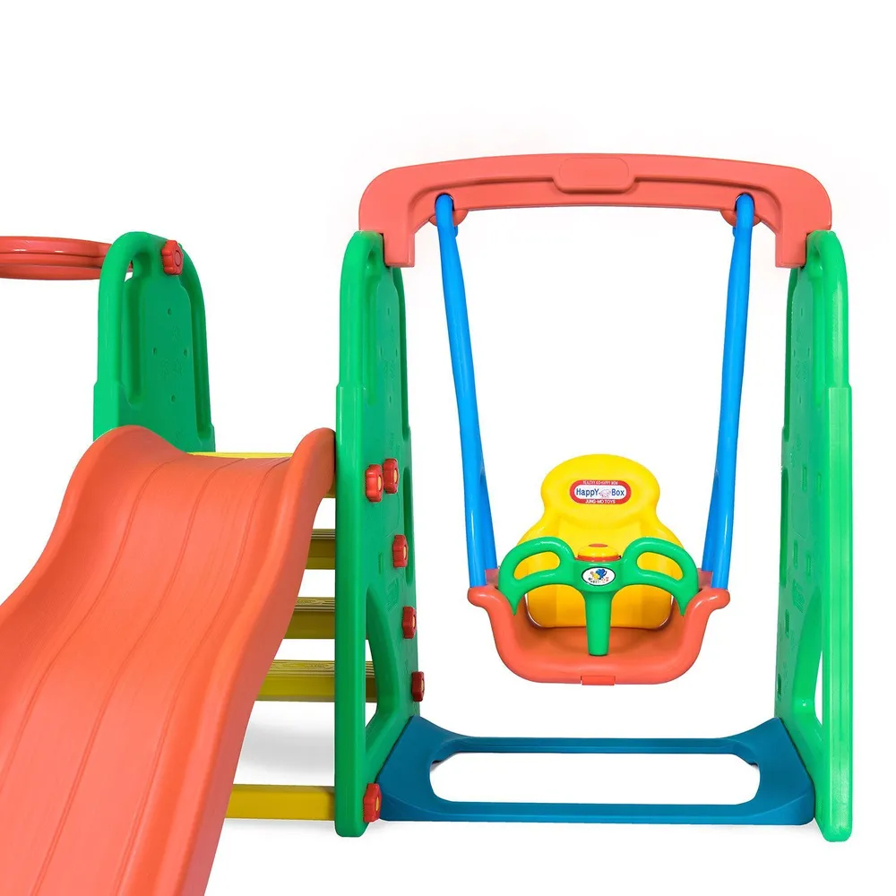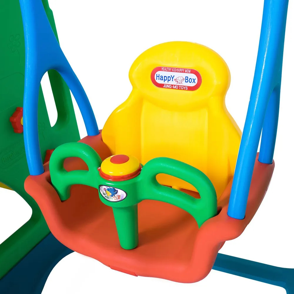 Приятные особенности:Игровой комплекс Happy Box (JM-871замена ) JM-701E горка-волна+качели с музыкальной панелью – принесет смех и радость детям. Комплекс поможет ребенку развиваться физически. Предназначен комплекс для игр детям от 1,5 лет и старше. Изготовлен он из высококачественного, прочного, безопасного для детей пластика. Состоит из горки-волны, качелей с музыкальной панелью, баскетбольной корзины. На горку можно подняться по ступеням с шероховатой поверхностью, благодаря которой малыш не соскользнет со ступеней, функцию перил выполняют борта горки с отверстиями, качели для малышей с ремнями безопасности и музыкальной панелью заинтересуют ребенка с самого маленького возраста. Горку можно регулировать по высоте, в зависимости от возраста малыша.