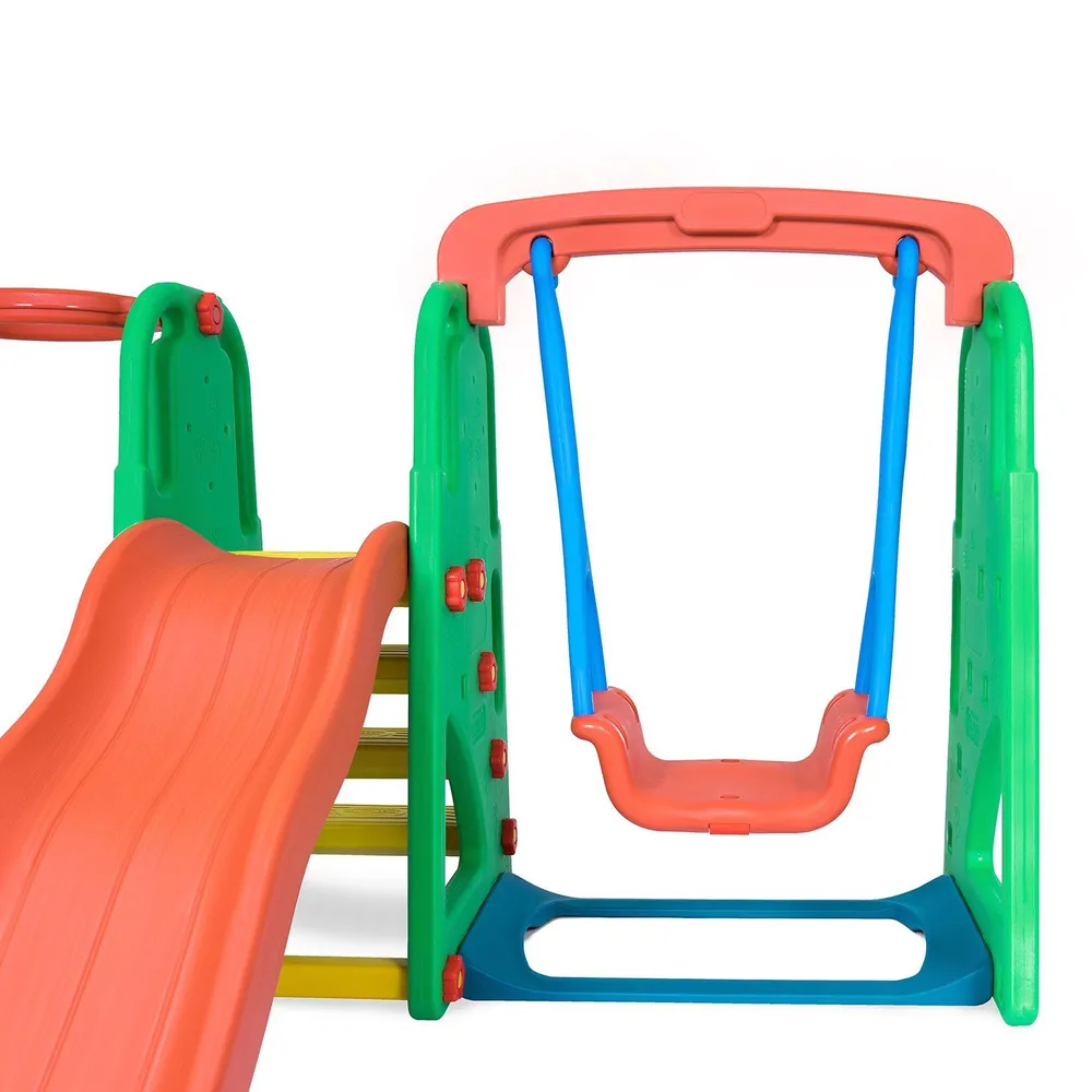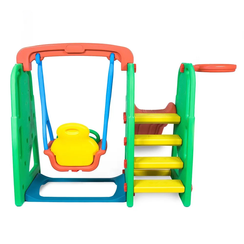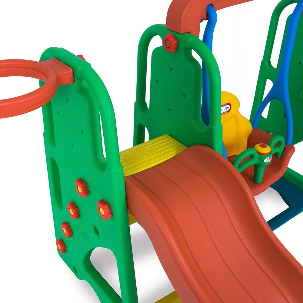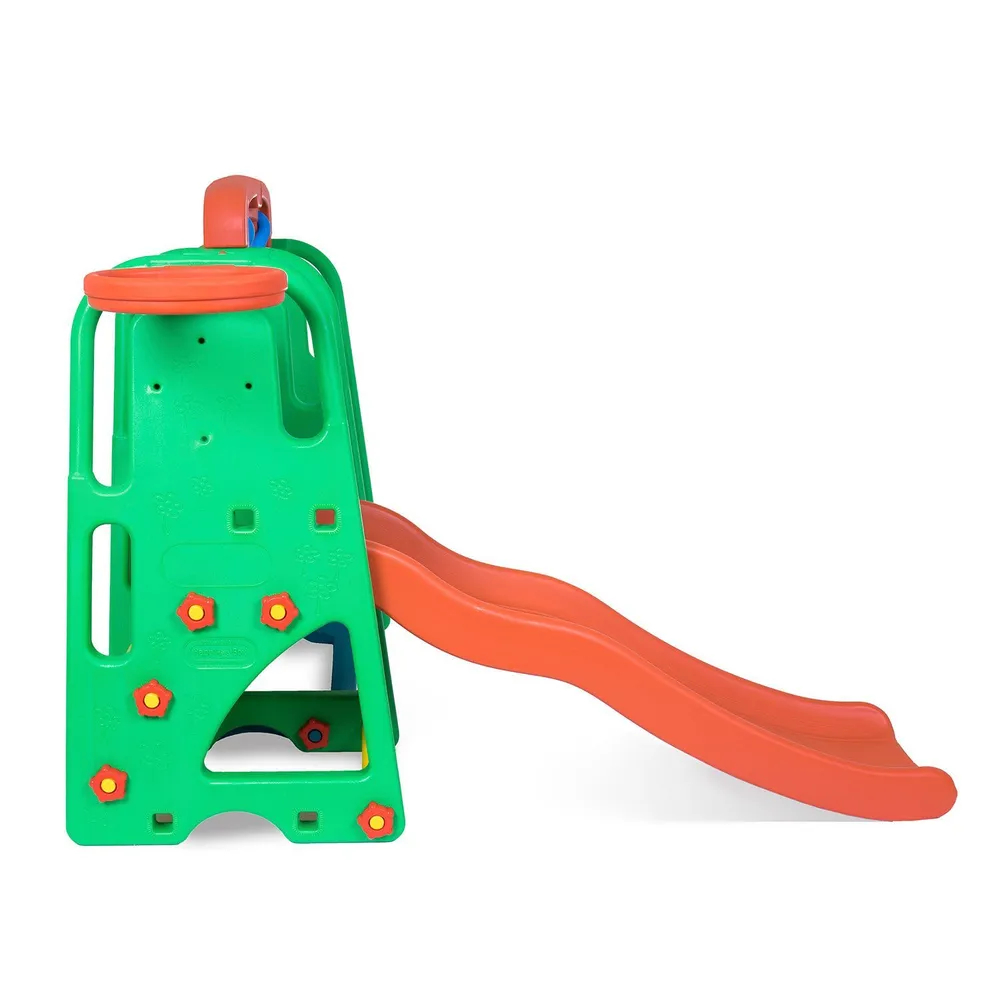 Приятные особенности:Игровой комплекс Happy Box (JM-871замена ) JM-701E горка-волна+качели с музыкальной панелью – принесет смех и радость детям. Комплекс поможет ребенку развиваться физически. Предназначен комплекс для игр детям от 1,5 лет и старше. Изготовлен он из высококачественного, прочного, безопасного для детей пластика. Состоит из горки-волны, качелей с музыкальной панелью, баскетбольной корзины. На горку можно подняться по ступеням с шероховатой поверхностью, благодаря которой малыш не соскользнет со ступеней, функцию перил выполняют борта горки с отверстиями, качели для малышей с ремнями безопасности и музыкальной панелью заинтересуют ребенка с самого маленького возраста. Горку можно регулировать по высоте, в зависимости от возраста малыша.