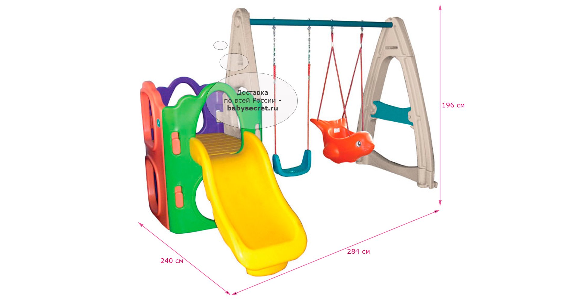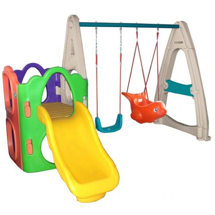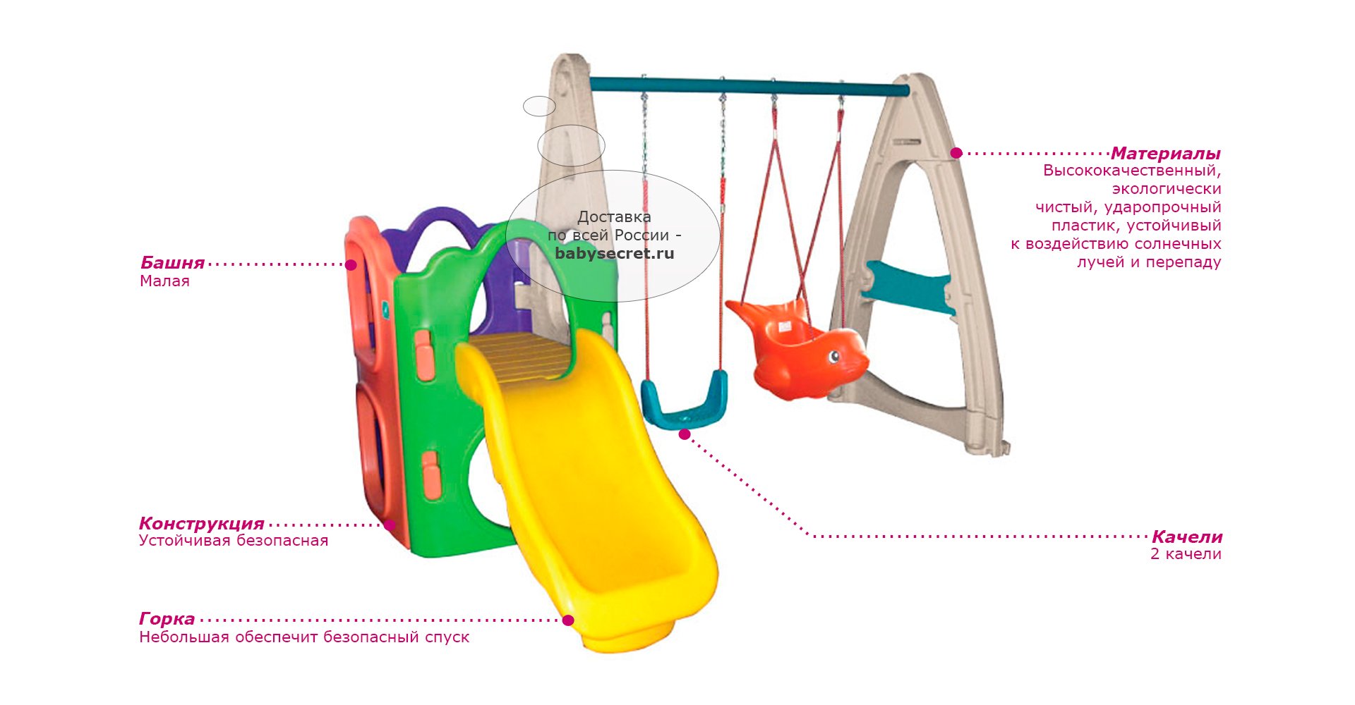 Приятные особенности игрового комплекса LeradoLA-610:малая башня имеет порталы и туннель на нижнем уровне, а также игровую площадку с горкой на верхнем. Залезть на детскую горку можно и по удобным угловым ступенькам с надежными захватными поручнями. Небольшая горка обеспечит безопасный спуск. Комплекс оснащен двумя видами качелей.