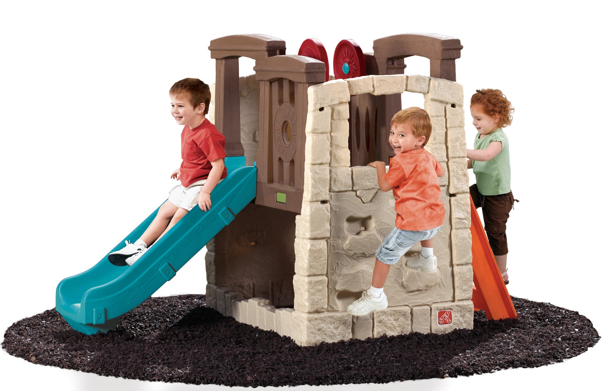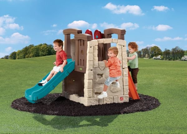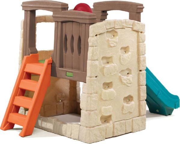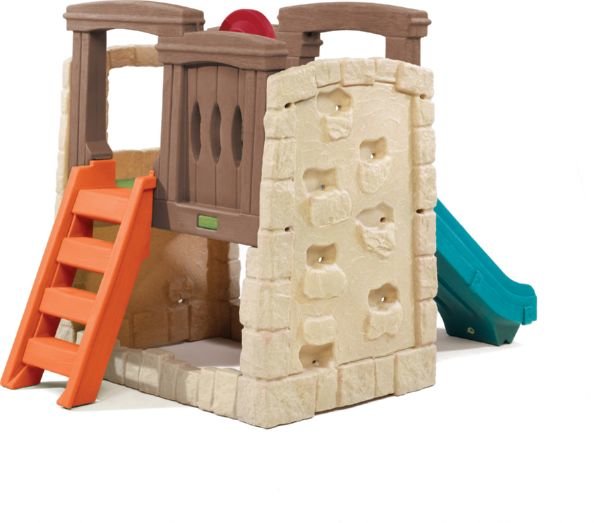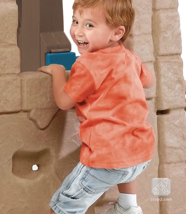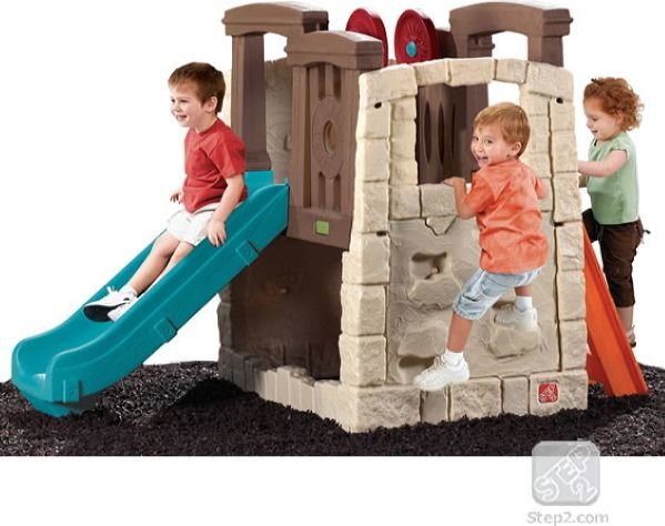 Приятные особенности :Теперь во дворе вашего дома появится красивая лесная крепость, которая станет не просто украшением участка, но еще и главным местом для игр ребенка и его друзей. Ведь крохи с удовольствием покатаются с горки, полазают по скале и обустроят для себя песочницу в нижней части конструкции.