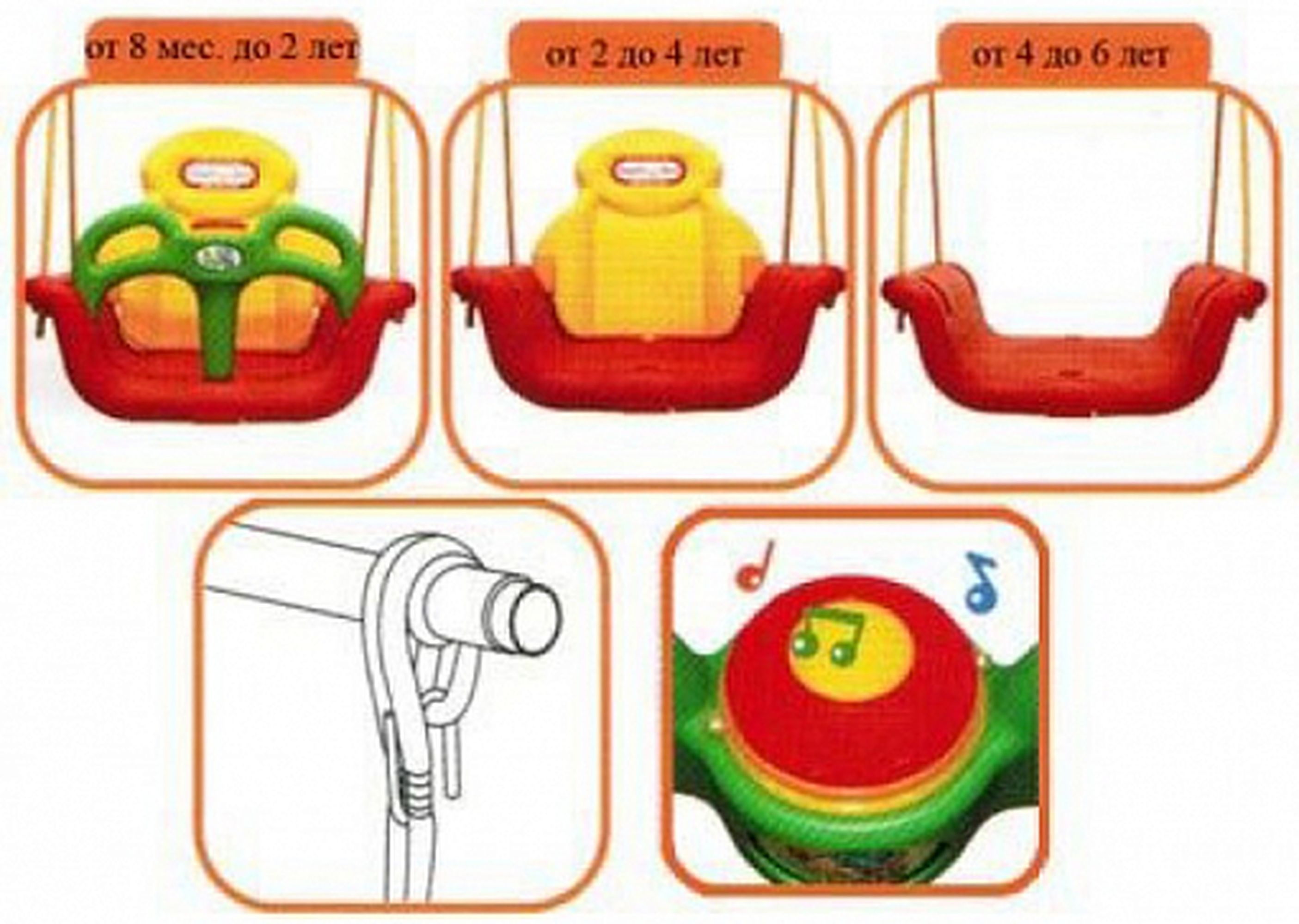 Приятные особенности:Игровой комплекс Happy Box JM-701 (качели с музыкальной панелью) – предназначен для игр и физического развития детям от 1 года и старше. Комплекс надежен и безопасен, выполнен из прочного пластика, отвечающего высоким требованиям безопасности. Комплекс можно легко собрать как дома, так и на улице. Игровая зона включает горку, качели, баскетбольное кольцо, музыкальную панель. Игровое оборудование не имеет острых углов, торчащих болтов, кромок. Зона горки подойдет для самостоятельной игры детей от двух лет. Гладкая горка оборудована округлыми бортами безопасности, ее наклон и высота могут устанавливаться на двух уровнях и регулироваться по мере роста и взросления ребенка. Качели, оборудованные музыкальной панелью и бампером (для безопасности малыша). Зоны игрового комплекса можно менять местами. Ступеньки горки имеют шершавую, предотвращающую проскальзывание поверхность. Контуры бортов с отверстиями выполняют функцию перил. Комплекс легко собирается и разбирается.