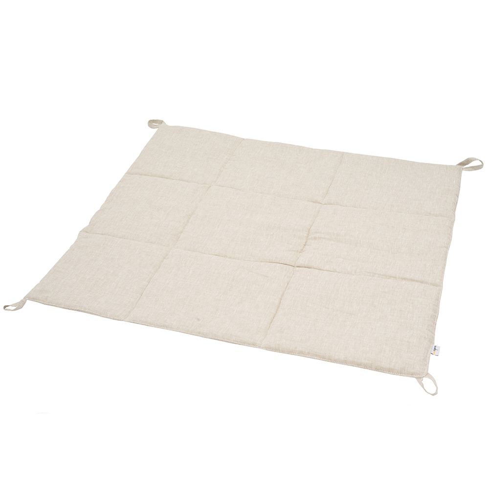 Приятные особенности:В Древнем Египте и на Ближнем Востоке льняная ткань раньше была настоящим предметом роскоши и признаком достатка. Теперь такую роскошь может позволить себе каждый, даже малыш;) Играть, сидя на коврике из льна – одно удовольствие, а родителям не придётся больше тревожиться, что кроха простудится или устанет сидеть на жёсткой поверхности пола. Льняной детский коврик сшит специально для вигвама из такой же коллекции, у него даже есть специальные петельки для реек, но вы можете просто положить его в игровой уголок и украсить подушками.