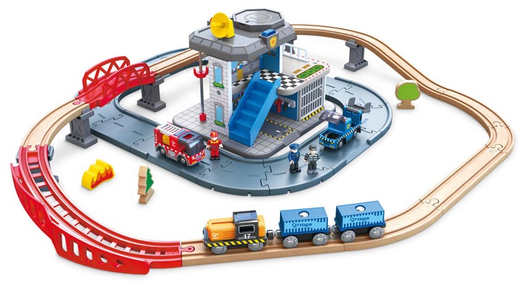 Приятные особенности:Штаб-квартира службы экстренной помощи Hape - это реалистичная штаб-квартира для решения чрезвычайных ситуаций с автомобильными и железнодорожными путями. Включает в себя здание одной станции, один разводной мост, один опорный мост, пожарную машину, полицейскую машину, три статуэтки (полицейский, пожарный и преступник), двухвагонный грузовой поезд, 14 элементов дороги, путей и 10 элементов деревянных железнодорожных путей.С таким количеством деталей начинается сборка этого реалистичного набора экстренных служб. Собрав службу, будьте готовы начать охранять автомобильные и железные дороги. Пусть полиция поймает грабителя и посадит его в тюрьму. Затем отправьте пожарную команду, чтобы потушить пламя. В штаб-квартире есть тюрьма и гараж для обслуживания транспортных средств. Дверь тюрьмы открывается, чтобы посадить злодея за решетку. На крыше штаб-квартиры есть рабочая сирена и мигающий свет. Эти маленькие дополнительные штрихи делают игру еще более реалистичной.В этой детской игрушке есть штаб-квартира полиции и пожарной охраны, а также транспортные средства. Это означает, что в процессе игры малыш развивает свои навыки решения задач, социальные навыки, проявляет свои творческие способности, улучшает координацию рук и глаз, повышает ловкость и совершенствует свои знания о системах экстренной служб.